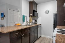Welcome to Ocean Sands Resort! This charming 2-bed, 1-bath unit is perfectly suited for first-time buyers, downsizers, or investors. Updates include paint, hardware, lights, furniture, toilet, vinyl & laminate flooring. A well-maintained home that offers a functional layout with bright, open living spaces. The living room flows seamlessly into the dining area, with direct access to your ground level patio. An inviting space for relaxing with easy access to the pool and grounds. The gally kitchen has ample storage and counterspace. Both bedrooms are generously sized, offering flexibility for a guest room, and a 4 piece bathroom. This unit comes fully furnished, allowing for a truly move-in-ready experience or an excellent turnkey rental opportunity. Place in the rental pool, manage your own short-term rental or simply bring your suitcase and settle in. Located in a desirable area close to amenities, shopping, and transit, this property offers both lifestyle and convenience.