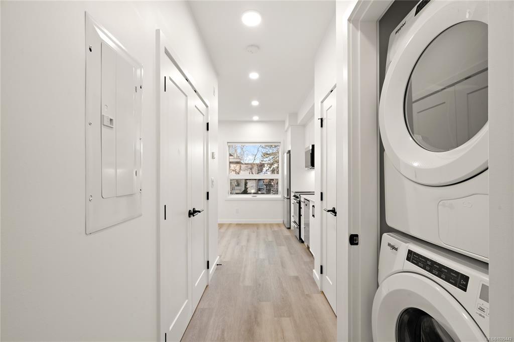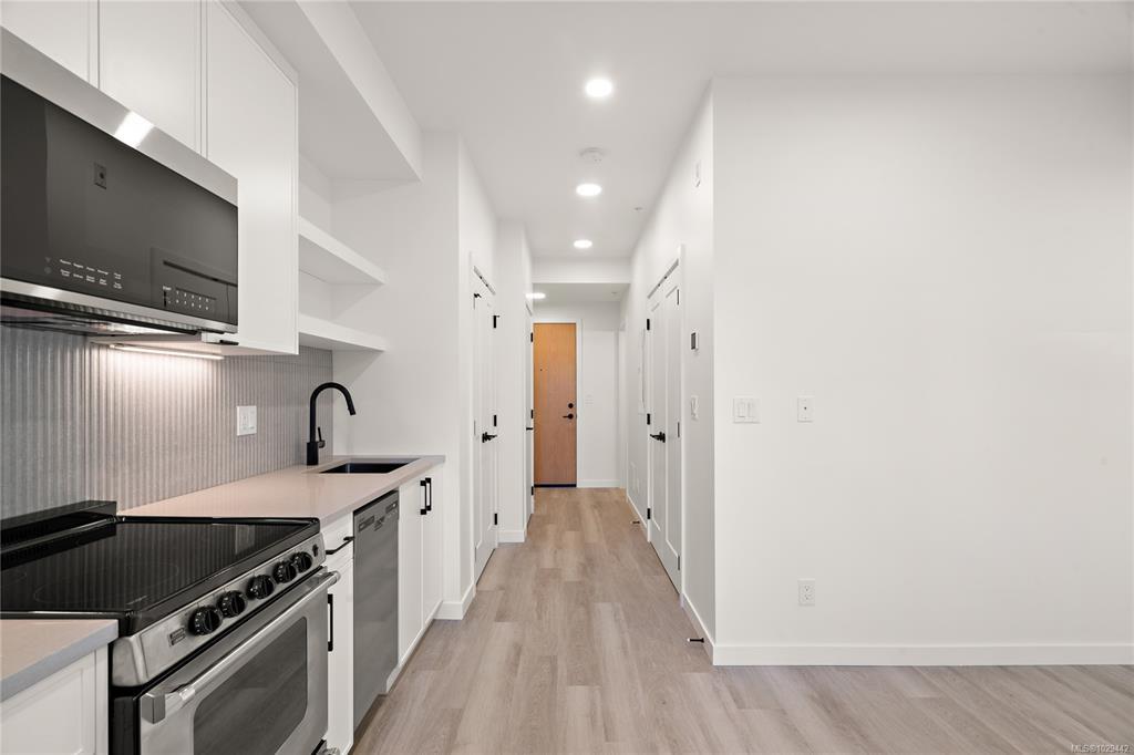 Perfectly suited for first-time buyers, investors, or those seeking a smart holding property, this move-in ready junior 1-bedroom offers an efficient & thoughtfully designed layout. Finished in the bright & airy Lumen colour scheme, the space feels open, modern, & inviting—maximizing both style & functionality in a compact footprint. Highlights include quartz countertops, in suite laundry, heated bathroom flooring, & a heat pump with cooling for year-round comfort. The Proxima offers residents access to exceptional amenities including a fully equipped gym, atrium, & landscaped courtyard. Storage locker included & fantastic walk score, make this move-in ready unit an ideal opportunity. Located in the heart of Esquimalt Village, The Proxima is perfectly positioned for a life full of adventure, experiences, & amenities w/ Saxe Point Park, local breweries, Esquimalt Market, shopping, & the Archie Browning Sports Centre just a stone’s throw away.