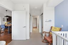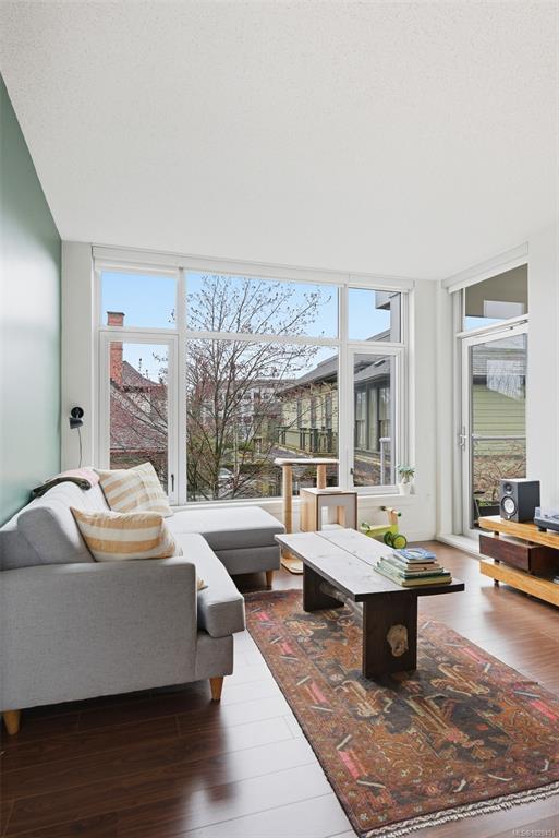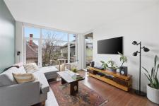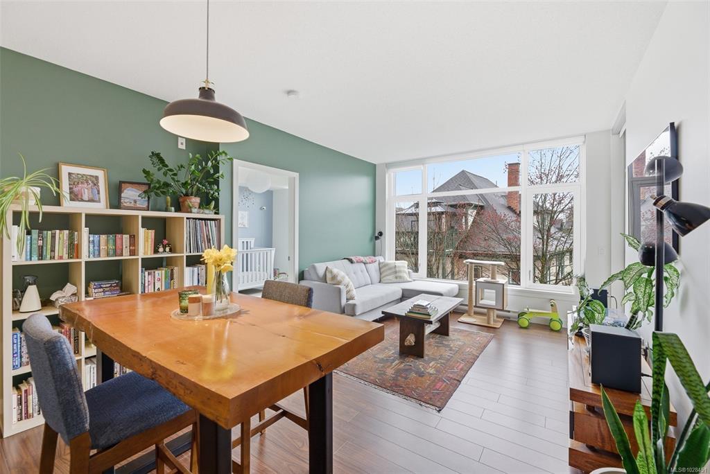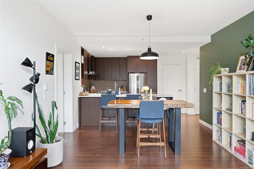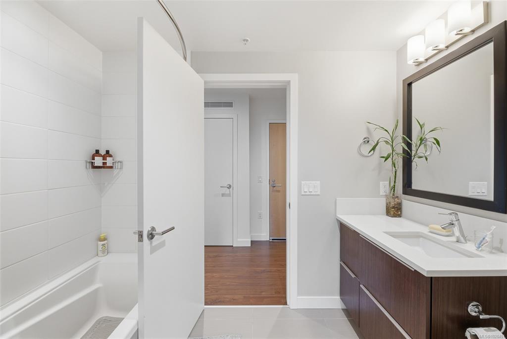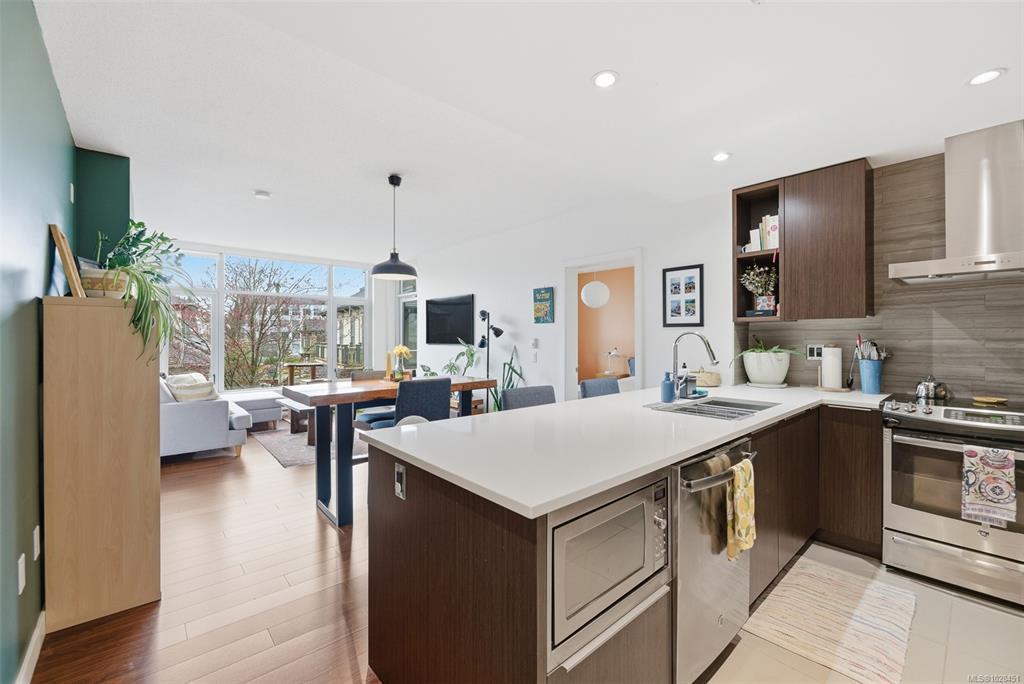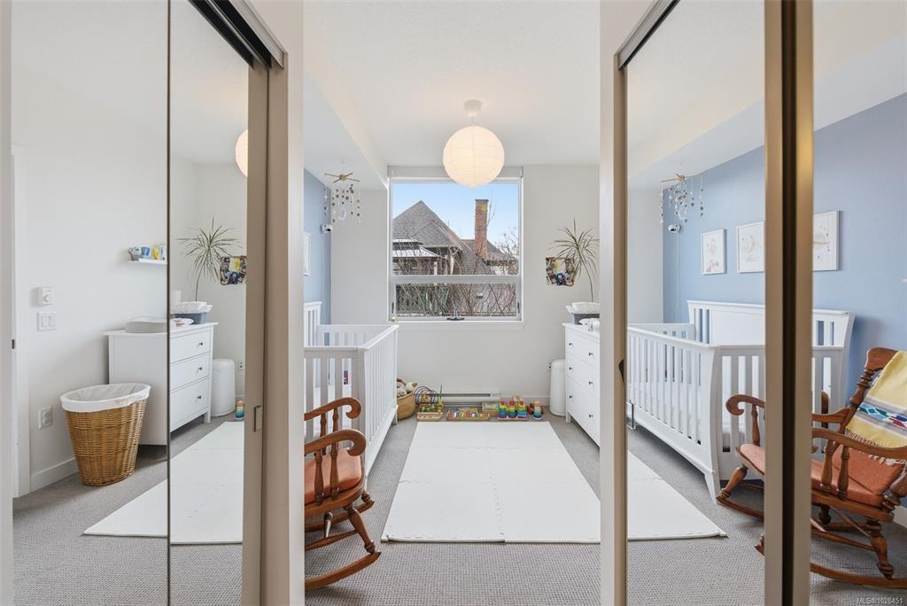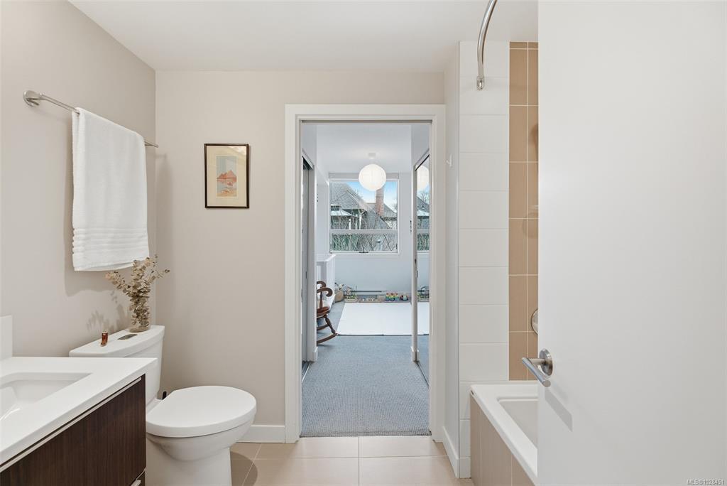 Set in a quiet residential pocket of James Bay, this bright two-bedroom, two-bath residence at The Duet offers a calm alternative to downtown living while remaining highly walkable. Built in 2014 by Chard Developments, the west-facing home is just blocks from Beacon Hill Park, James Bay Village, the waterfront, and the Inner Harbour. The 905 sq ft layout is open and efficient, with separated bedrooms that provide privacy and flexibility. Large windows bring in natural light and overlook green space and surrounding low-rise homes. The primary bedroom features a walkthrough closet and ensuite, while the second bedroom includes cheater ensuite access. A roomy balcony extends the living space outdoors. The building offers underground parking, storage, bike facilities, a dog wash station, and a spacious shared rooftop patio with BBQs and seating. An ideal option for those seeking a secure, low-maintenance home near downtown without being immersed in it.