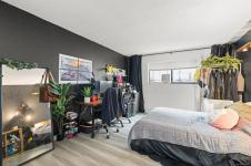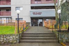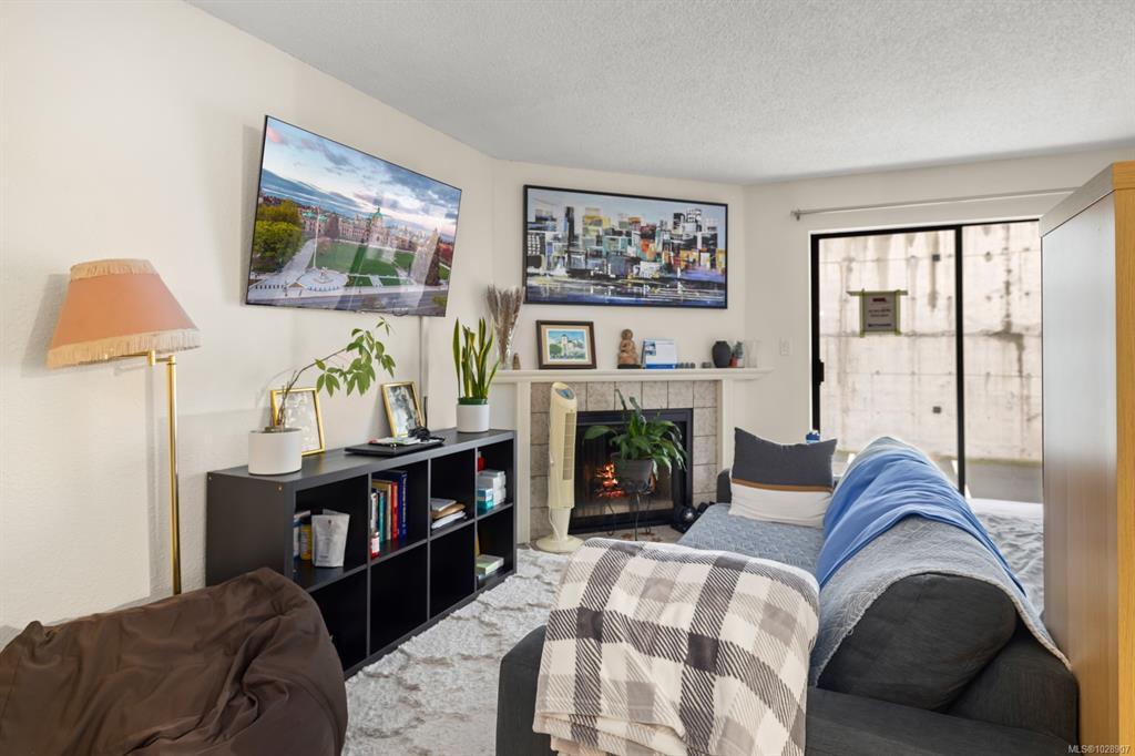 This is the one! You will be impressed with this nicely updated and move in ready 1 bed, 1 bath condo on the quiet side of the building. Spacious layout with cozy wood burning fireplace in the living room. Quick Possession possible. Unrestricted rentals, pet friendly, parking space & storage locker. Just across the street from a park to walk your dog, cafe, Mayfair Mall, Uptown, major bus routes and 10 minutes from Downtown make this the ideal location. Call before it's Sold!