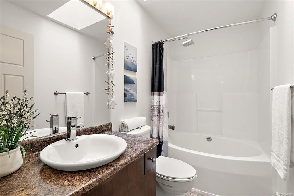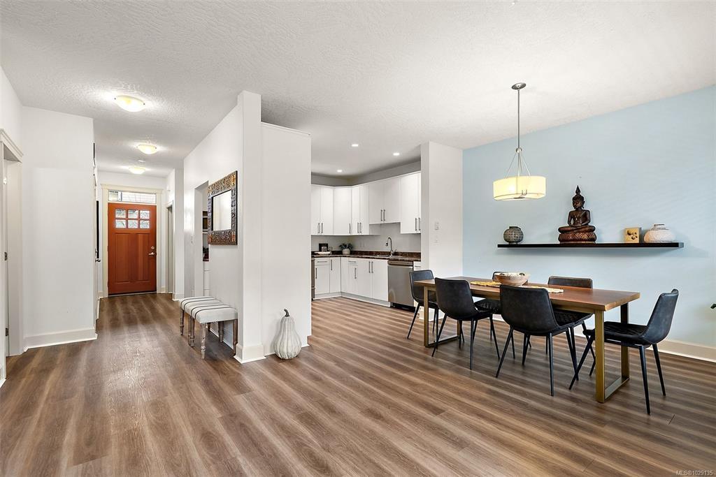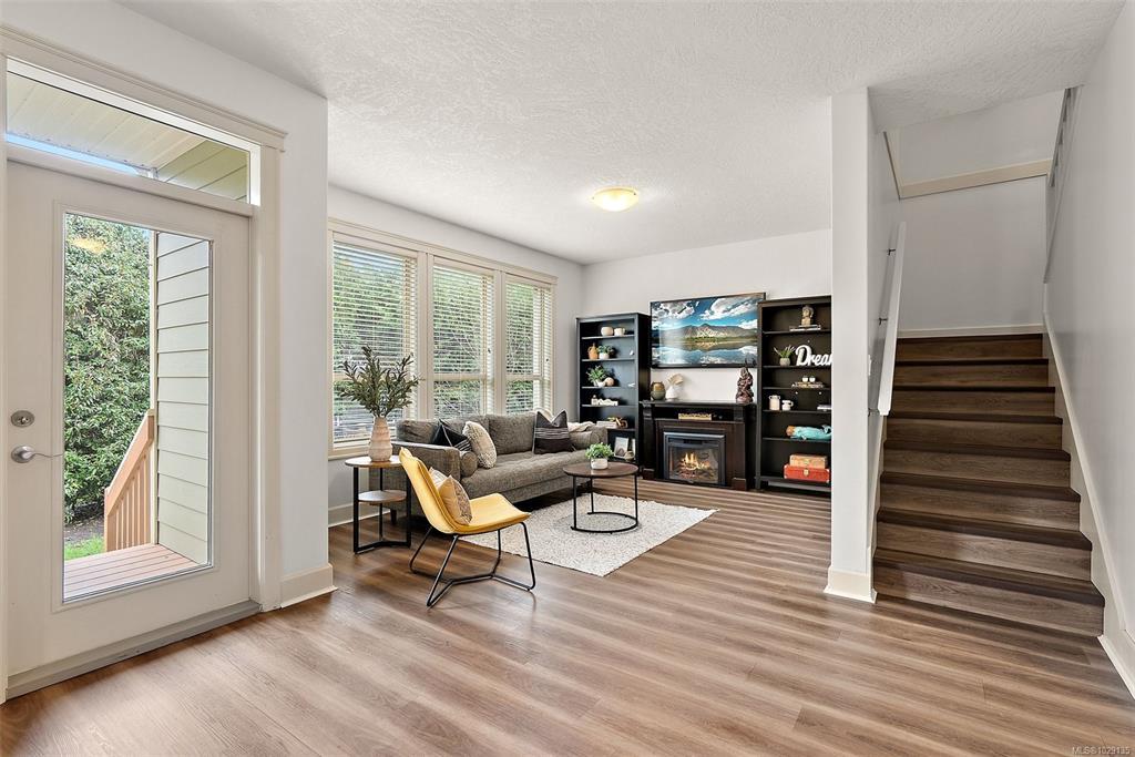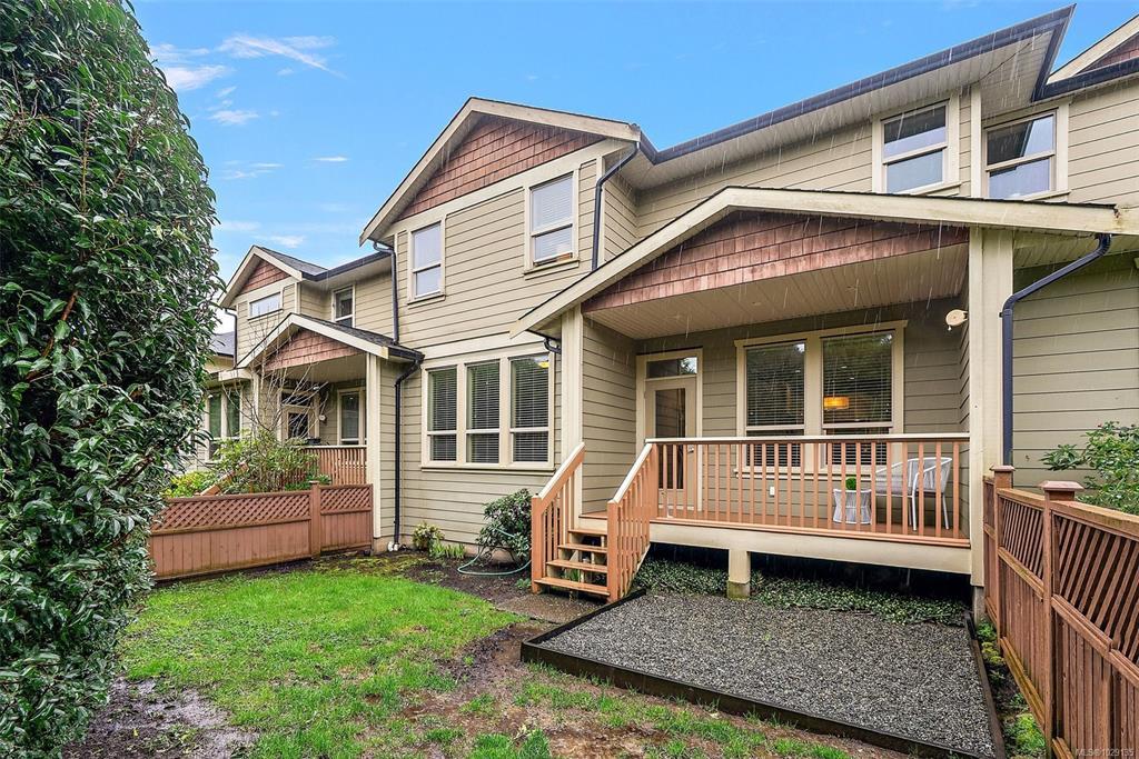 Welcome to Townsend Walk, one of Sooke’s most desirable townhome communities, centrally located close to parks, schools & the municipal trail system. This well-maintained 3 bed, 3 bath unit offers a quiet setting at the back of the complex and has a charming covered front & back porch to enjoy morning and evening sun. Inside, you’ll find a bright open-concept layout with 9 ft ceilings and new vinyl floors throughout. The spacious kitchen flows into the dining and living areas, spacious and bright with over sized windows, complete with access to a private deck and fully fenced, low-maintenance yard. A main floor den adds flexibility for a home office. Upstairs features 3 generous bedrooms including a large primary with walk-in closet and 4-piece ensuite, plus convenient laundry. Includes heated crawlspace, garage, and driveway parking. A fantastic opportunity that is MOVE IN READY offering comfort, style, and value.