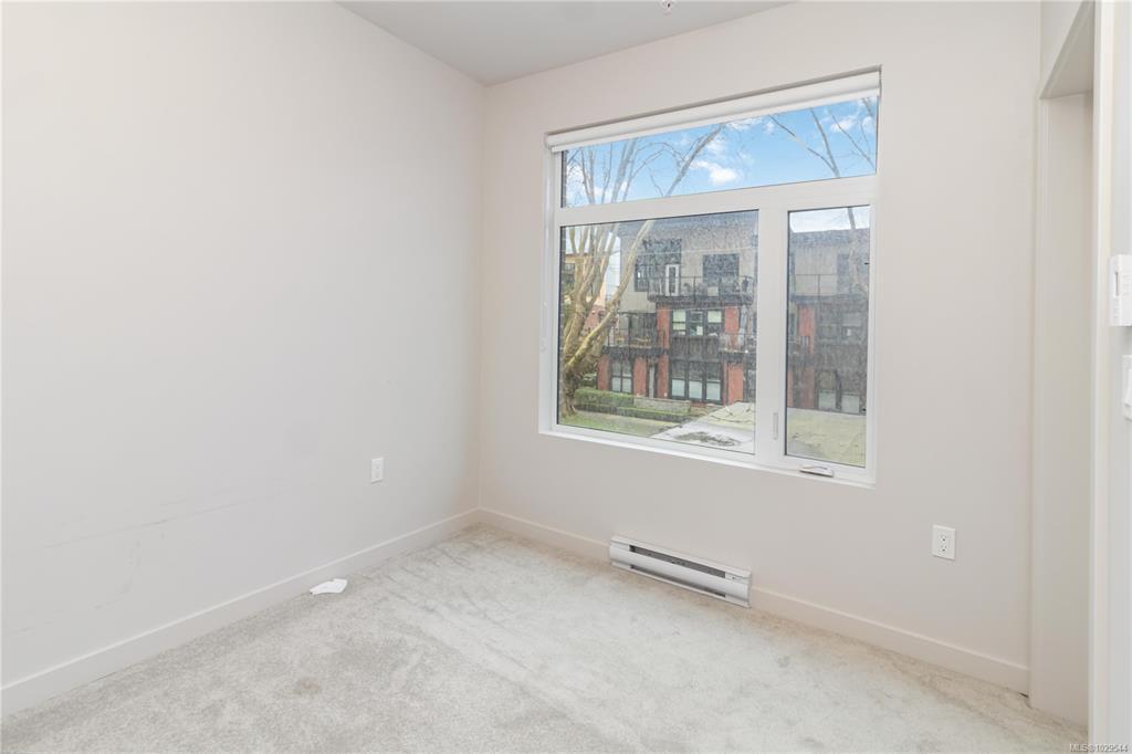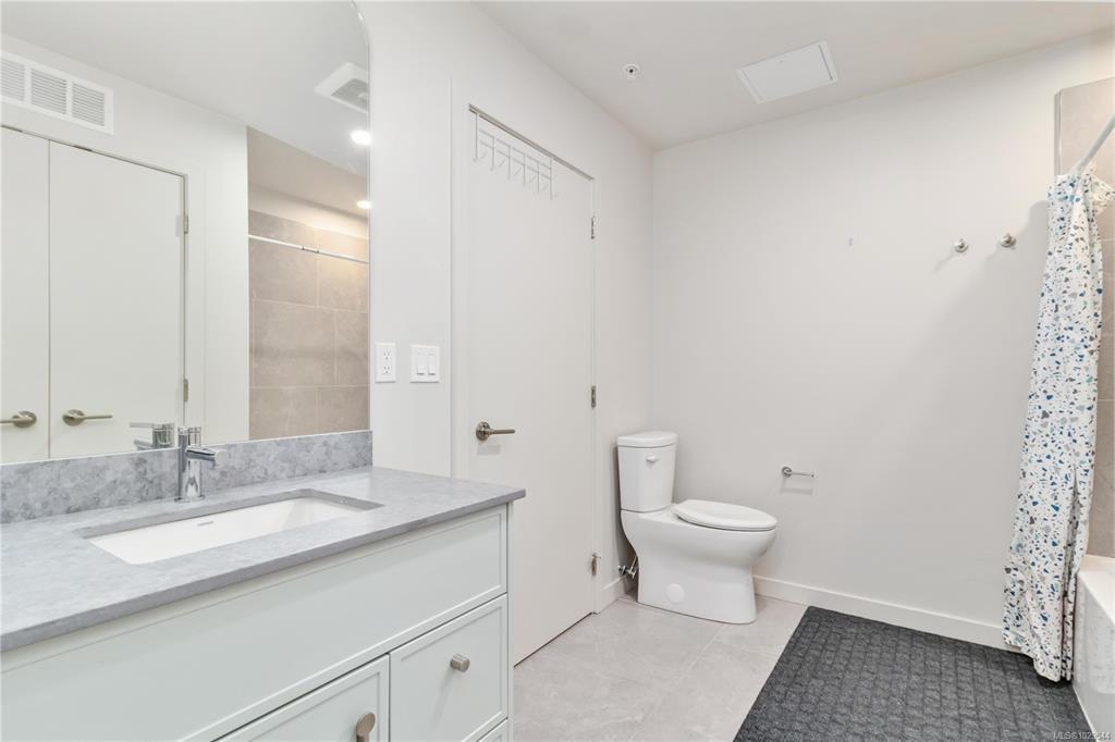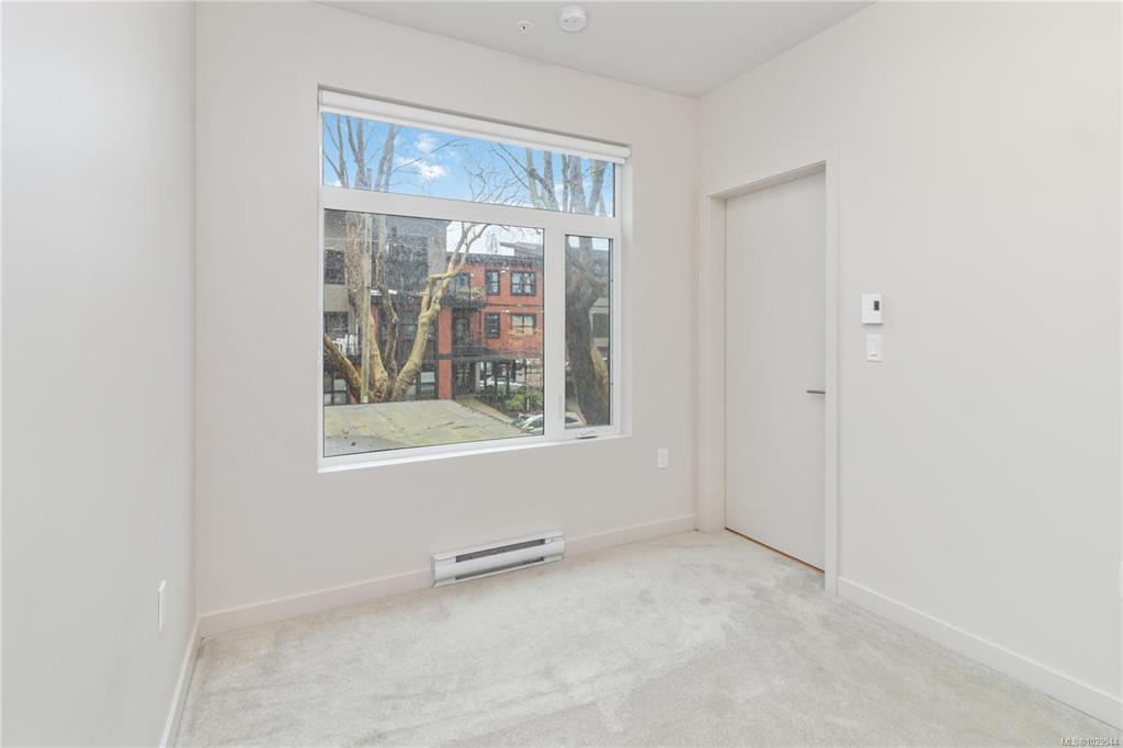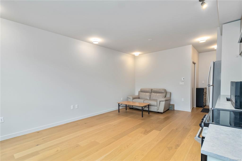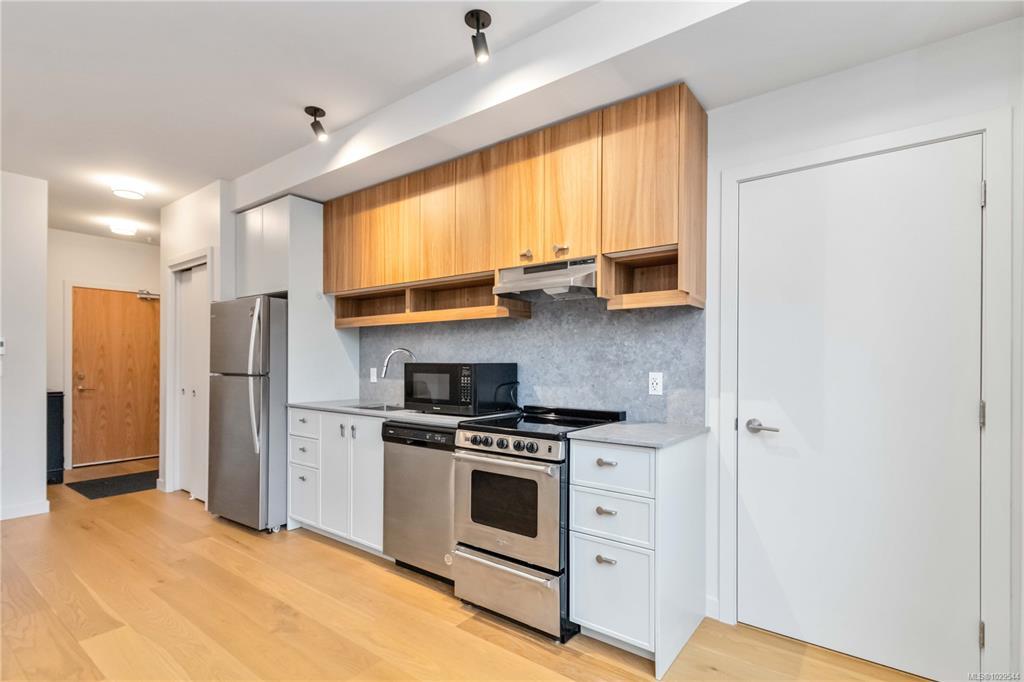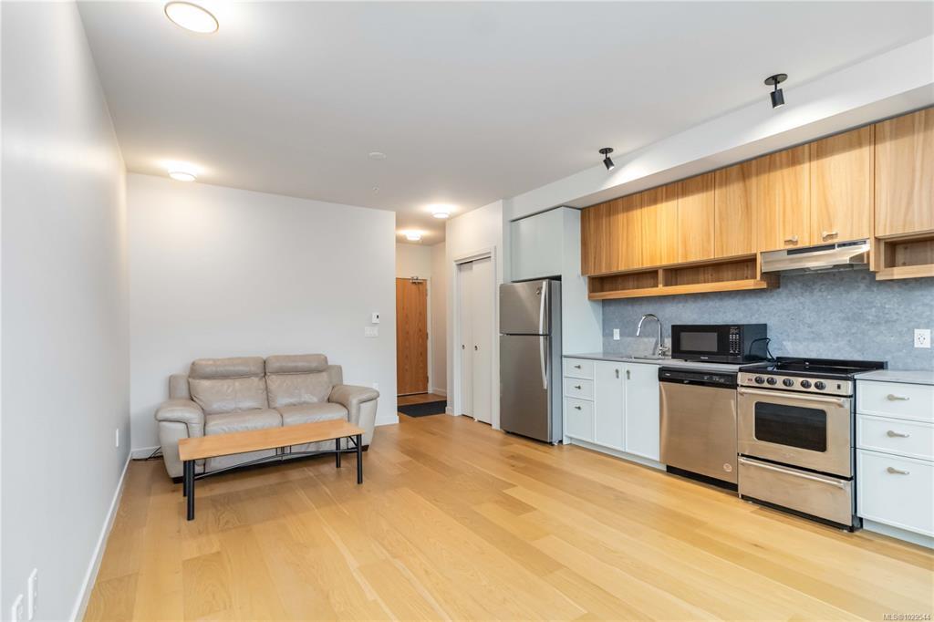 Welcome to this relatively new one bed and den unit at Tresah East, a contemporary condo community ideally located in Victoria’s vibrant Midtown, just minutes to downtown, the Galloping Goose Trail, and the Gorge Waterway. The open-concept layout features nearly 9-foot ceilings, wide-plank oak flooring, and modern finishes throughout.The stylish kitchen includes quartz countertops and a stainless steel appliance package, seamlessly flowing into the oversized living space filled with natural light from multiple exposures. Additional features include in-suite laundry and enhanced soundproofing for added comfort. Tresah East offers secure bike storage and MODO car share access—an ideal opportunity to enjoy modern urban living in one of Victoria’s most convenient locations.