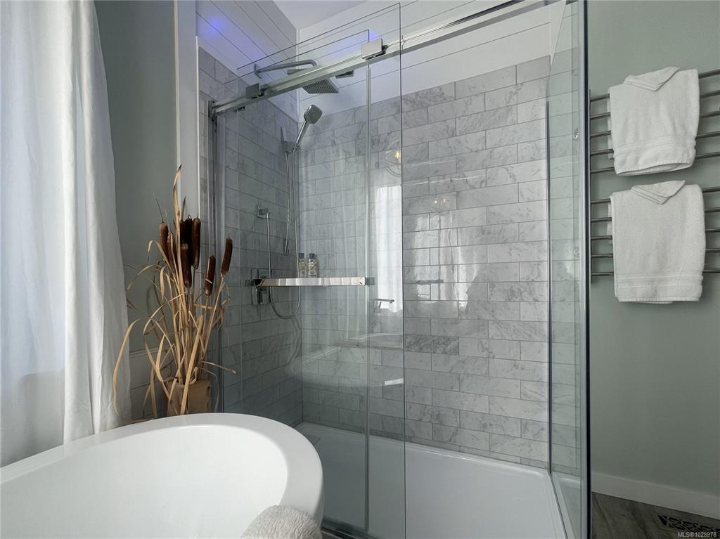 Upstairs offers heated floors, two spacious bedrooms, a full bath, and a large bonus room above the double garage. Step outside to your private retreat with walk-on waterfront, licensed dock with historic foreshore rights for kayaking or small boats, plus an in-ground pool and hot tub—a rare blend of coastal luxury and recreation. Book your private showing today.