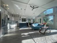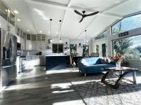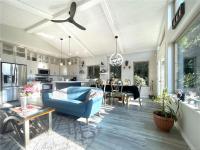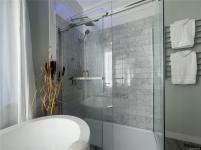 The bright open-concept kitchen, dining, and living area is perfect for entertaining, highlighted by a cozy double-sided fireplace and large windows framing the coastal scenery. The serene primary suite features a walk-in closet and spa-inspired ensuite with a freestanding soaking tub. A den and laundry complete the main floor.