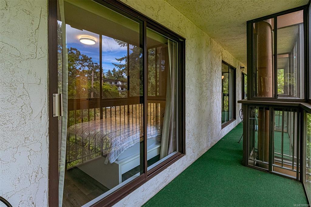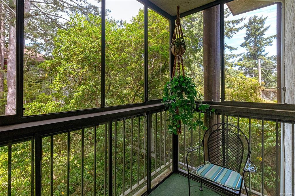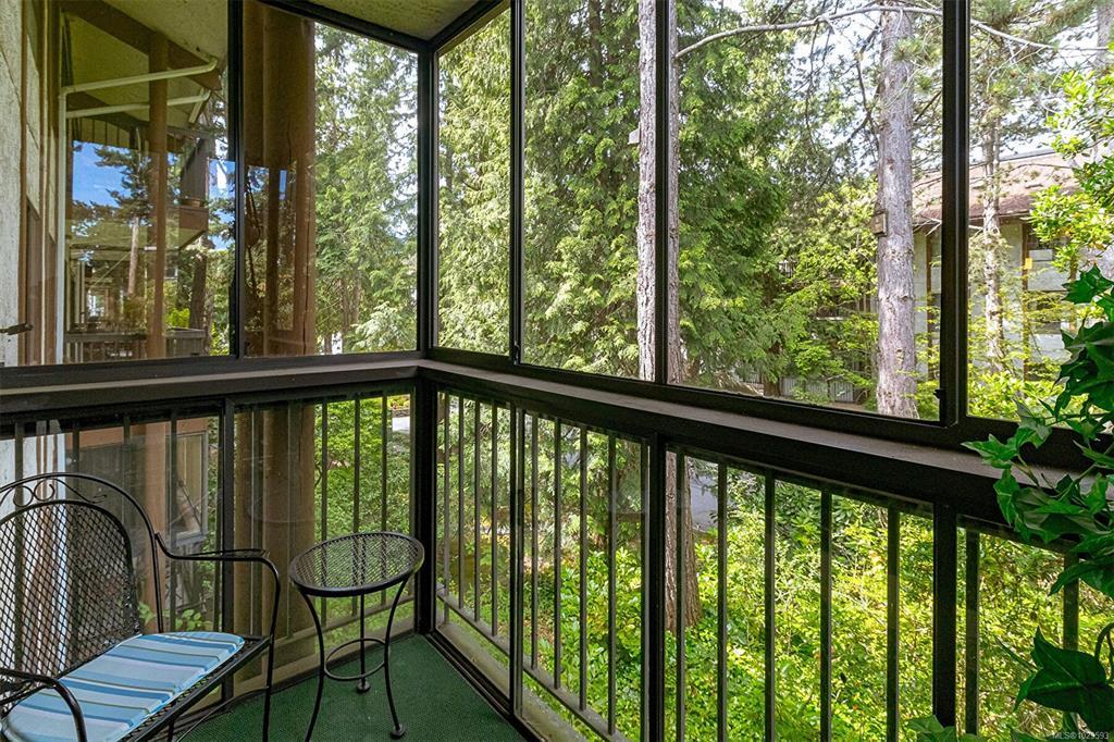 Immediate Possession!! New Price $499,900. Corner Condo with Enclosed Balconies! This oversized 2-beds, 2 full baths + large media room condo offers exceptional space & privacy on the quiet 3rd floor corner of a sought-after complex. Each room opens onto its own glass-enclosed balcony, surrounded by views of mature cedar trees & landscaped gardens. The upgraded kitchen add modern comfort, while large windows throughout bring in natural light & a tranquil outlook. Enjoy top-tier building amenities, including an indoor pool, hot tub, sauna, tennis courts, library, billiards room, meeting rooms, a workshop, and bike storage. Heat, hot water, and access to recreation facilities are all included in the strata fee. Extra-large (double-sized) corner storage unit on the same floor. Prime location near UVIC, Downtown, & shopping. This is a rare chance to own a spacious & well-appointed home in a highly desirable, amenity-rich community. Don't miss it!