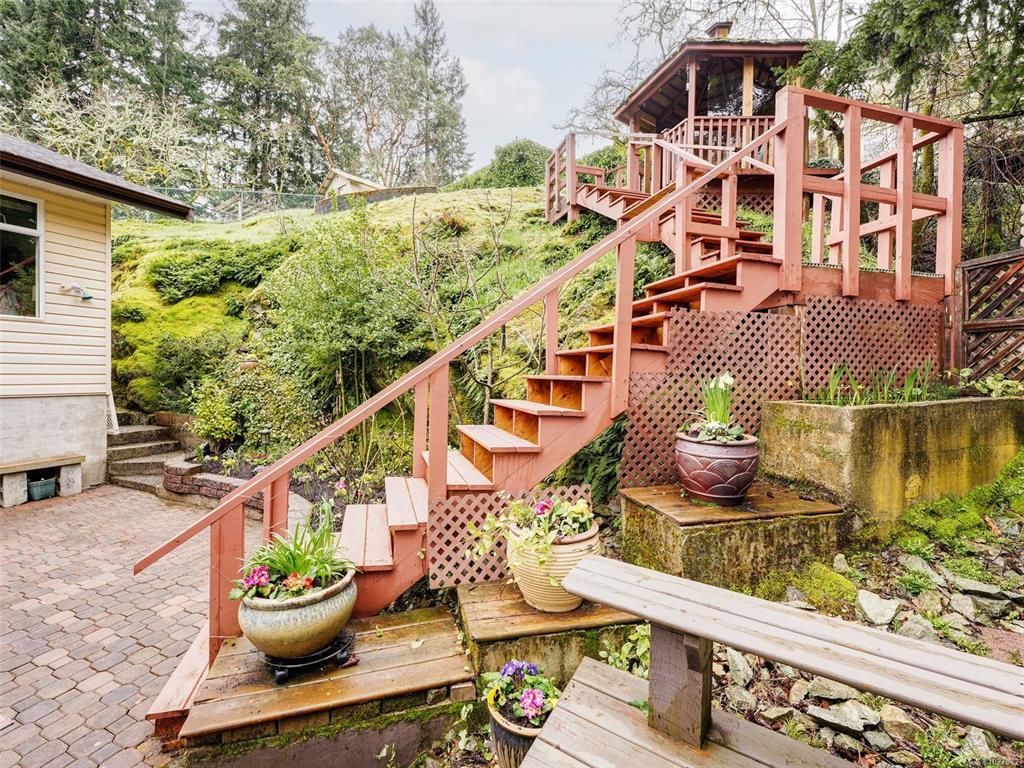 SPACIOUS BRENTWOOD BAY FAMILY HOME. Situated in a quiet neighbourhood this 3 bed 3 bath home with AC/heat pump captures timeless features with hardwood flrs & beautiful mill work. Enter through the lower area which offers a 2nd primary (no closet) with 4 pce ensuite & heated floors or use as an office/den/ rec room. The w/i crawlspace has plenty of storage. The main level features a formal living rm with a n/g fireplace & separate dining. The kitchen has a cozy eating area with access to front deck, few steps up to the main primary bed with w/i closet & 3 pcs ensuite, 2nd bed, 4 pc main bath & laundry. The family rm leads to the back yard which offers several different seating areas & a staircase to the top of the property enjoy the views. Wander through the rock pathway & enjoy the thoughtfully landscaped garden beds & tiered yard. The oversized dbl garage will have the hobbyists right in their element. Located close to Gore & Amwell Park, Butchart Gardens & Anglers Anchorage Marina
