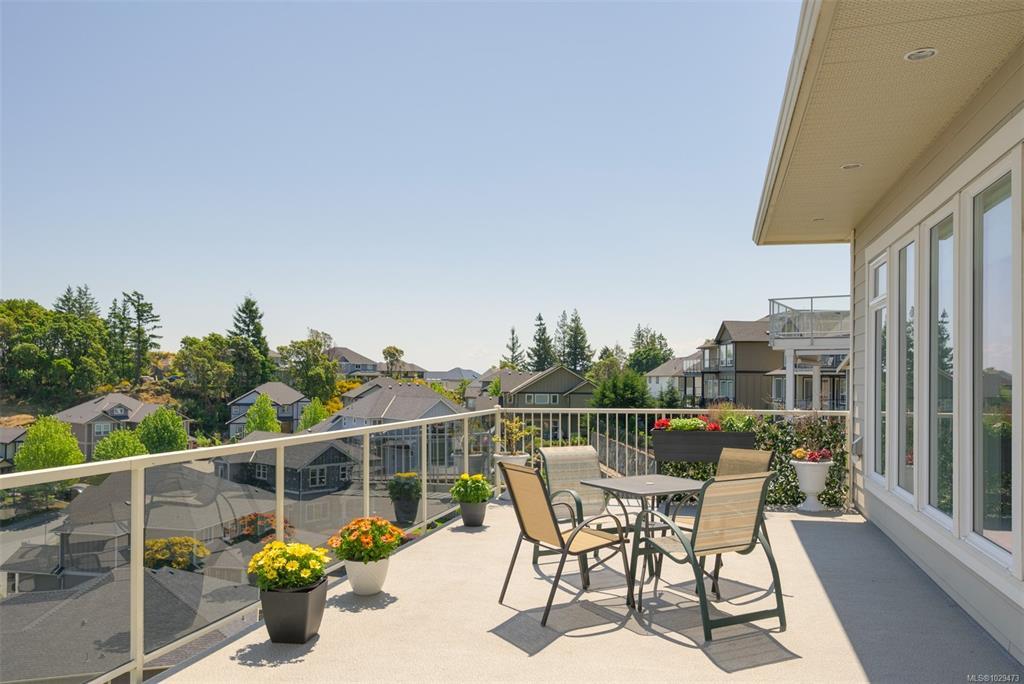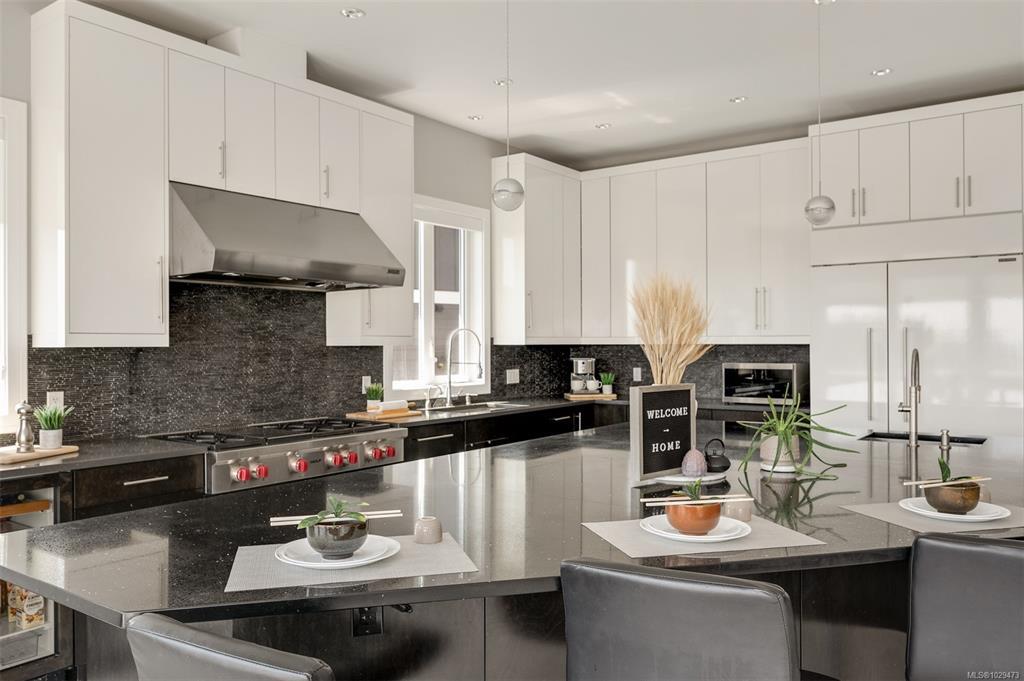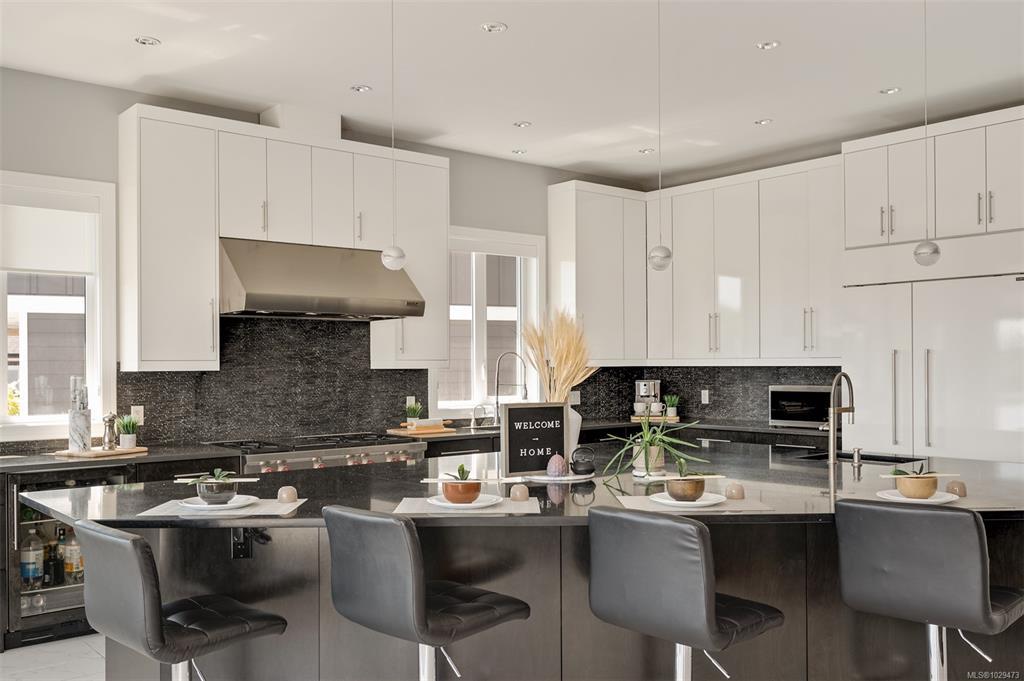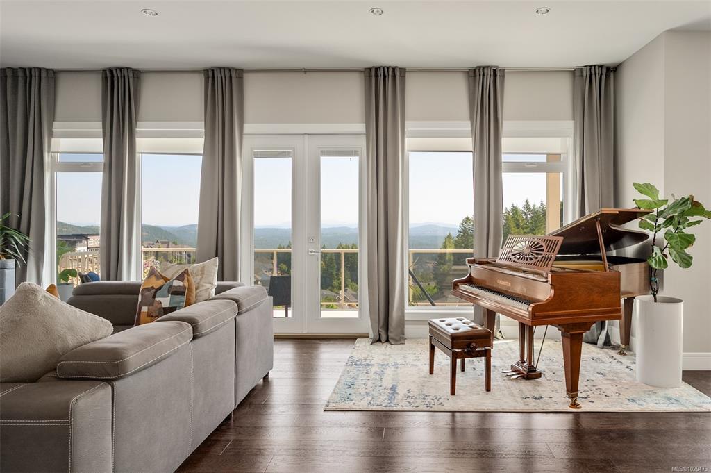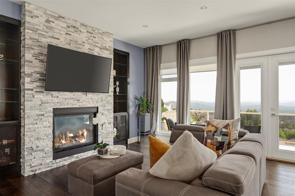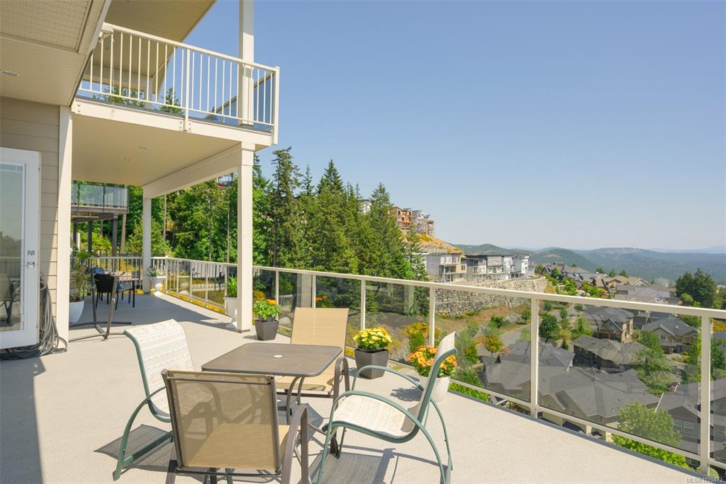 An impressive custom-crafted luxury residence on Nicklaus Ridge offering 7 bedrooms and 6 bathrooms across more than 5,300 sqft of well-designed living space. A striking entryway opens into a open-concept layout with sweeping views from every main living area. The chef-inspired kitchen showcases a large island, premium Wolf & Sub-Zero appliances, & a dedicated dining space with a built-in buffet. The spacious rear patio creates a seamless indoor-outdoor experience, perfect for entertaining while taking in stunning views of Victoria & Mt. Baker. Upstairs features 5 bedrooms, including a spacious primary with its own patio, a 5-piece ensuite, & walk-in closet. The lower level includes a media room, custom bar, guest bedroom w/ 3-piece bath, & walk-out access to a covered patio and landscaped yard. Finished with a legal 1 BED SUITE, this property is truly exceptional. Just steps to Bear Mountain Resort, close to downtown Langford amenities, and surrounded by unlimited outdoor recreation.