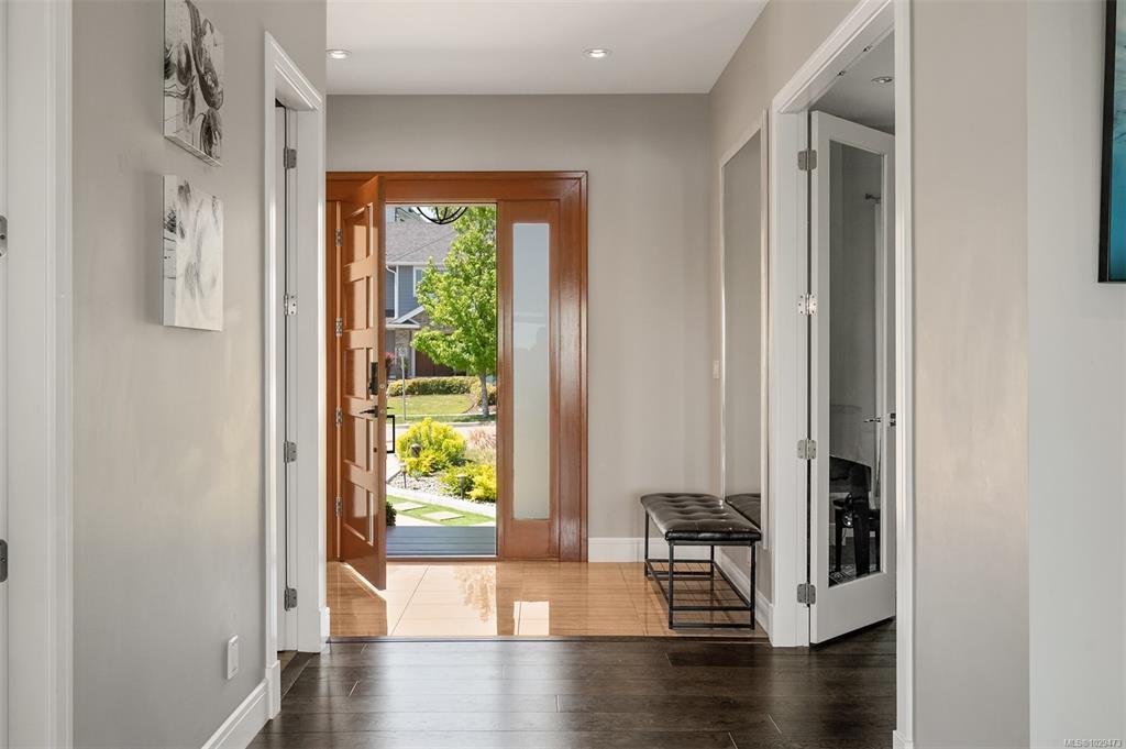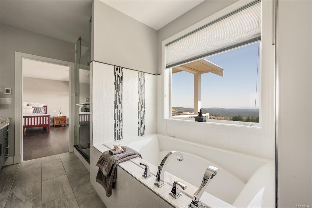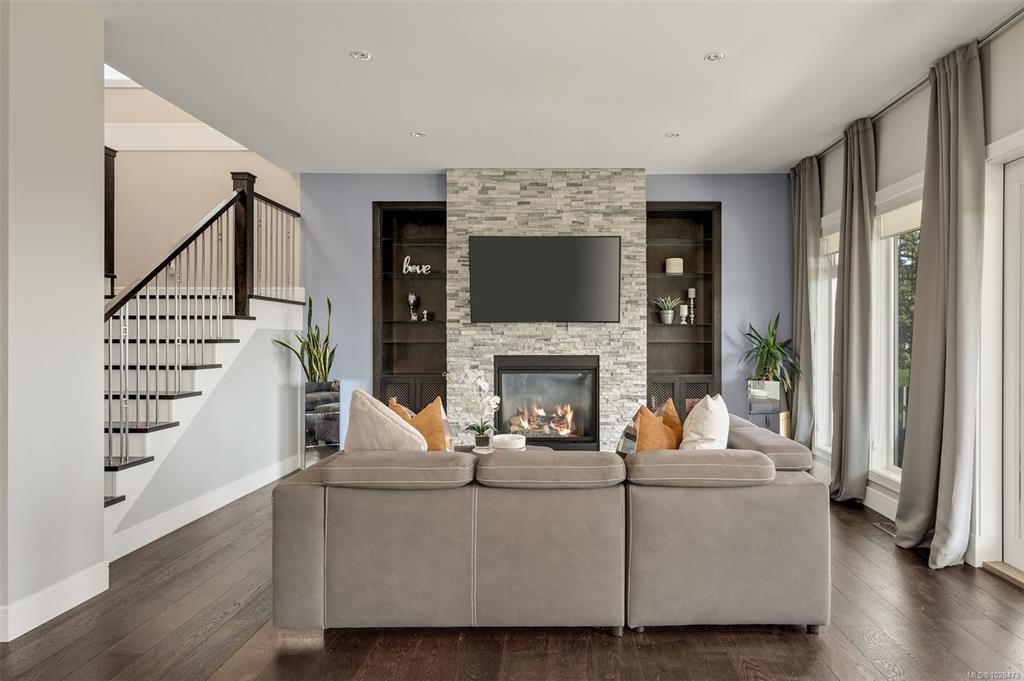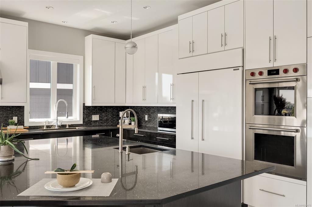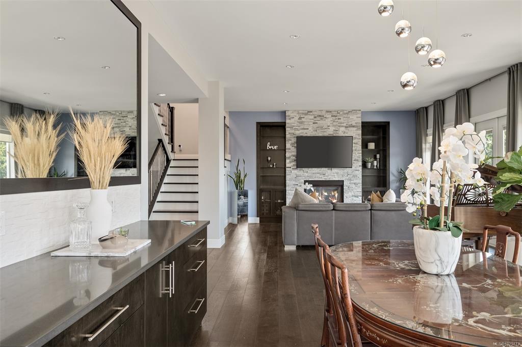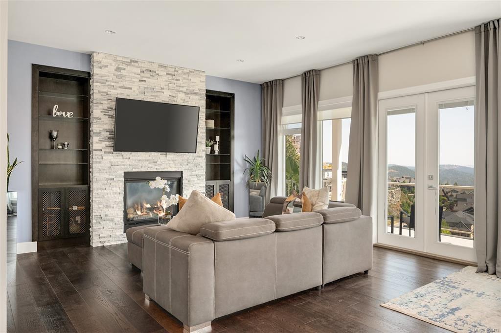 An impressive custom-crafted luxury residence on Nicklaus Ridge offering 7 bedrooms and 6 bathrooms across more than 5,300 sqft of well-designed living space. A striking entryway opens into a open-concept layout with sweeping views from every main living area. The chef-inspired kitchen showcases a large island, premium Wolf & Sub-Zero appliances, & a dedicated dining space with a built-in buffet. The spacious rear patio creates a seamless indoor-outdoor experience, perfect for entertaining while taking in stunning views of Victoria & Mt. Baker. Upstairs features 5 bedrooms, including a spacious primary with its own patio, a 5-piece ensuite, & walk-in closet. The lower level includes a media room, custom bar, guest bedroom w/ 3-piece bath, & walk-out access to a covered patio and landscaped yard. Finished with a legal 1 BED SUITE, this property is truly exceptional. Just steps to Bear Mountain Resort, close to downtown Langford amenities, and surrounded by unlimited outdoor recreation.