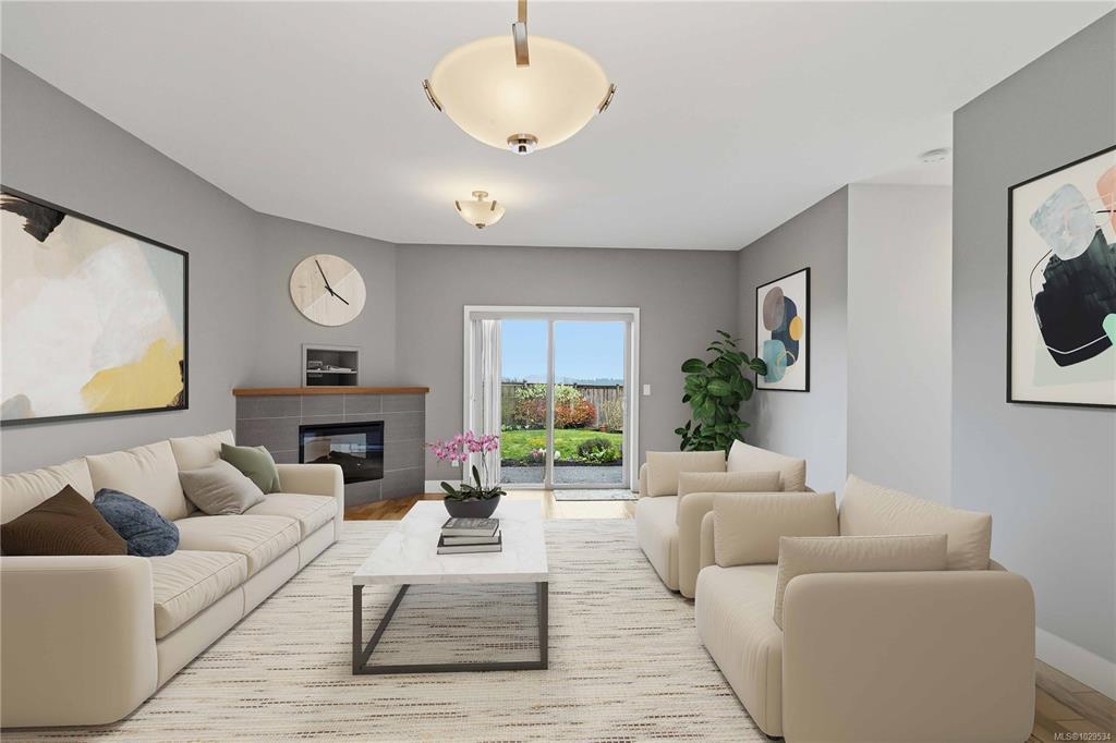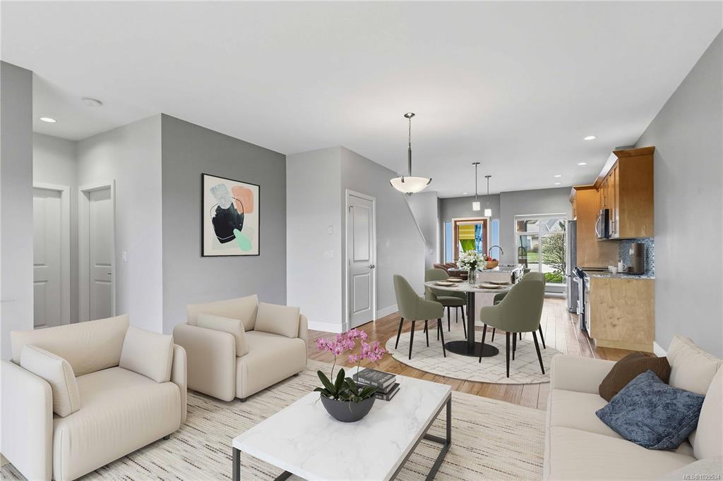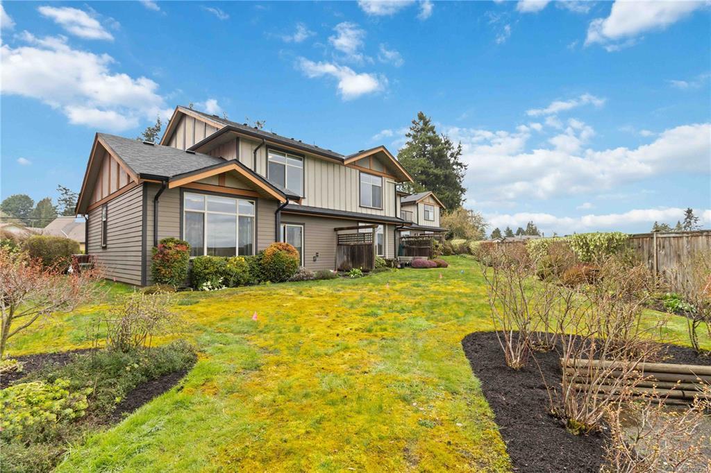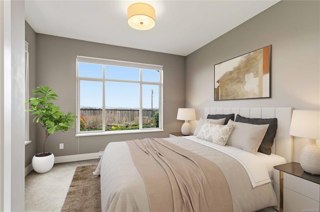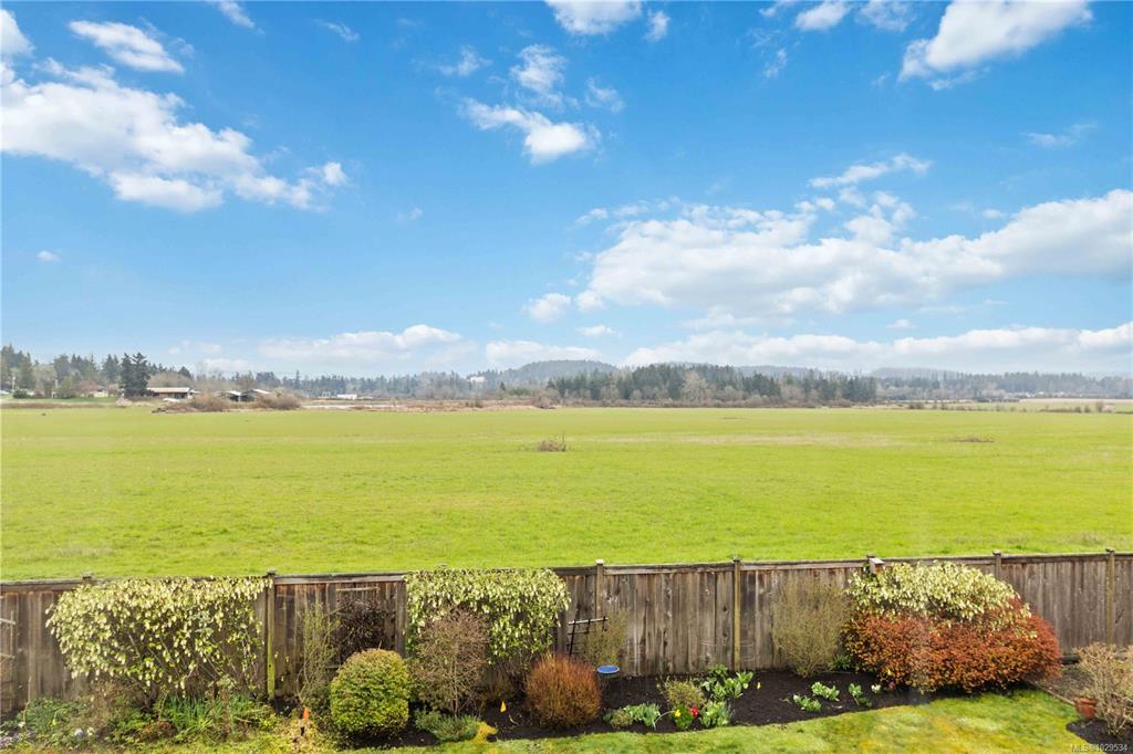 ~OPEN HOUSE SUN MAR 29, 1- 3PM~ MODERN SAANICHTON TOWNHOME WITH GORGEOUS ALR PASTORAL VIEWS. Welcome to the "Meadows" a complex of only 4 homes. Built in 2014, this well built townhome backs onto ALR farmland with huge expansive views. Featuring 9' ceilings in the main living spaces this property offers a great layout combined with quality finishings. A beautiful designer stained glass fir front door welcomes you into the bright, ground level entry, spaciously laid out home. Open concept kitchen with stainless steel appliances, island & bar. Bright living room with electric fireplace, beautiful views and access to a gorgeous sundrenched patio. Primary bedroom on the main with great en-suite. Engineered hardwood in main living areas, designer tile in baths, wood cabinets and beautiful granite and quartz on all surfaces. The upstairs features 2 large bedrooms, and a beautiful bathroom. Meticulously kept gardens. Steps to Saanichton Town Centre, Centennial Park and nature trails.