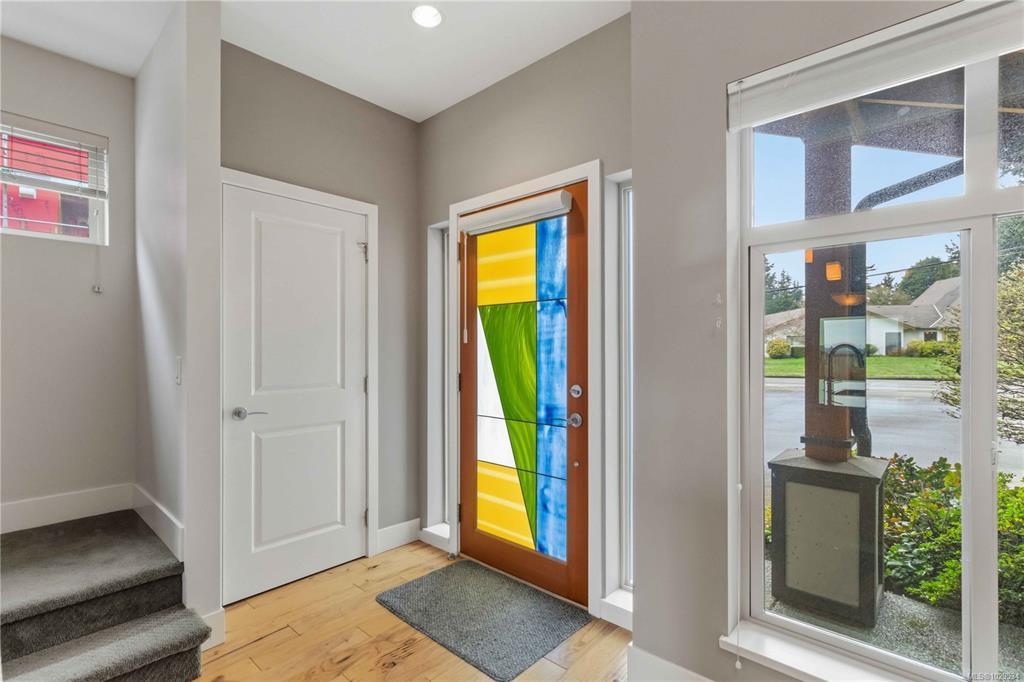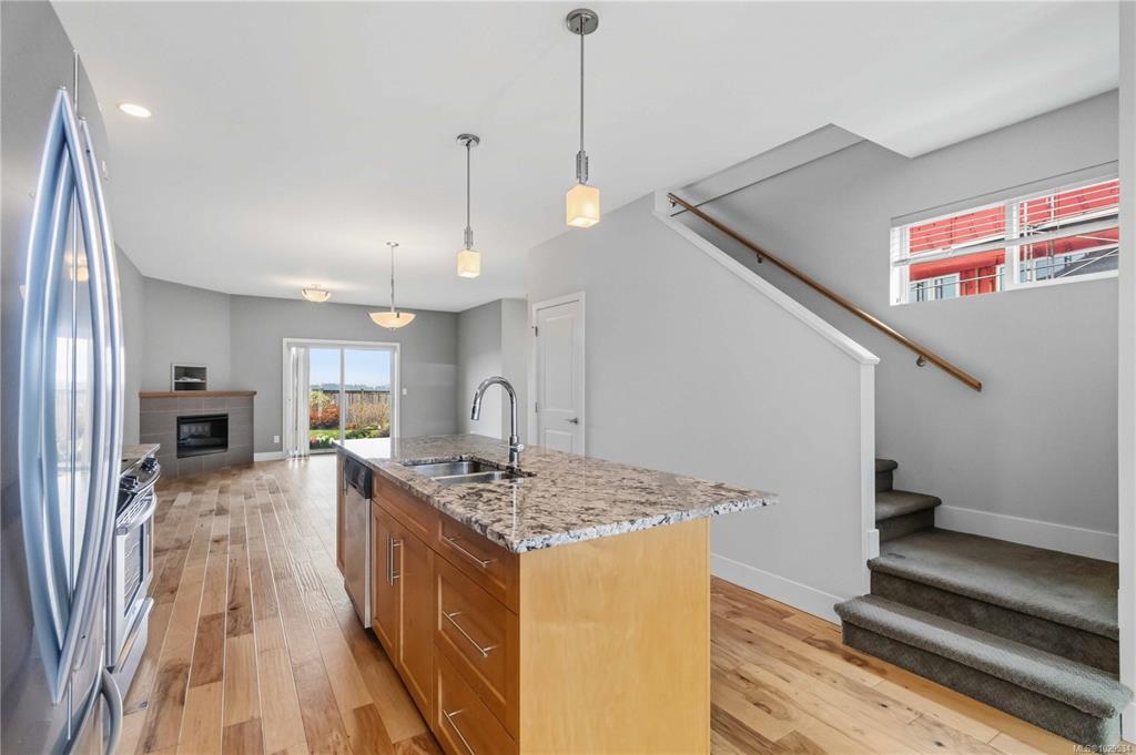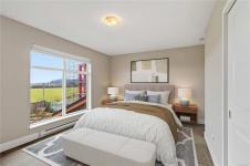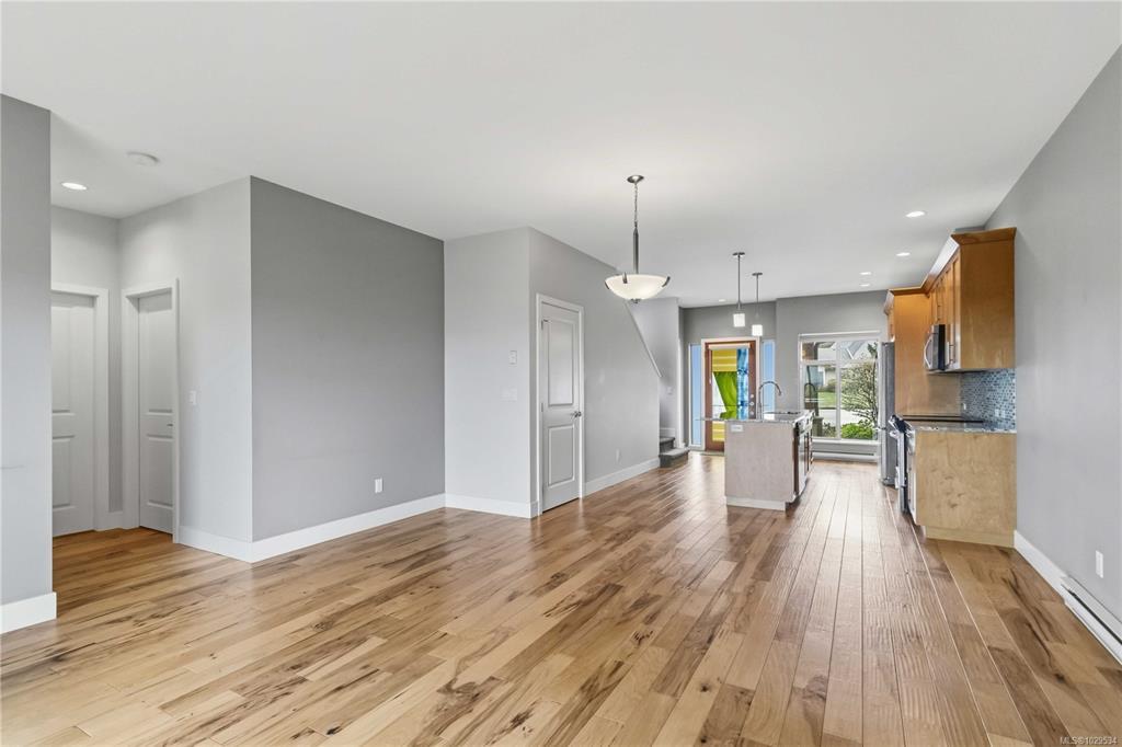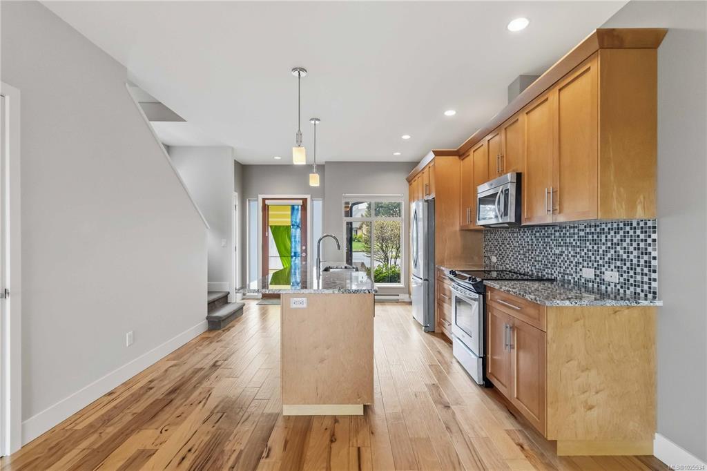 ~OPEN HOUSE SUN MAR 29, 1- 3PM~ MODERN SAANICHTON TOWNHOME WITH GORGEOUS ALR PASTORAL VIEWS. Welcome to the "Meadows" a complex of only 4 homes. Built in 2014, this well built townhome backs onto ALR farmland with huge expansive views. Featuring 9' ceilings in the main living spaces this property offers a great layout combined with quality finishings. A beautiful designer stained glass fir front door welcomes you into the bright, ground level entry, spaciously laid out home. Open concept kitchen with stainless steel appliances, island & bar. Bright living room with electric fireplace, beautiful views and access to a gorgeous sundrenched patio. Primary bedroom on the main with great en-suite. Engineered hardwood in main living areas, designer tile in baths, wood cabinets and beautiful granite and quartz on all surfaces. The upstairs features 2 large bedrooms, and a beautiful bathroom. Meticulously kept gardens. Steps to Saanichton Town Centre, Centennial Park and nature trails.