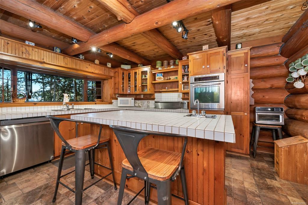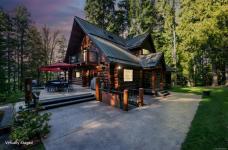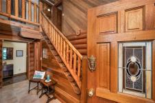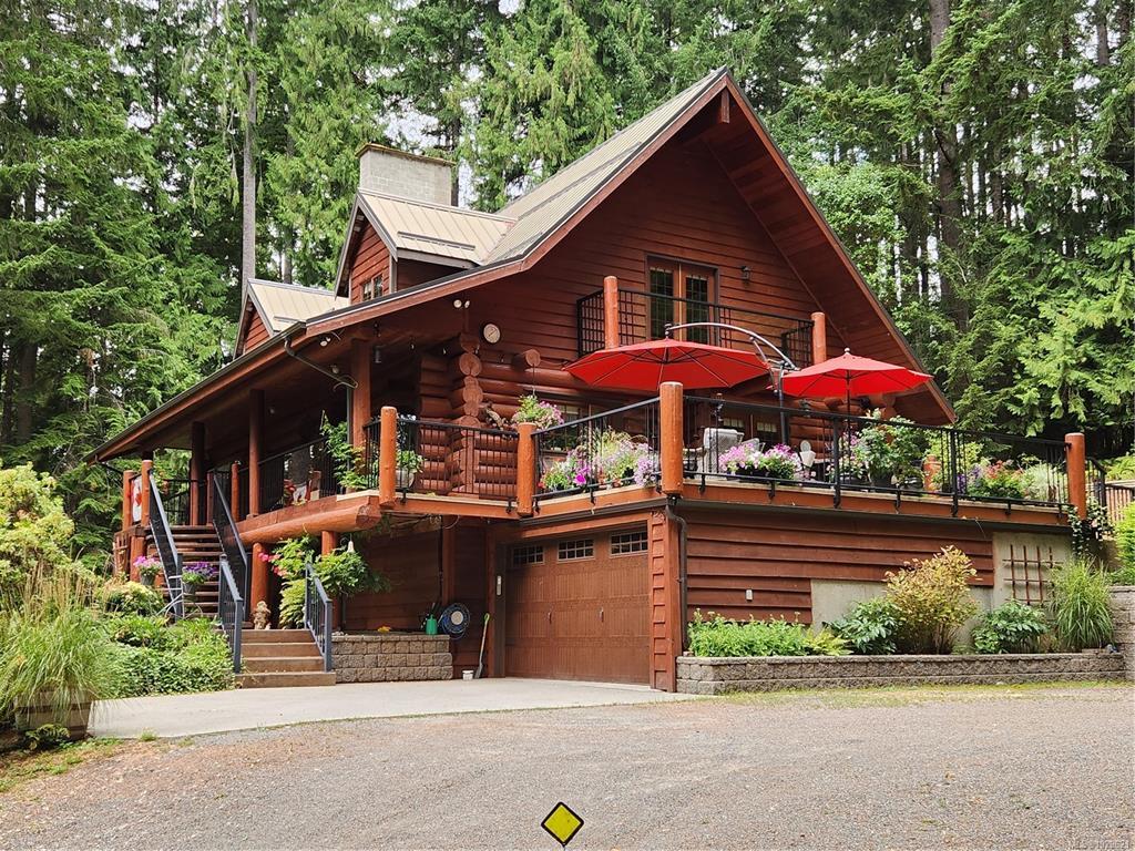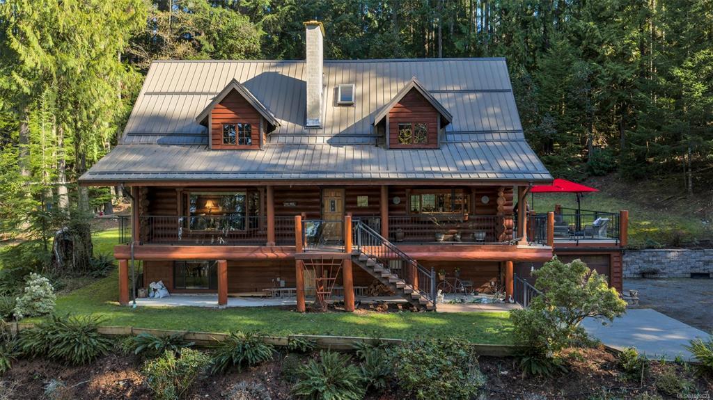 Fantastic opportunity to own a lovingly maintained, very private, one-owner log home across from public lake access on 16.5 acres (2 titles) of natural, forested beauty! The 3 bed, 2.5 bath, 4,000 sqft home sits on 3.12 acres with lake glimpses, mature trees, metal roof, geothermal heating & inviting outdoor living spaces. Lot 2 (13.5 acres) offers mixed forest, trails, level areas, rock outcrops, views, road access, & residential zoning. As you come up the private driveway you are instantly taken back by this home & setting. Main level features a bright kitchen with large island & pine cabinetry, a dining area opening to a spacious deck & patio & a vaulted ceiling living room with stone fireplace, plus family room, powder room & laundry/mudroom. Upstairs has 3 generous bedrooms, including a primary with walk-in closet, 5-piece cheater ensuite & private deck. Lower level offers flexible family space, potential 4th bedroom, 2 dens, storage & workshop. This could be your legacy property!