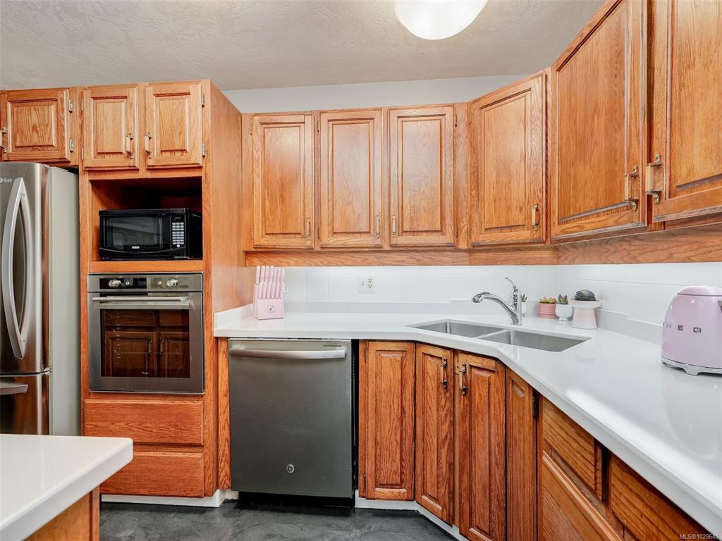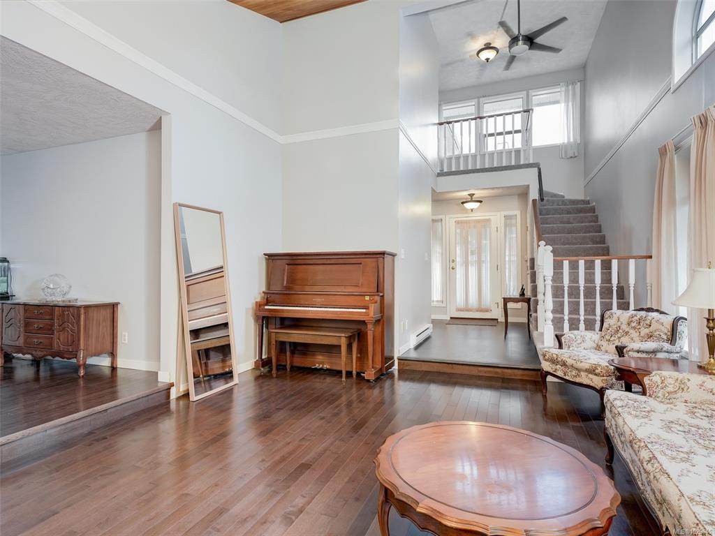 SPACIOUS BROADMEAD HOME ON A CORNER LOT. Situated in the highly desirable Scottswood neighbourhood in Broadmead this family home offers 3 beds, 3 baths with many updates. You will appreciate the openness of the living space flooded with natural light & 14' vaulted ceilings in the living rm featuring a n/g f/p with beautiful stonework adjacent to the dining area. The well laid out kitchen has newer appliances, quartz counters and refreshed cabinetry with an eating area that opens to the solarium. Cozy up in the family rm with a free standing n/g f/p and A/C to keep you cool in the summer, and the powder room finishes off this level. Upstairs the primary bed features hardwood floors, large w/i closet and 4 piece ensuite with two additional bedrooms, 4 piece main bath and convenient laundry. Plenty of storage and a double car garage. New hot water tank, new gutters and leaf filters, freshly painted interior & new carpets. Near Broadmead Shopping, Kentwood Park & easy commute to Uvic.