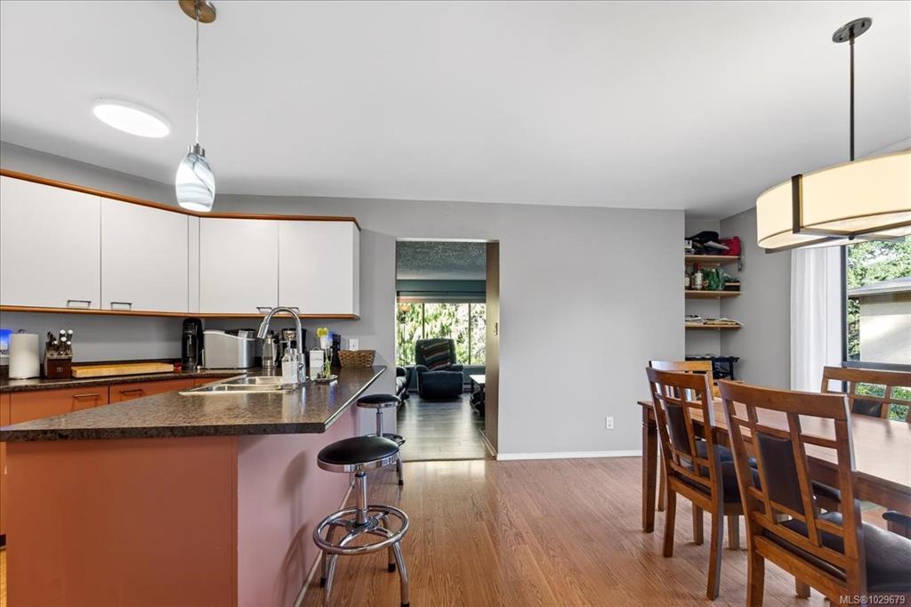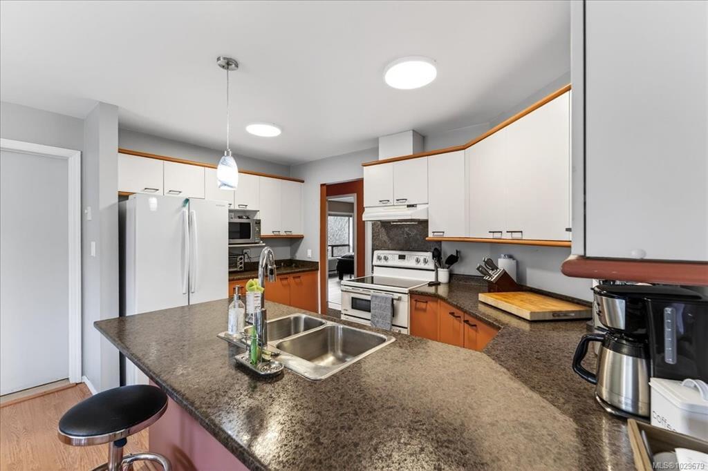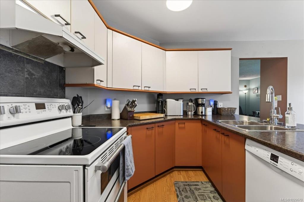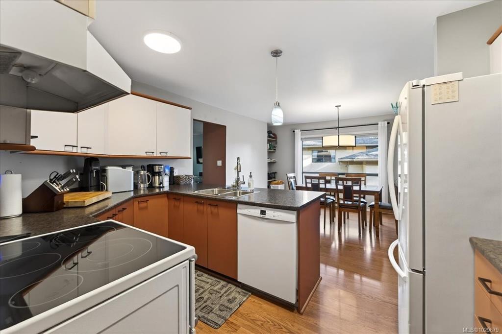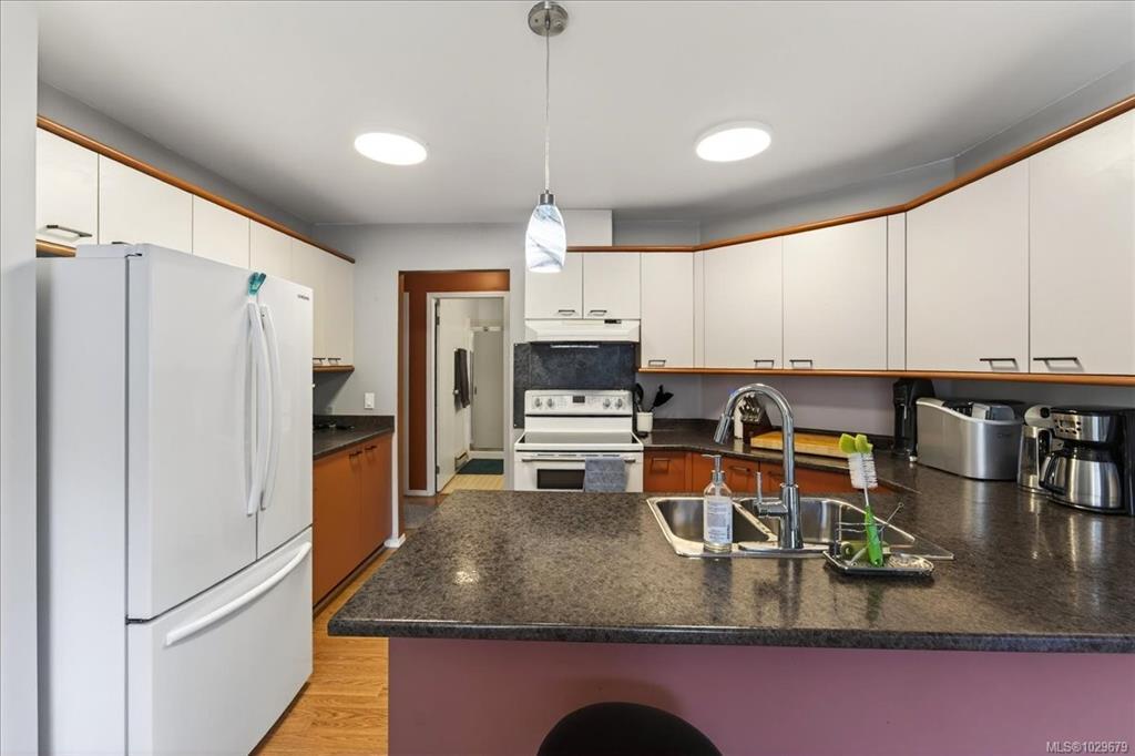 Tucked away in a quiet, well-managed, beautifully maintained 3+ acres of park-like grounds, this centrally located townhome offers the perfect blend of privacy & convenience. This single-level home features 1,400+/- sq. ft. of thoughtfully designed living space, including 2 beds & 2 baths. Bright Kitchen with a breakfast bar, seamlessly connecting the dining area to a spacious living room complete with a cozy propane fireplace. Step outside to your own private deck—ideal for morning coffee or summer BBQs. The generous primary suite easily accommodates a king-sized bed & features a walk-in closet, & a 4-piece ensuite. Additional highlights include a single-car garage, ample storage, & a functional laundry/mudroom. This well-run strata offers on-site RV parking & beautifully landscaped grounds. Major updates include new roofs (2022) & a new control panel for the septic system. Located steps to Westshore Centre, Belmont Market, transit & all everyday amenities.Quick possession possible