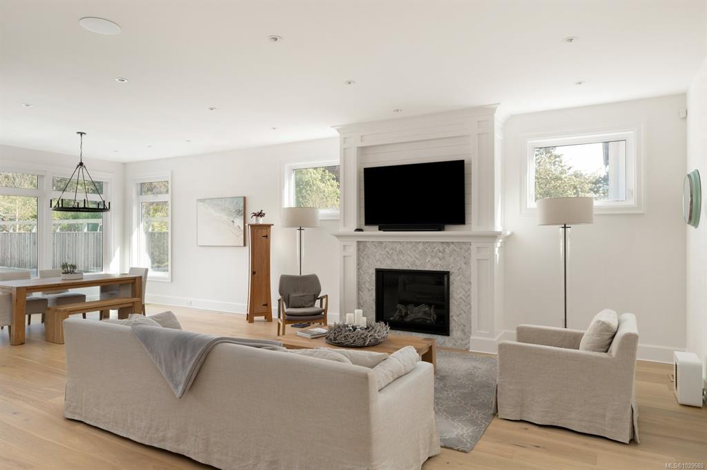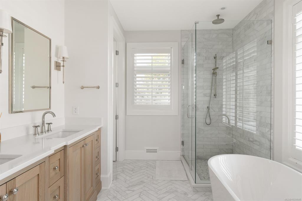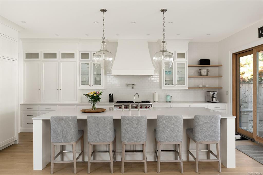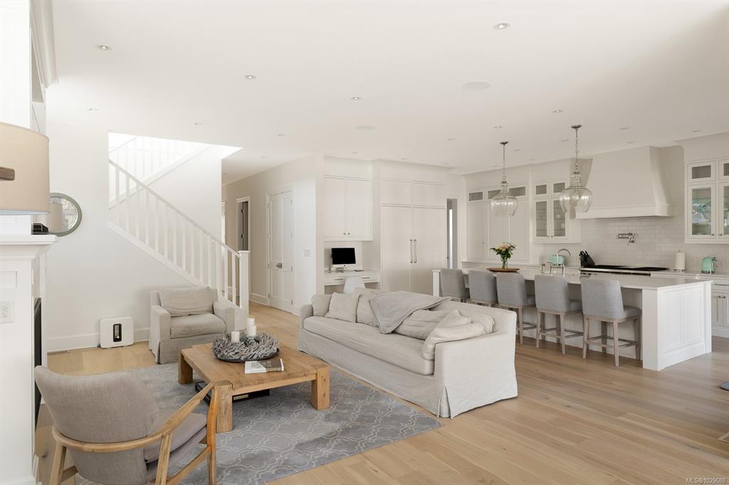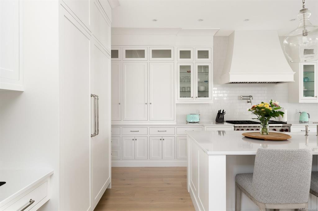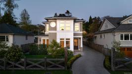 Welcome to 575 Saint Patrick Street, an exceptional custom-built Craftsman residence in the heart of Oak Bay. Designed by Zebra Design and completed in 2023, this three-time CARE Award-winning home showcases remarkable craftsmanship and thoughtful design. Nearly 4,000 sq ft with soaring 10' ceilings, it offers 4 bedrooms and 4 baths, including 2 primary suites, one on the main level. Interiors feature engineered oak floors, marble fireplaces with herringbone detail, and Thomas Phillips custom cabinetry, winner of a CARE Award for Best Kitchen. The chef’s kitchen boasts a 48” Wolf gas range, 60” panel-ready fridge, bar fridge, built-in microwave, and Kohler sink with Riobel fixtures. Wrapped in taper-sawn cedar shingles with exposed fir rafter tails and custom trim, the exterior reflects timeless quality. Set on a rare 10,000 sq ft lot with mature Portuguese laurel hedging & custom fencing for privacy. Covered patio with Coast Spa & Infratech heater for year round outdoor relaxation