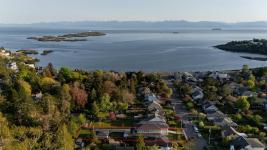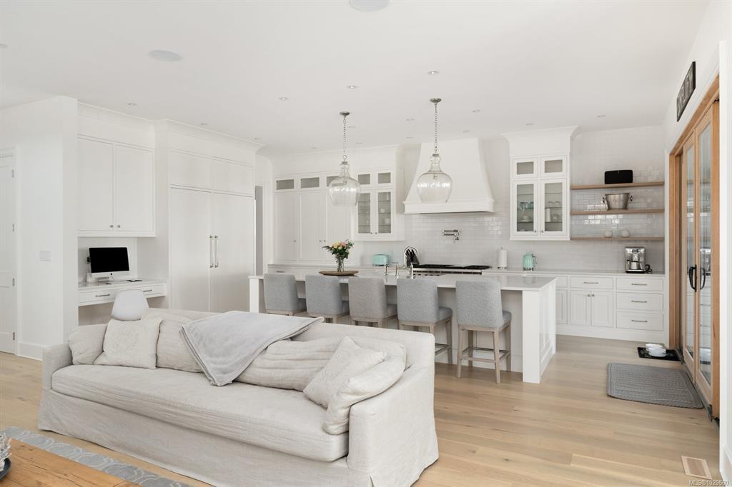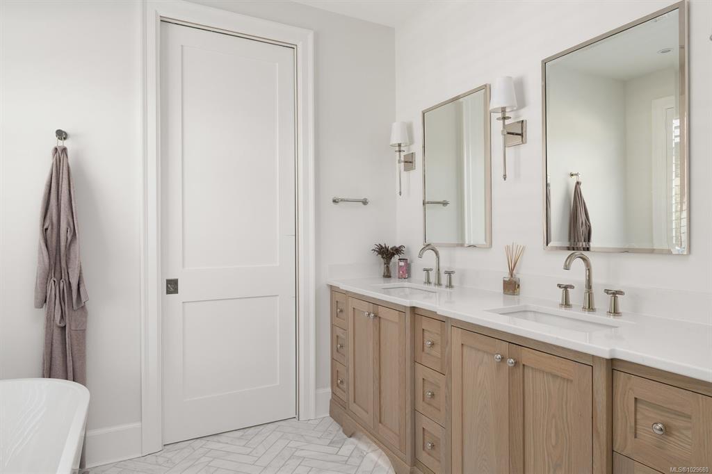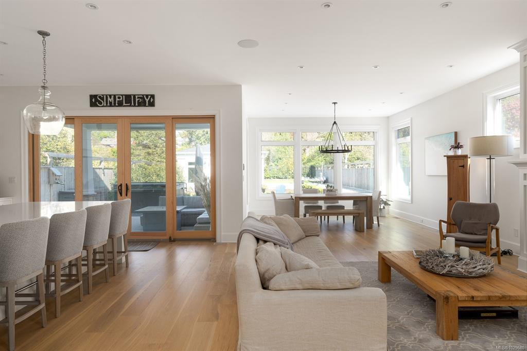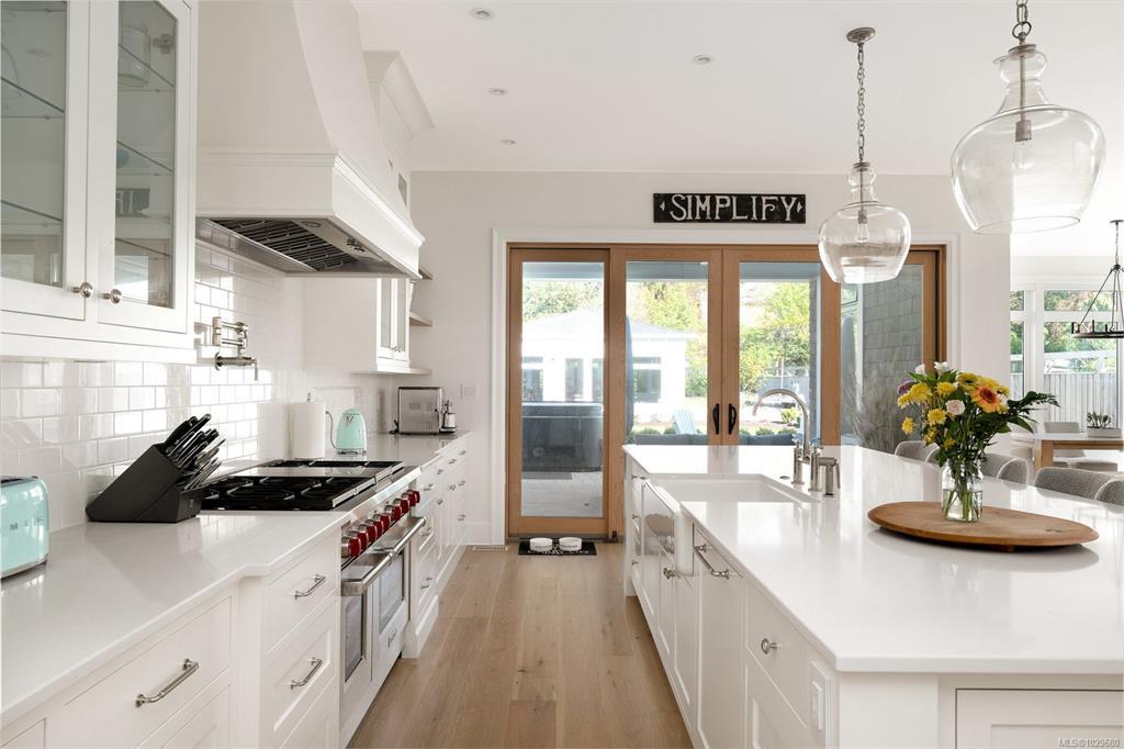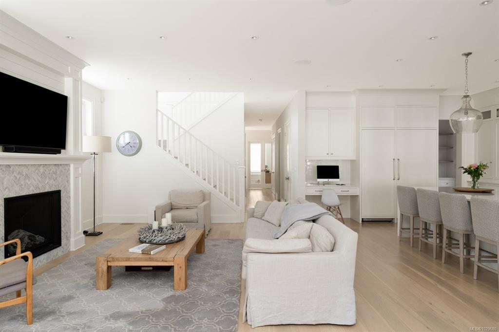 Welcome to 575 Saint Patrick Street, an exceptional custom-built Craftsman residence in the heart of Oak Bay. Designed by Zebra Design and completed in 2023, this three-time CARE Award-winning home showcases remarkable craftsmanship and thoughtful design. Nearly 4,000 sq ft with soaring 10' ceilings, it offers 4 bedrooms and 4 baths, including 2 primary suites, one on the main level. Interiors feature engineered oak floors, marble fireplaces with herringbone detail, and Thomas Phillips custom cabinetry, winner of a CARE Award for Best Kitchen. The chef’s kitchen boasts a 48” Wolf gas range, 60” panel-ready fridge, bar fridge, built-in microwave, and Kohler sink with Riobel fixtures. Wrapped in taper-sawn cedar shingles with exposed fir rafter tails and custom trim, the exterior reflects timeless quality. Set on a rare 10,000 sq ft lot with mature Portuguese laurel hedging & custom fencing for privacy. Covered patio with Coast Spa & Infratech heater for year round outdoor relaxation