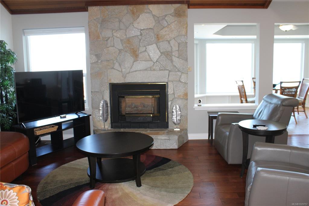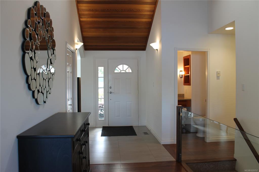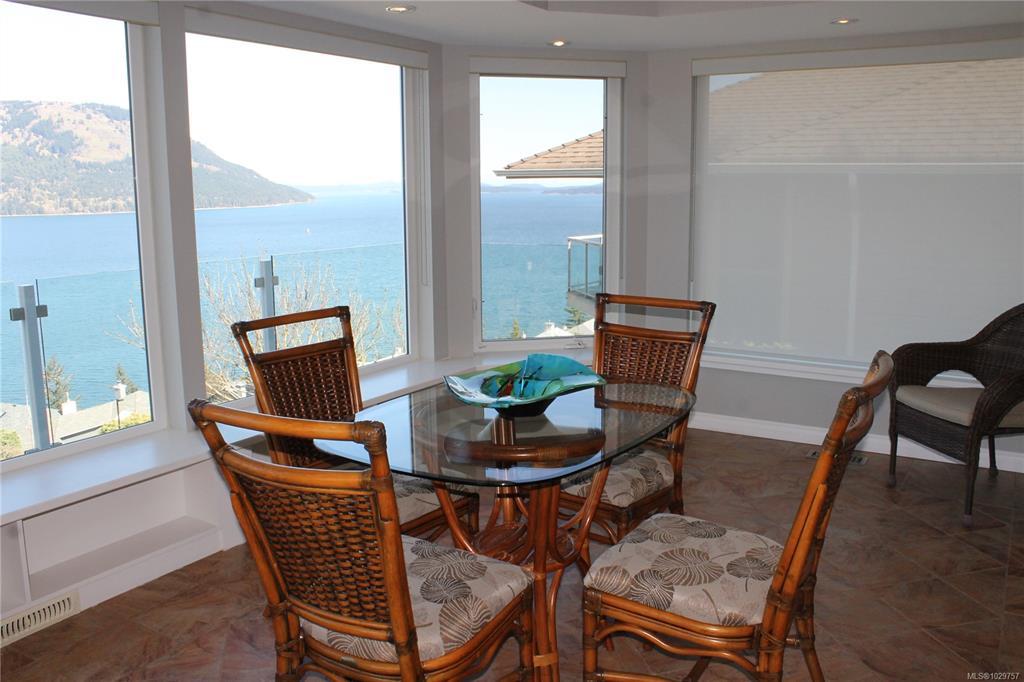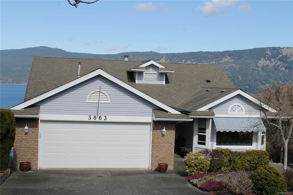 Unobstructed 180 Degree Ocean View Home. This beautiful main level entry home has an excellent layout. The updated kitchen has stainless steel appliances (brand new fridge), granite countertops, lots of cupboards & a great peninsula for entertaining. The kitchen leads into the dining area & sunroom, with expansive views of Saltspring Island, Satellite Channel & Sansum Narrows. The lovely living room has Cathedral ceilings & there is a separate sunny family room. The Primary bedroom is on this level and has a 4 pc ensuite & a walk-in closet. The laundry is also on this level. Downstairs has 2 bedrooms & a 4 pc bathroom plus a big rec room with sliding doors to the lower patio. There is also an in-house workshop & lots of storage. Features of this home include a double garage, ductless heat pump, hardwood floors, new HWT & the Poly B has been replaced. Close to the Arbutus Ridge Village Centre for recreation & fun. This location really is special, on a peaceful lane with amazing views!