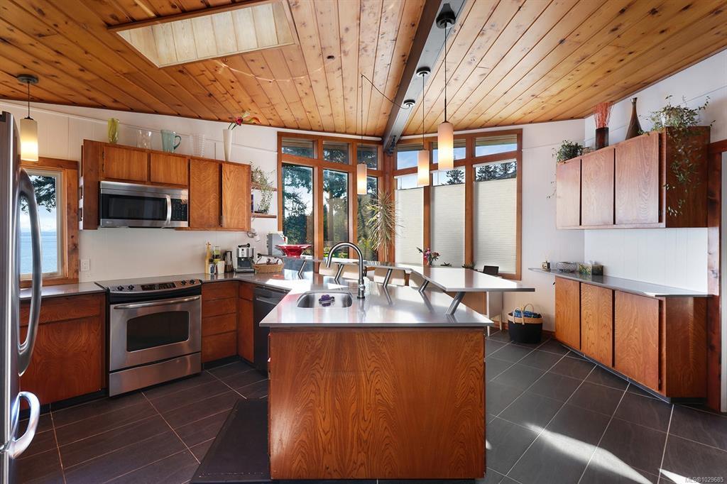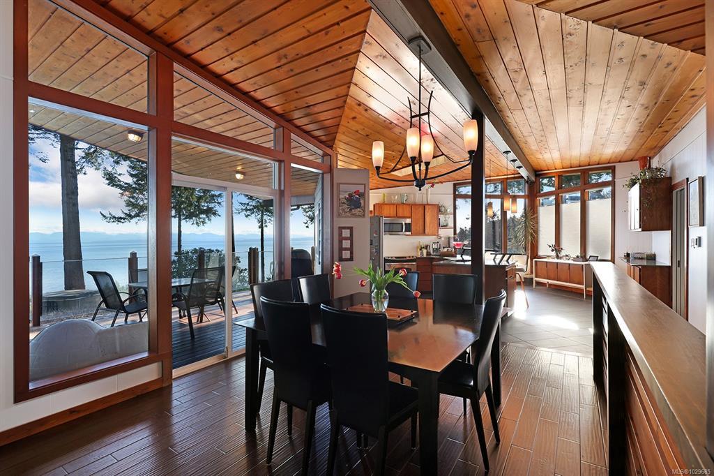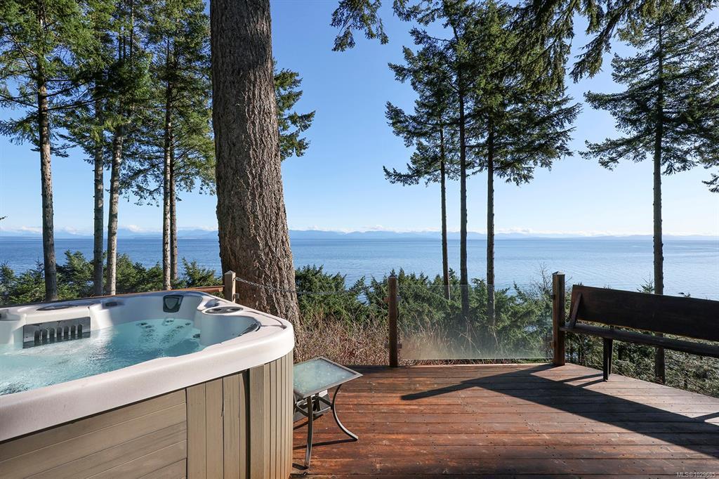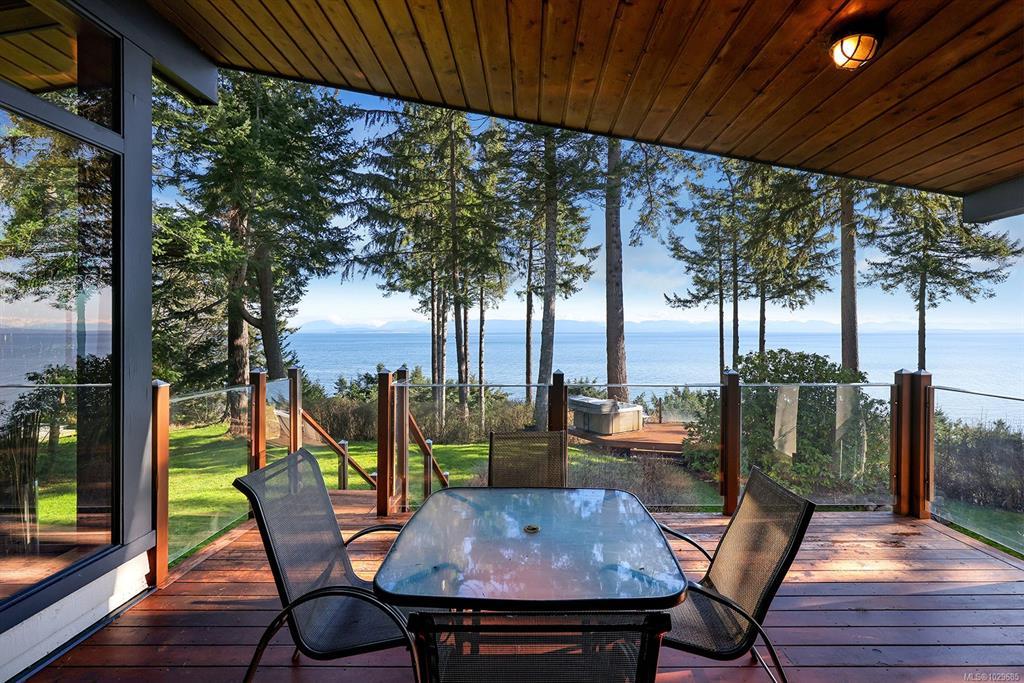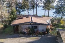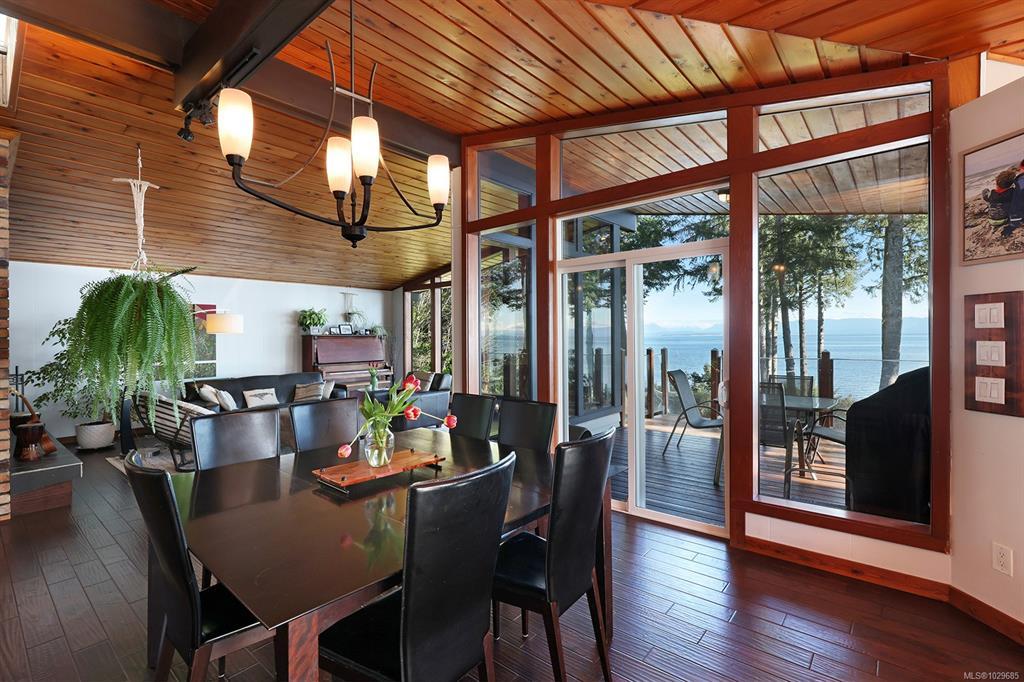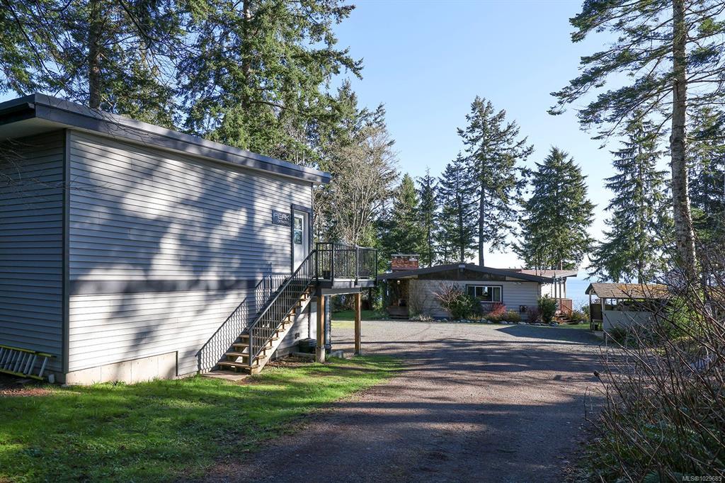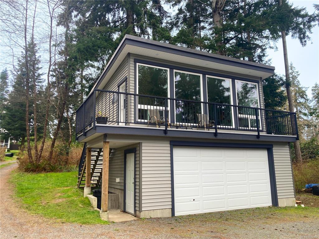 Stunning oceanfront home, with a detached shop, a self-contained beachfront yurt, and a peaceful acre of property! Perched on semi-highbank property, the views here are spectacular and ever-changing throughout the tides and seasons. Inside, the 3000 sq ft home has been extensively renovated throughout, showcasing rich wood tones, original vaulted ceilings, quartz counters, & engineered hardwood floors. The newer detached shop has a double garage plus two nicely sized rooms above currently used as a gym and a workshop - an easy conversion to additional living space if desired, or use as a home based business. Walk down the forested staircase to the ocean and find the charming yurt set right at the foot of your own private beach! The low tides reveal a sandy coastline - one of the best spots around for exploring and swimming. Newer septic system, upgraded drainage, and good drinking water. Just minutes to Comox and even closer to Seal Bay Park. Truly the complete oceanfront package.