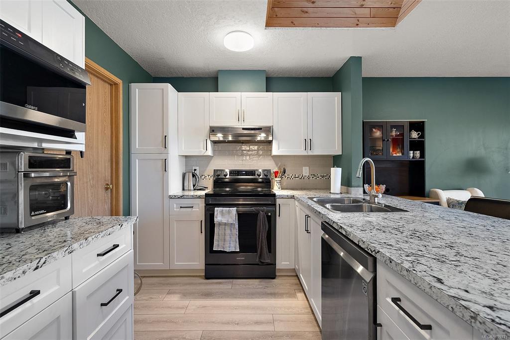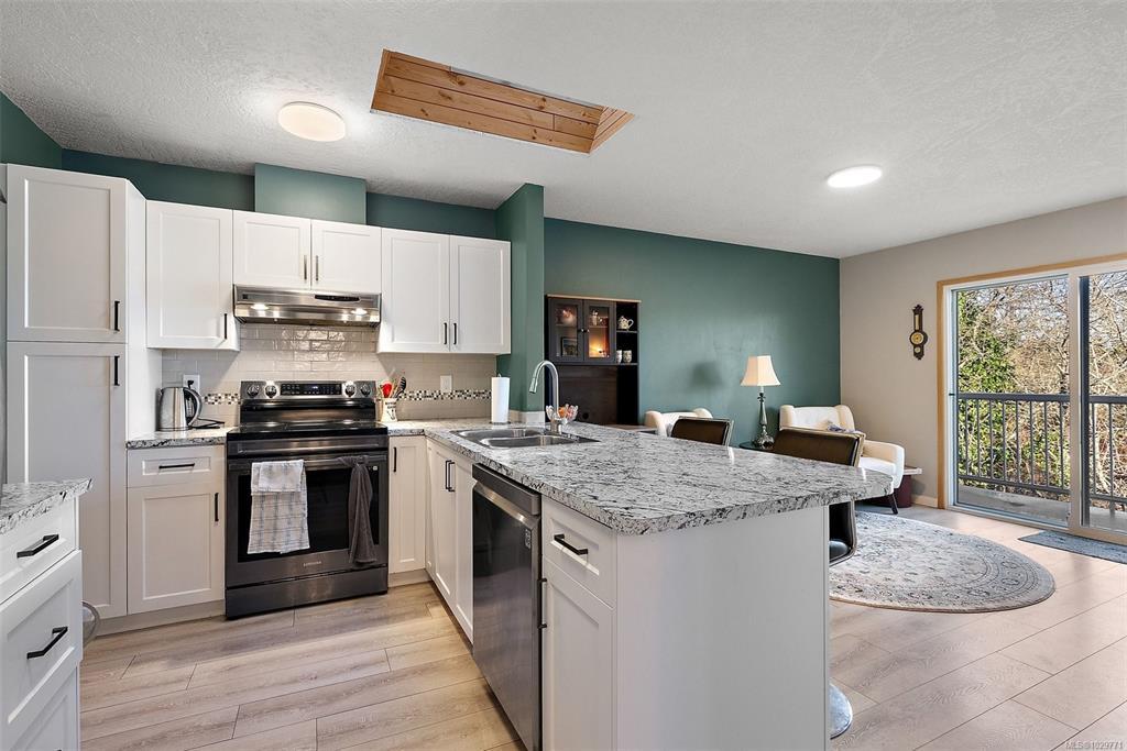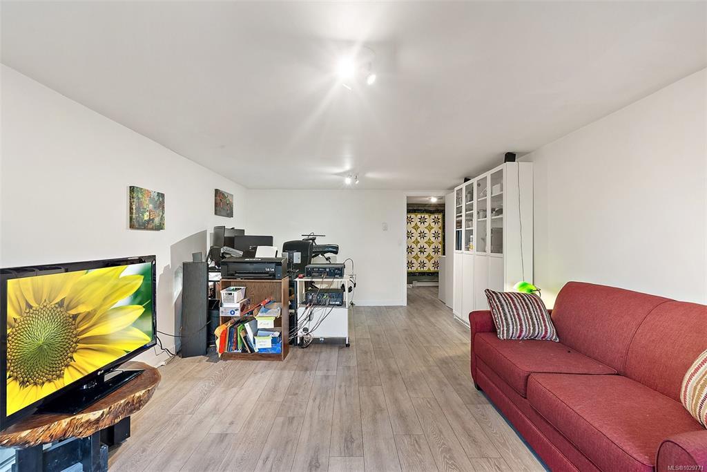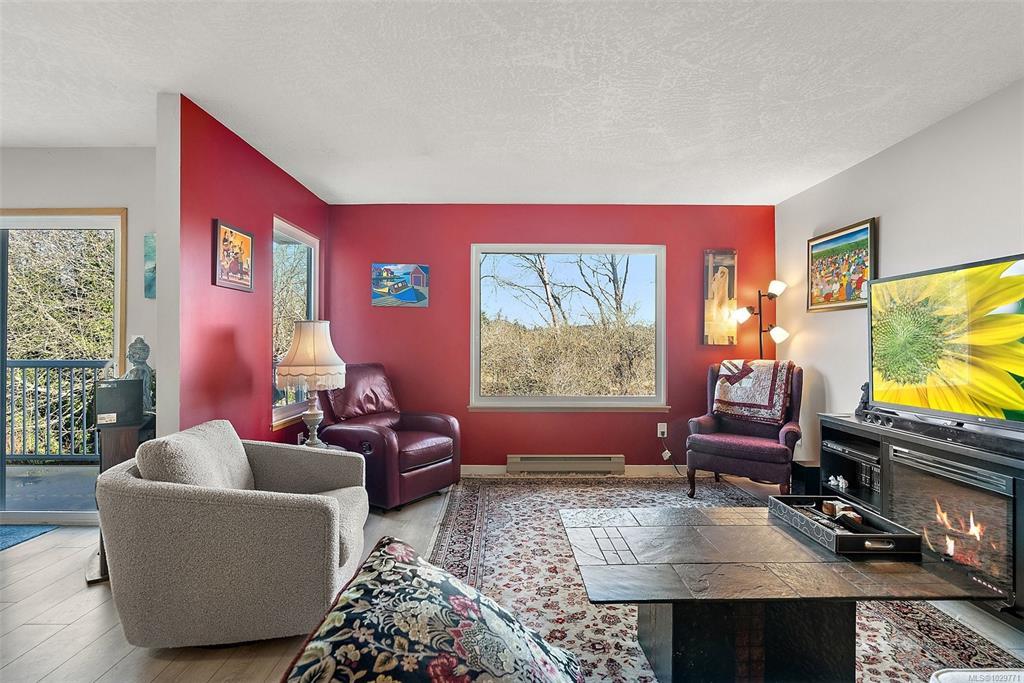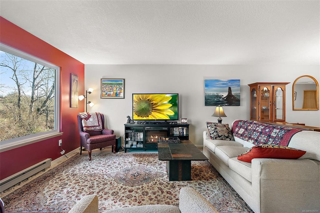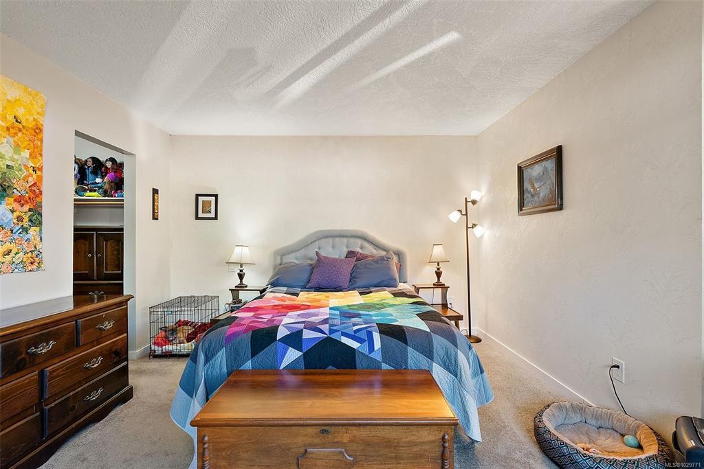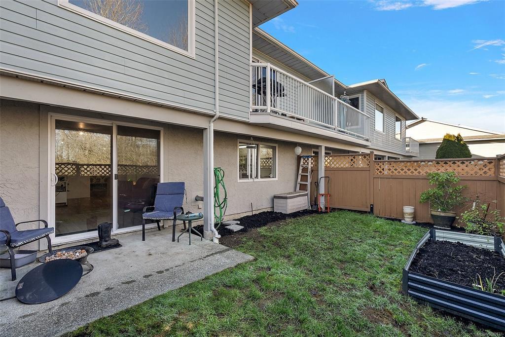 FREE BRAND NEW ROOF! Calling PET owners (NO-SIZE RESTRICTION) & NATURE LOVERS-Enjoy a FULLY FENCED private yard with patio and deck surrounded by cherry blossoms. Backing onto Saanich Natural Park with DIRECT ACCESS TO PANAMA FLATS. This bright townhome offers TRUE ONE-LEVEL LIVING & VERSATILE LOWER LEVEL for expansion. With over 2,200 sqft this townhome size rivals many single-family homes, it delivers exceptional space with the TURNKEY CONVENIENCE OF A WELL-RUN STRATA, ideal for those looking to simplify without giving up room. The main level features a spacious living and dining area and two bedrooms, including a comfortable and larger primary suite with walk-in closet. Living room kitchen & dining areas ENJOY PARK VIEWS, creating a PRIVATE, PEACEFUL NATURE SETTING rarely found in townhome living. Downstairs offers a large family room, Rec room that could be used as a bedroom & is PLUMBED FOR 3RD WASHROOM. Also BONUS 5 Foot height CRAWL SPACE.