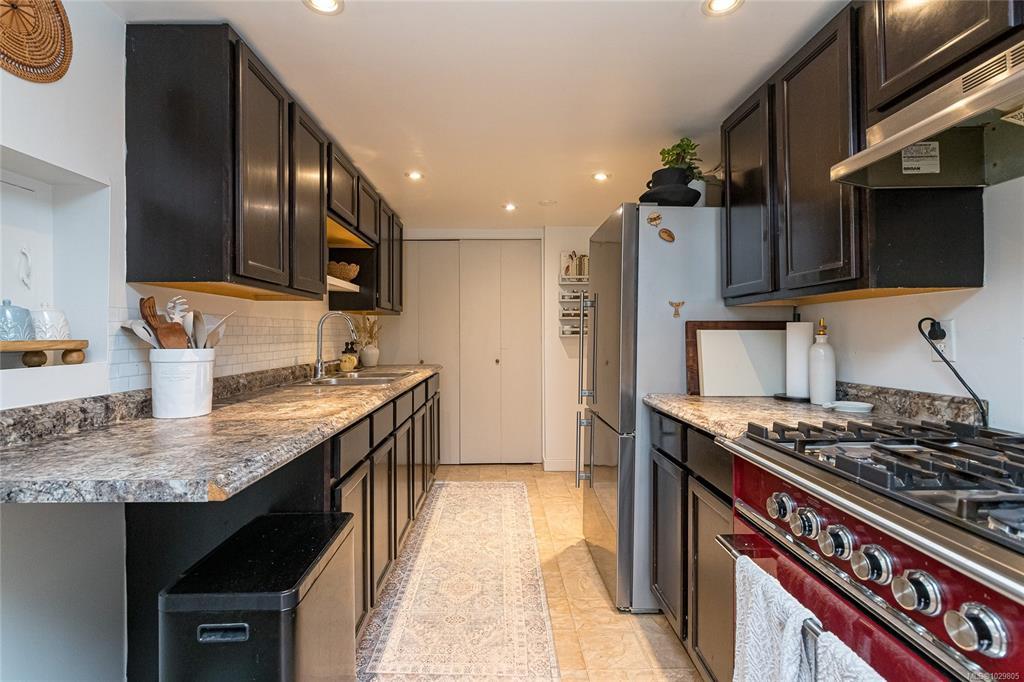 This beautifully maintained family home with a suite sits on a large, flat, fully fenced lot in scenic Colwood. The open-concept main level showcases a renovated kitchen with granite counters, a living room with a gas fireplace, and a dining area that flows into a family room. The family room opens to a generous deck overlooking the lush, sunny backyard and gardens—you’ll love spending time out here. It’s perfect for summer entertaining on the deck or quiet evenings in the hot tub. Upstairs offers three bedrooms and a full bath. The lower-level suite includes a spacious family room, a huge primary bedroom, and an office/second bedroom. Just minutes to Royal Bay, excellent schools, playing fields, walking trails, the Esquimalt Lagoon, and tennis courts.