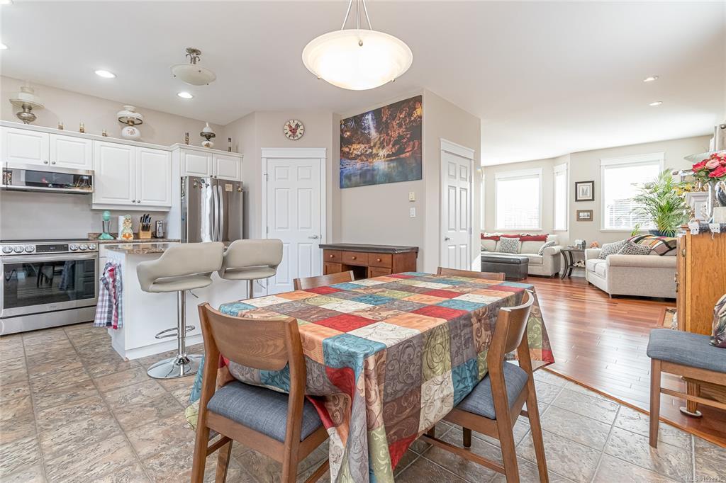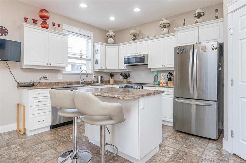 Welcome to Brookside Gates, a quiet gated community of just 18 homes conveniently located just off Sherman Road and within walking distance to downtown Duncan, the curling club, soccer fields, and Drinkwater Elementary. This beautifully maintained two-storey home offers 3 bedrooms and 2.5 bathrooms and is move-in ready. The bright main floor features 9’ ceilings, large windows, a cozy gas fireplace, and a country-style kitchen with island, walk-in pantry, and spacious eating area with sliding doors to the private outdoor space. Upstairs offers three generous bedrooms, two with walk-in closets, including the primary suite with ensuite. The laundry is conveniently located on the upper level. Additional features include engineered wood floors, tiled entry, two heat pumps for efficient heating and cooling, natural gas BBQ hookup, in-ground sprinklers, and a fully fenced side yard with easy-care landscaping and garden shed.