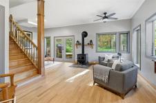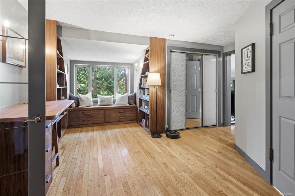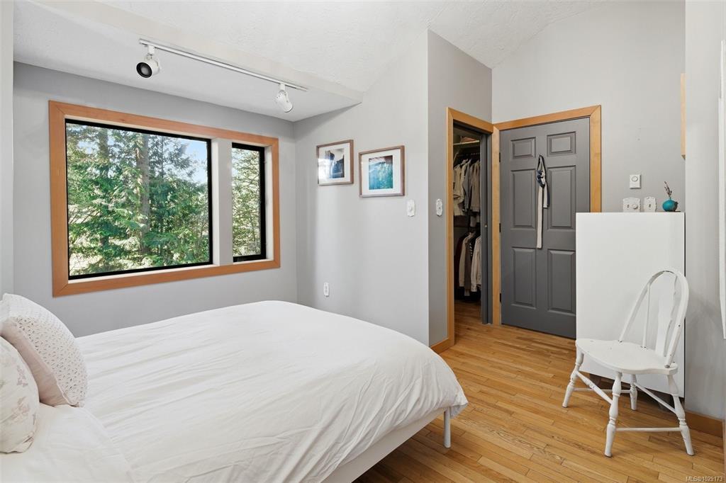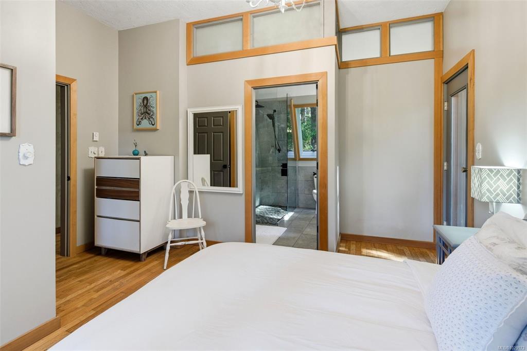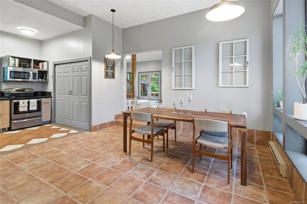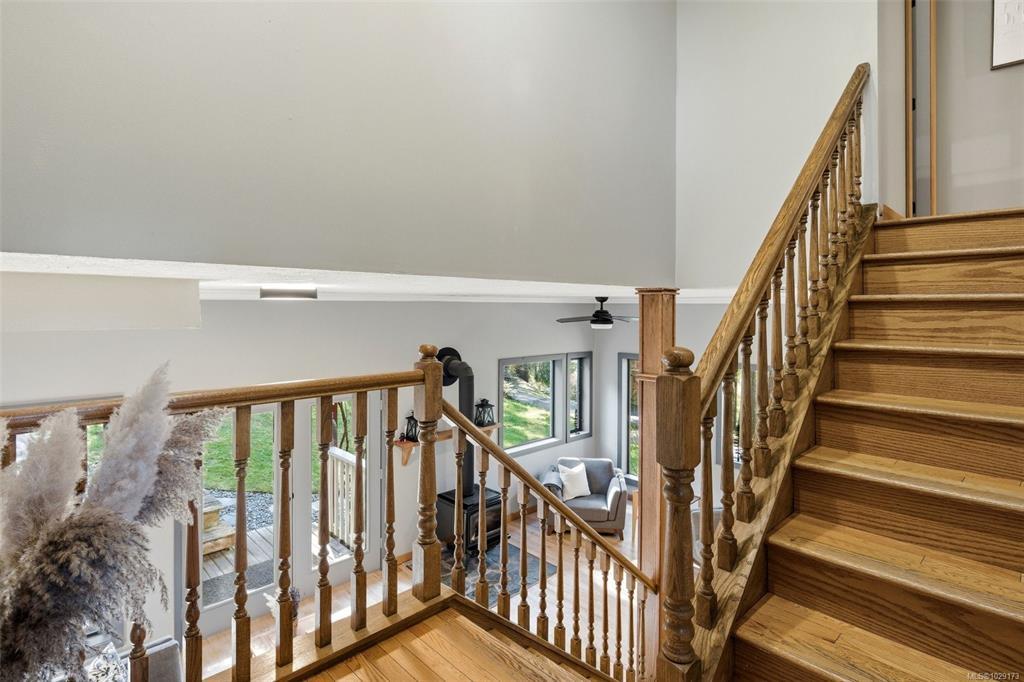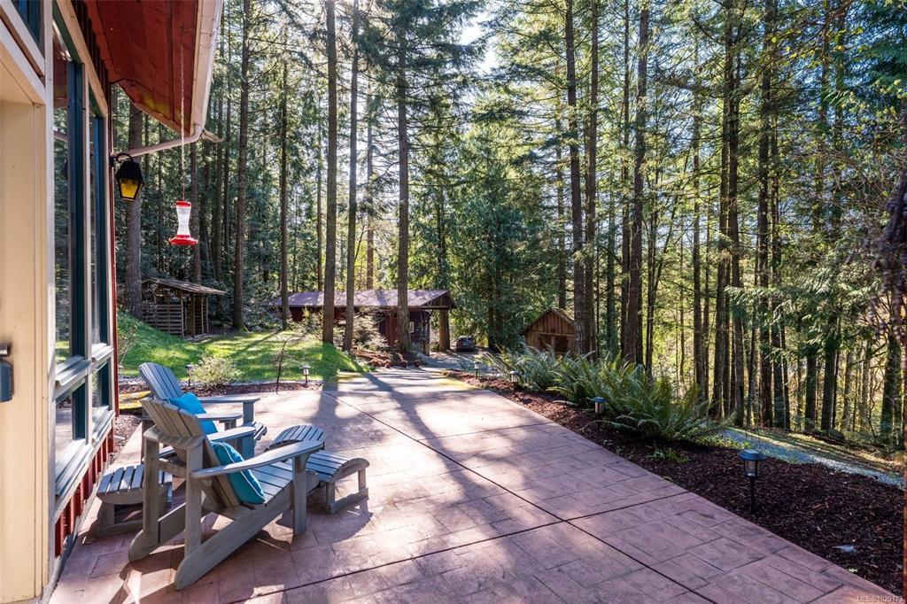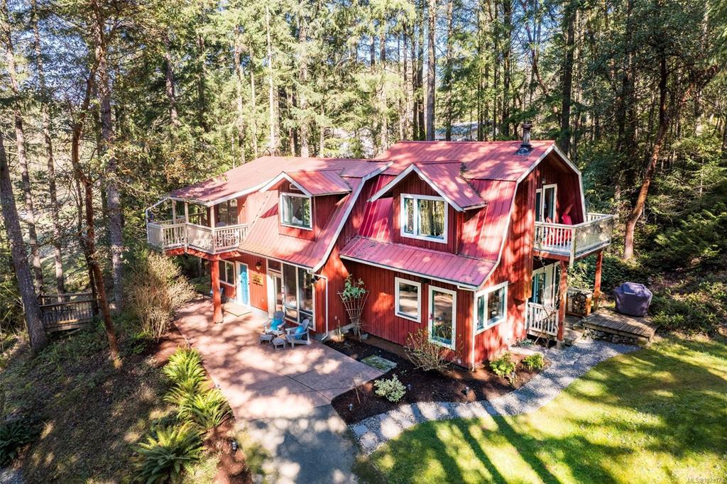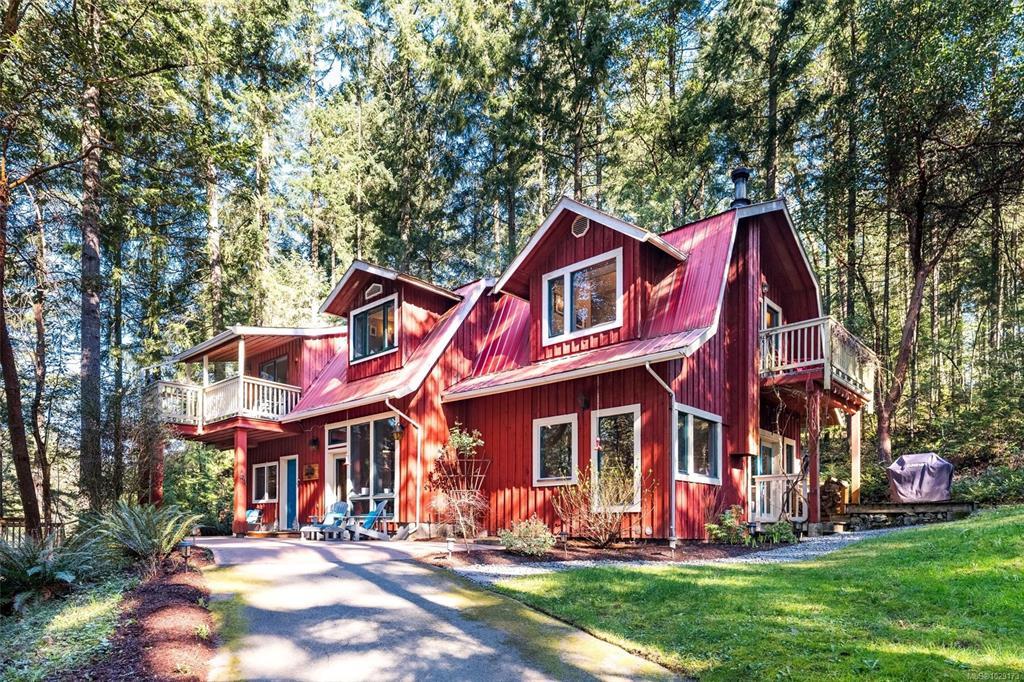 Open House Saturday 1:30–3:00. Welcome to Little Orchard House in Cobble Hill, set on a gentle hillside overlooking a private forest bathed in sunlight. This 2-bed + den home features oak flooring, a wood-burning stove, and a spacious country kitchen. Upstairs offers a den with custom walnut millwork and a primary suite with private balcony and ensuite with deep soaker tub. The lower-level mudroom provides flexible space and potential for a 3rd bedroom. Every window throughout frames peaceful natural views. The 3.29-acre fully fenced property includes an orchard and additional road access at the back of the property. The lower meadow with seasonal pond and fire pit was previously a horse paddock. The 48'x23' over-heightshop is insulated, heated, and includes an overhead I-beam—ideal for trades or potential additional accommodation. A serviced RV pad adds further flexibility. The property suits animals and a rural lifestyle. Minutes to wineries, Duncan, Cowichan Bay, and Shawnigan Lake.