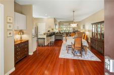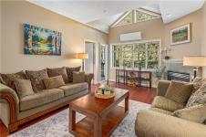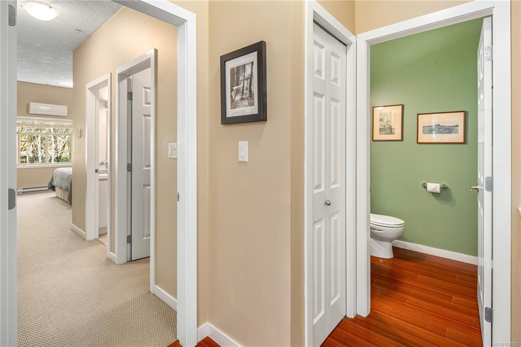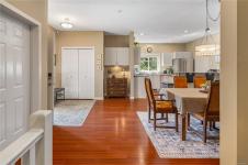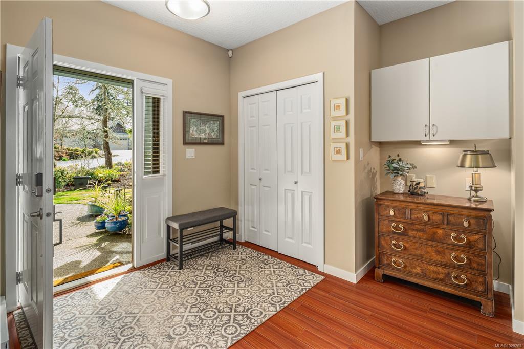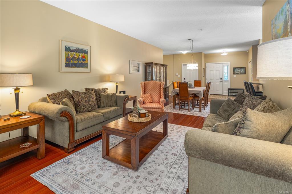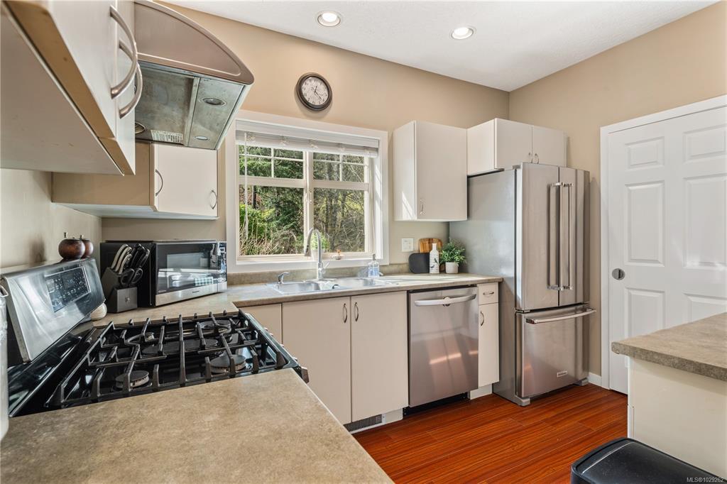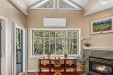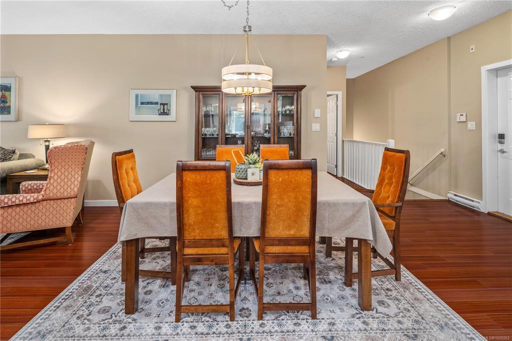 Bright, spacious and open, this fantastic end-unit townhouse, in one of Bear Mountain’s most desirable neighbourhoods, is just moments from the golf course and resort. Just under 2,500 sq ft, this open concept plan features living room with vaulted ceilings, gas fireplace and deck that overlooks the private backyard. Kitchen with newer stainless appliances, gas range, peninsula/breakfast bar, walk in pantry plus formal dining area. Large main floor primary suite with 4 pc bath and walk-in closet plus 2nd bdrm/home office. Down you’ll find a games/family rm, exercise area, and 2 additional bdrms (4th has no closet) perfect for teens. Walk-out access to patio and private yard to enjoy summer afternoons. Bonus heat pump offers year round comfort. Double garage provides parking and room for storage. 2 pets permitted. This is a quiet, well kept strata, close to walking trails, schools, and amenities.