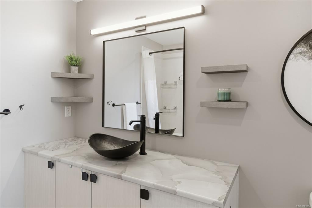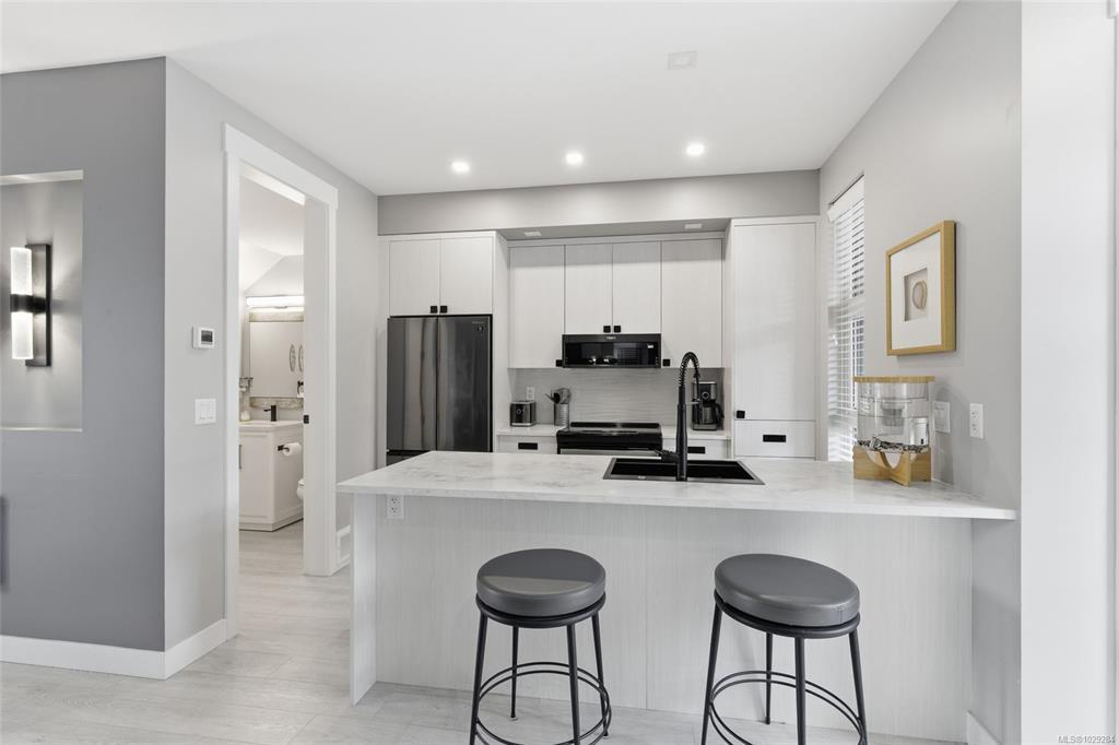 Ocean view resort property in Parksville at Sunrise Ridge—ideal for investors or those seeking a lock-and-leave Vancouver Island retreat. This fully furnished 2 bed, 3 bath townhouse-style duplex offers 1,214 sq ft with ocean views from the main living area, patio, and primary bedroom. Each bedroom features its own ensuite, making it ideal for short-term rental use or guest flexibility. The open-concept main level includes quartz countertops, breakfast bar, built-in dining storage, electric fireplace, powder room, and in-suite laundry. Step onto the 250 sq ft partially covered patio—perfect for relaxing and grilling after a day at the beach, just steps away. Short-term rentals allowed with option to self-manage or join the rental pool. No GST. Resort amenities include pool, hot tub, fitness centre, and outdoor fire features—making this a strong vacation rental investment in Parksville, BC.