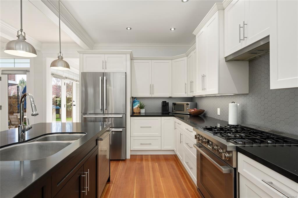 Beautiful Qualicum Beach home on Memorial Ave! Meticulously designed & updated 5 BD, 4BA home offers main level living with timeless style. The bight open-concept layout features a stunning kitchen with custom cabinetry, quartz counters & stainless appliances, flowing into a spacious living and dining area with large windows and a cozy fireplace. The Primary BD is a peaceful retreat w/ a walk-in & elegant 5-PC ensuite. There is ample storage with the massive garage & a crawl. Step outside to an inviting, landscaped, low-maintenance yard - or enjoy your morning coffee on the front porch. 3 Additional BD & Den & 5-PC BA up provide flexibility for guests or a home office. Tucked above the garage is a private 1 BD 1 BA legal suite w/ a great tenant.