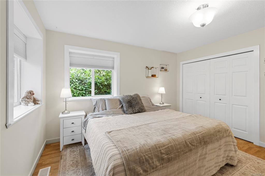 Enjoy privacy and year-round comfort in this single level home at the end of a quiet, family-friendly cul-de-sac! The orientation of the home provides incredible southern exposure lighting through the main living spaces and kitchen, while keeping the three bedrooms private from the road. A large backyard, easily accessible from the front or back porch offers sprawling space with has a pear and cherry trees. A huge primary bedroom allows for a combination of sleeping and lounge space for peace and quiet away from the rest of the home. Exceptionally located, this home flanks Fairview Elementary school to extend the outdoor play space. Data and measurements approx.; verify if important.