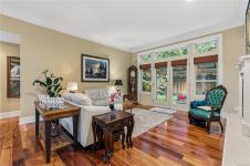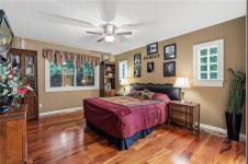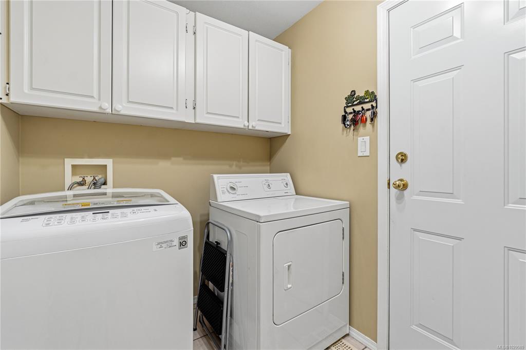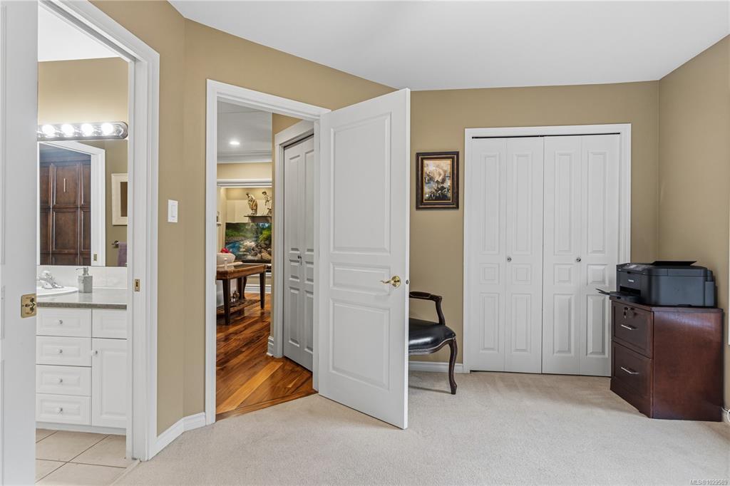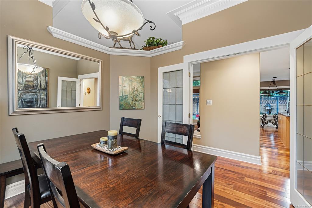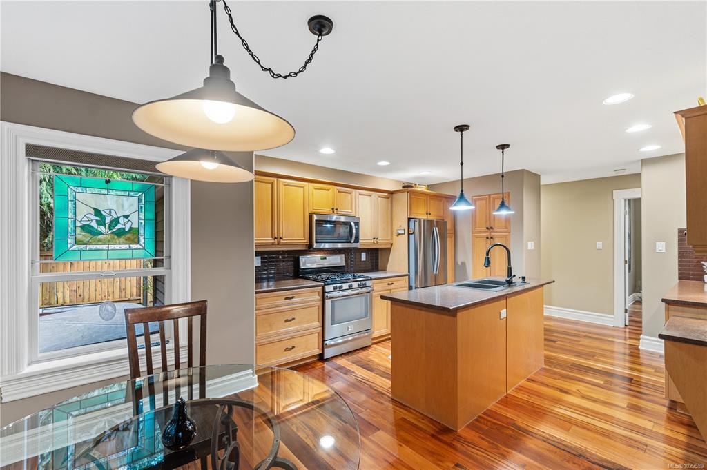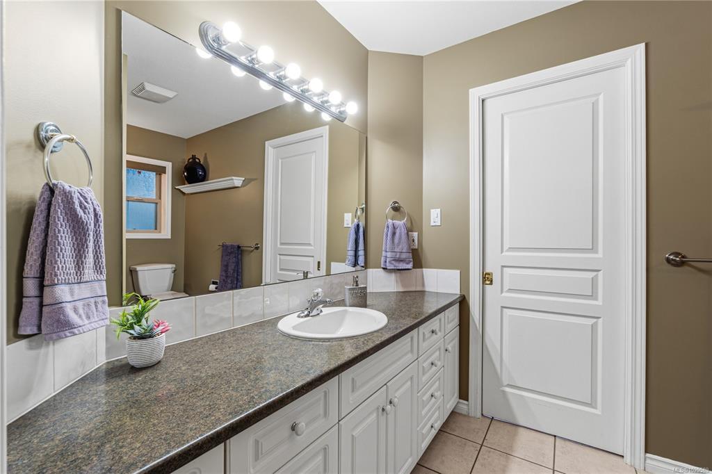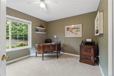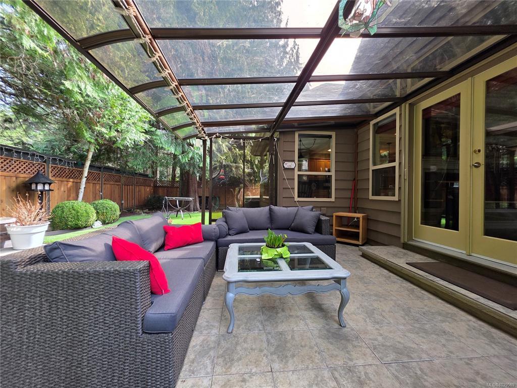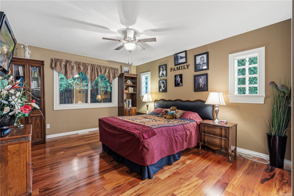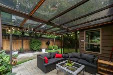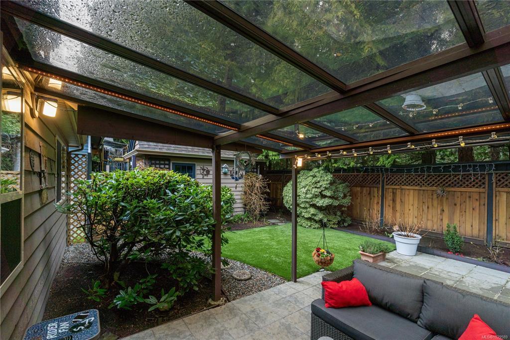 This 1750 sq. ft. rancher is tucked away in a quiet cul-de-sac in the lovely Evergreens subdivision. The bright kitchen features an eating area, island, pantry, under-cabinet lighting, hardwood flooring, glass backsplash, gas stovetop, Stainless steel appliances, plus decorative cabinet glass. The park-like backyard backs onto green space for added privacy. Inside, there’s a separate dining room with French doors, a great room with a gas fireplace, 10 ft. ceilings with detailed molding, and dual doors to a private glass covered patio. The home offers 2 bedrooms with cheater access to their own bath, There's also a guest bath and a spacious primary en-suite with tile flooring, soaker tub, large separate shower, and his-and-hers walk-in closets. The home features newer custom window coverings, and a newer hot water tank. The well-kept yard has in-ground sprinklers, concrete curbing for easy maintenance, RV parking, and a 14 x 6 detached shed. This home is truly move-in ready.