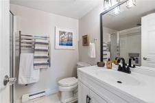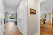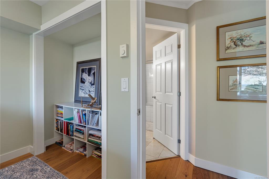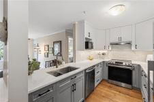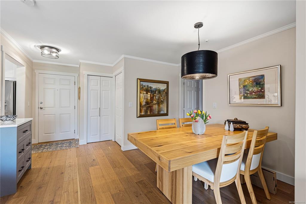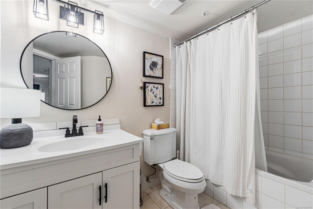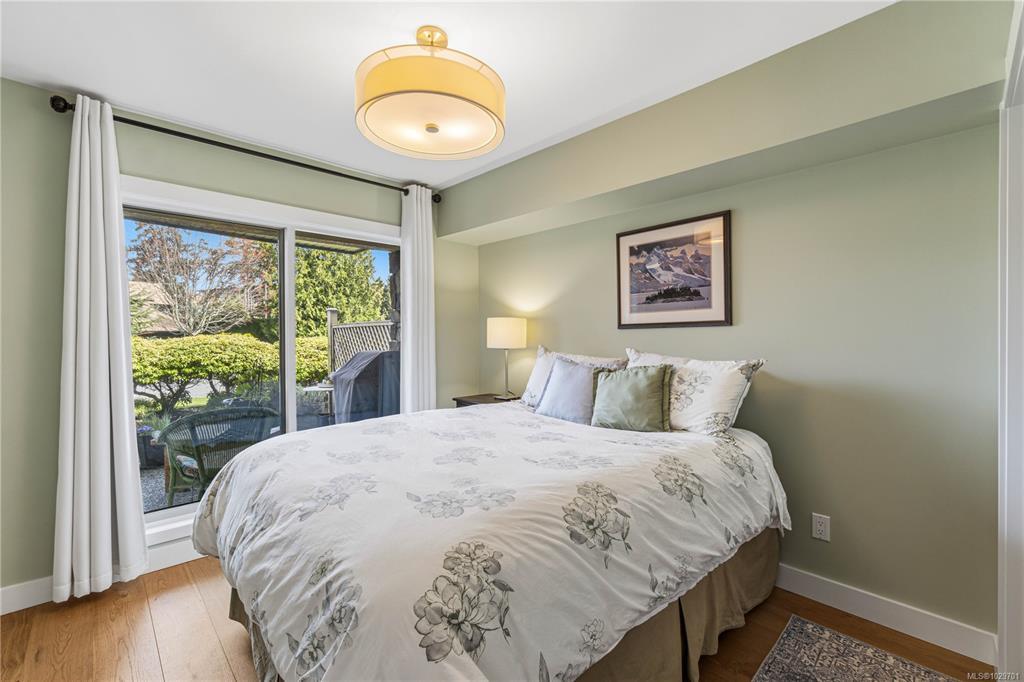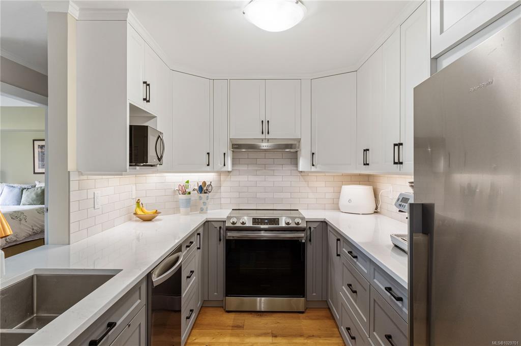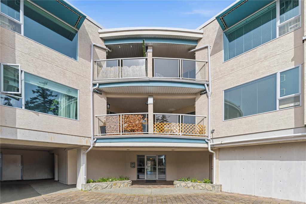 Bright, modern, and move-in ready ground-floor condo in desirable Rocky Point! This beautiful 2 bed, 2 bath home features bedrooms on opposite sides for privacy. Updated kitchen with newer Fisher & Paykel fridge and new stove/oven, plus new flooring, light fixtures, and gas fireplace surround. Large windows bring in abundant natural light throughout the home. Enjoy a private patio with hedging and flowers—perfect for relaxing. Spacious primary bedroom offers two double closets and an ensuite, while the second bedroom or den includes built-in shelving and sliding doors to the patio. In-unit laundry with storage. Quiet, well-maintained building with a healthy strata. No age restrictions, most rentals allowed, some pets permitted (see bylaws). Covered parking, extra spot for fee. Bike room, utility room and storage locker near the unit. Walk to several parks, incl. Neck Point, 2 schools, and the ocean—a perfect blend of low-maintenance living and coastal lifestyle. A must see - book NOW!