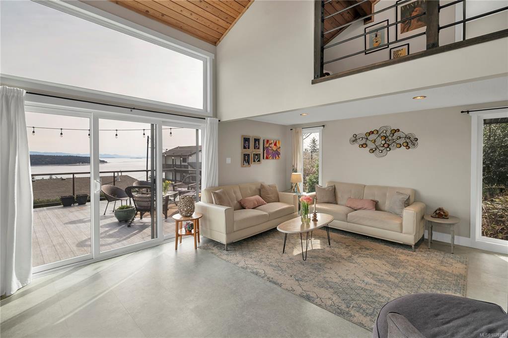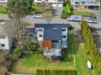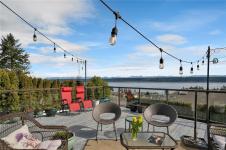 Panoramic ocean views set the stage for this beautifully updated West Coast Contemporary family home, complete with a brand-new, spacious two-tiered deck. Unique multi-level layout offers both togetherness and privacy, featuring 4 bedrooms thoughtfully spread throughout the home, complete with a den. Extensive 2021 updates provide peace of mind; new siding, windows, doors, sundecks, and a new metal roof, along w/ refreshed flooring, drywall, paint, and fixtures inside. Upper level hosts a bright and airy primary retreat w/ stunning ocean views, private balcony, and convenient en-suite, alongside two additional bedrooms and a full bathroom. 4th bedroom on the lower level offers flexibility for guests, teens, or a home office. The partially finished lower floor is full of potential—create the perfect rec room, play space, gym, or studio, w/ French doors opening to a covered patio and backyard where more ocean views are enjoyed. Schools, recreation, shopping, are all within a few blocks!