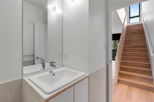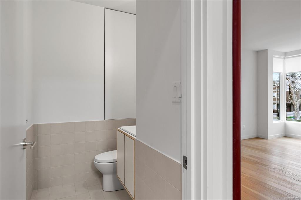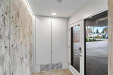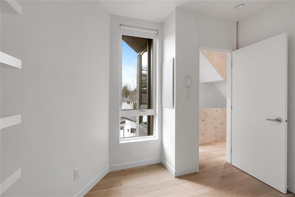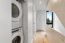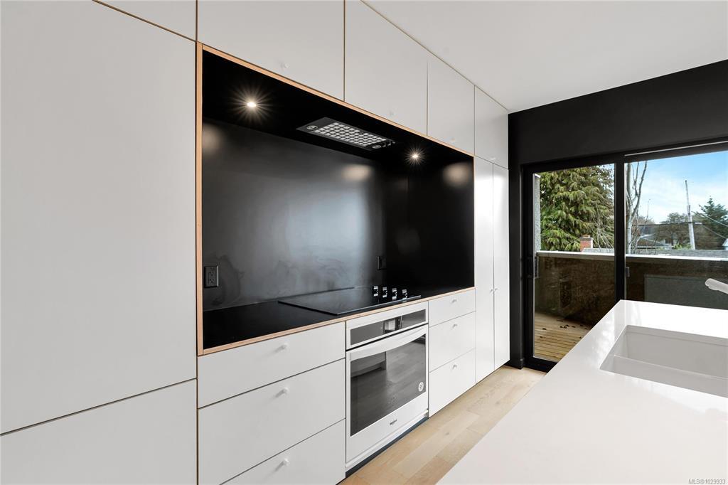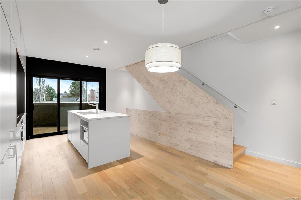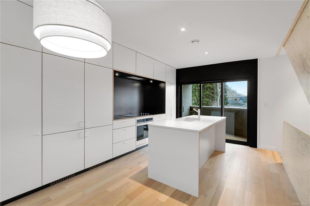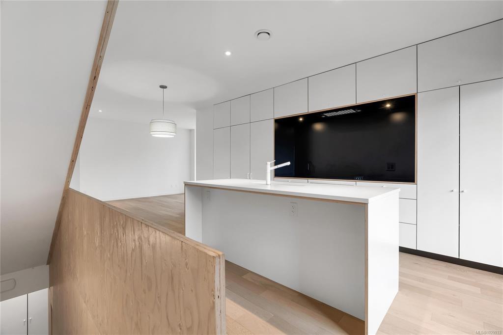 This award-winning Pearl Block townhome offers modern design, quality craftsmanship, and architectural distinction. Designed by D’Arcy Jones Architects and built by Aryze Developments in 2020, this 3-bedroom, 3-bathroom home is part of an exclusive 6-unit boutique complex. Defined by its striking cantilever design, it features exposed steel, glass, and plywood accents, complemented by polished concrete and white oak flooring. The open-concept layout includes a sleek kitchen with a large island, integrated cabinetry, premium built-ins, and a balcony for morning coffee. A highlight is the 400 sq ft private rooftop patio, accessed via a hydraulic glass hatch—perfect for entertaining or relaxing in the hot tub with mountain views. Additional features include a custom bar with wine fridge, extended garage with EV charger, and onsite Modo car share. Located on a tree-lined street near schools, parks, transit, and Hillside Mall.