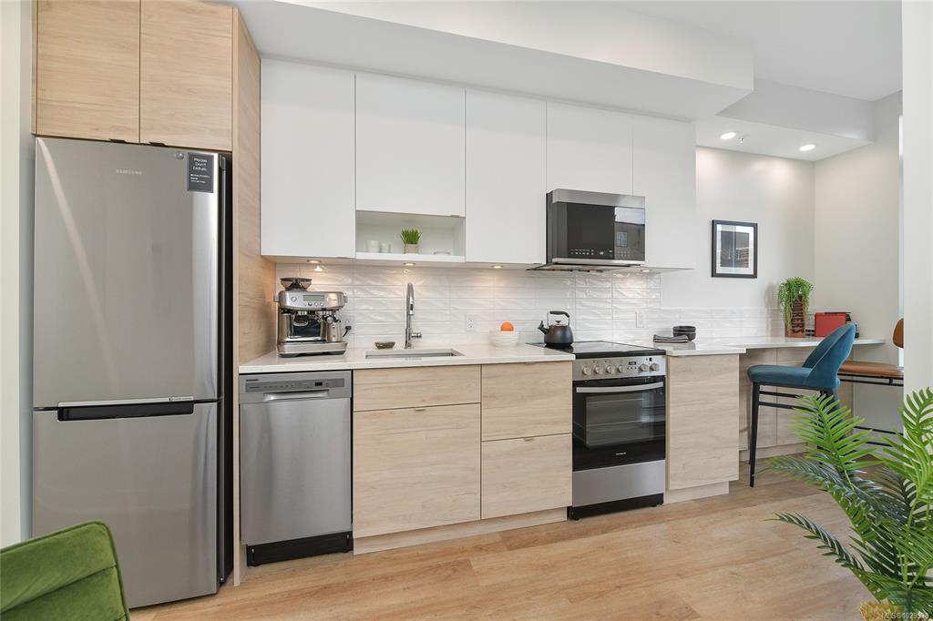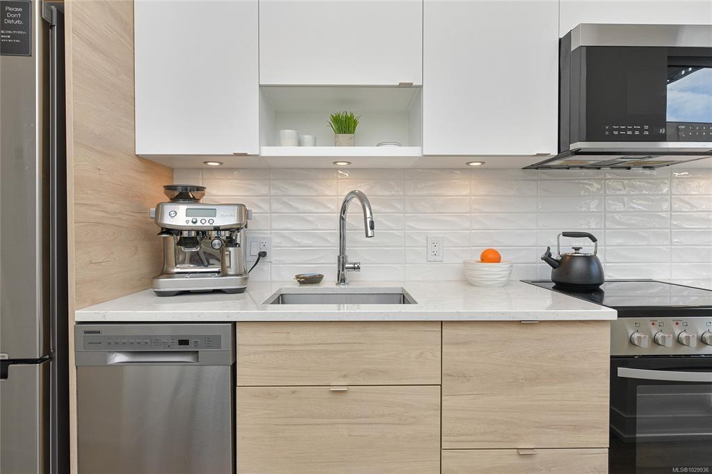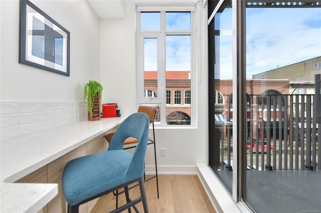 Welcome to THE PEARL Victoria’s New Waterfront residence in Old Town Victoria. 2023. Quality steel and concrete built by awarding winning team of D’Ambrosio Architects, KWI Design & Farmer Construction. An urban oasis offers exceptional quality, modern elegance & city views with brilliantly and functionally designed Junior 1 Bed, 1 Bath, 464sf and 9 ft. ceilings. Amazing natural light with SE exposures, spacious balcony with vibrant street views, exquisite finish details including custom upgraded Murphy Bed, quartz counters including eating bar/work desk, top of line appliances, in-suite laundry, heated tile floor and AC. Secure storage locker along with building amenities including caretaker, gym, bike storage, common room with kitchen facilities and a most welcoming and eleganat lobby. Front & centre on Victoria’s active waterway & walkways, a hidden gem immersed in the rich history known for picturesque streets, shops & dining. A walkscore of 99 with a signature address you deserve!