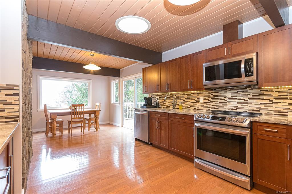 OPEN HOUSE SAT March 28th 12-1:30PM & Sun 10:00-12:00PM. Perched in a stunning private setting with ocean views and gorgeous sunrises, this extensively renovated 4 bed, 4 bath home offers 3,312 sqft of beautifully designed living space. Set on a sloped, forested lot, the property is secluded and peaceful while still delivering all the comfort and function of a modern family home. The main level is warm & inviting, with solid oak hardwood floors, spacious living area, and a wood-burning fireplace. The renovated kitchen features granite counters, ample cabinetry, and stainless steel appliances. The layout offers flexible spaces for growing families, guests, or teens who want a little room to spread out, plus a unique bedroom with a built-in platform bed and secret nook behind the bookcase. There is an attached garage, new roof in 2026, and the large deck is the perfect place to take in the ocean views, enjoy your morning coffee or entertain friends in an unforgettable West Coast setting.