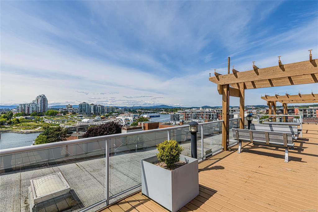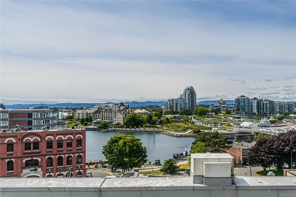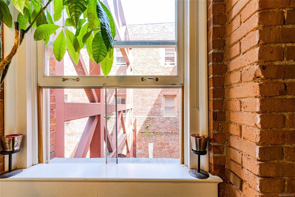 Welcome to The Leiser, a landmark brick building in the heart of Downtown Victoria. Originally built in 1896, this iconic structure was transformed in 2008, reimagined into stylish loft-style condos that beautifully fuse architectural character with contemporary finishes. The suite boasts nearly 14-foot ceilings adorned with a grand original window, framed in lovingly restored wood casings and meticulously restored brickwork. Inside, discover a chicly designed living space, in-suite laundry, and a modern kitchen with quartz countertops. Building amenities include bike storage, a separate storage locker, and a full rooftop patio offering breathtaking 360-degree ocean and city views. Just steps away from the stunning waterfront walkway, vibrant Oldtown, shops, restaurants, and attractions. This property invites you to embrace the walking and biking lifestyle while owning a piece of the city's rich history. Charming, convenient, and pets are welcome.