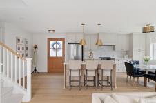 Step inside this beautifully renovated home where thoughtful design, quality craftsmanship, & modern comfort come together. Thoughtfully updated, the home offers timeless finishes, abundant natural light, & an inviting feel. Upgrades include added structural support to accommodate the second storey, insulation, electrical, plumbing, heat pump, roof, siding, & windows. Inside, engineered hardwood floors, custom trim, & a beautifully designed kitchen features quartz countertops, a built-in range hood, & under-cabinet lighting. Bathrooms are beautifully appointed, including a stunning upper-level ensuite with in-floor heating, freestanding tub, marble & porcelain tiled shower, & custom millwork.