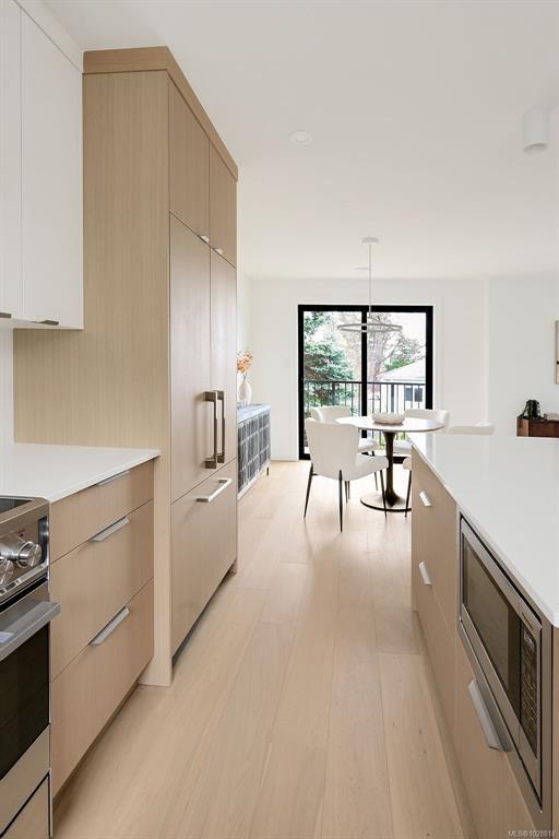 The three-level residence offers 3 bedrooms, 3 bathrooms plus a den,w 3 bedrooms on the upper level including a primary suite w spa-inspired ensuite,zero-edge shower,& custom walk-in closet.The open main floor features a custom kitchen w South Shore millwork & panel-ready Fisher Paykel appliances,flowing to private outdoor patios with gas-ideal for everyday living and entertaining.