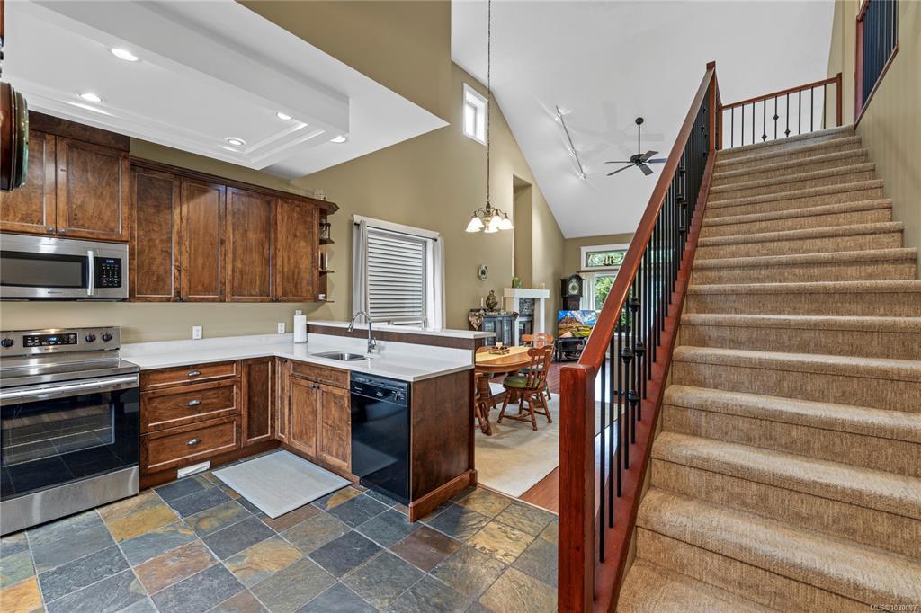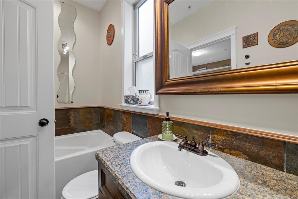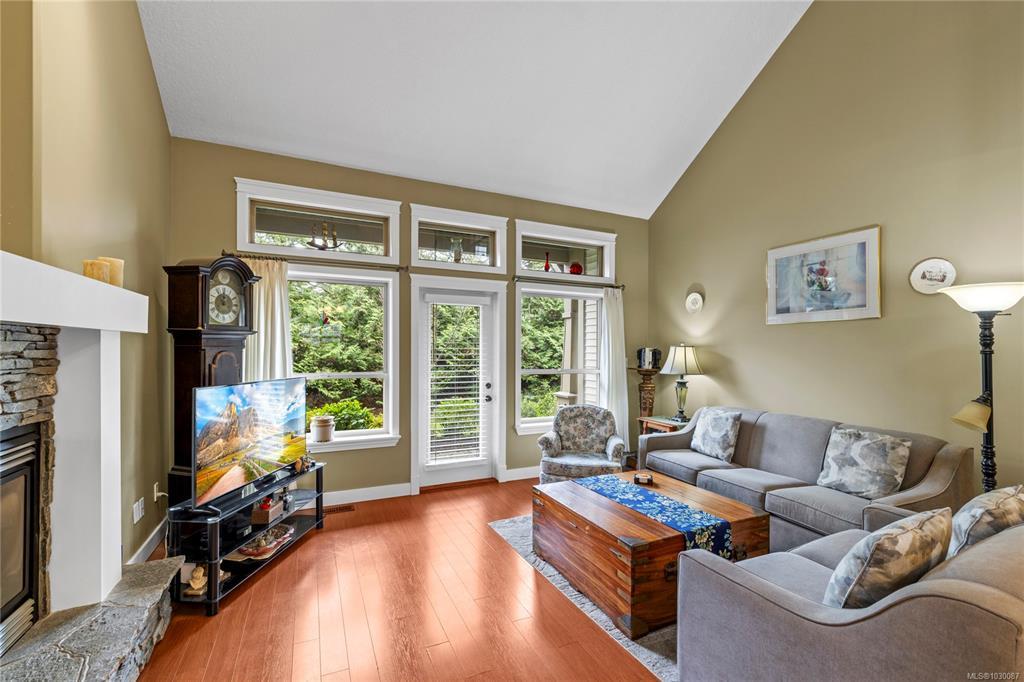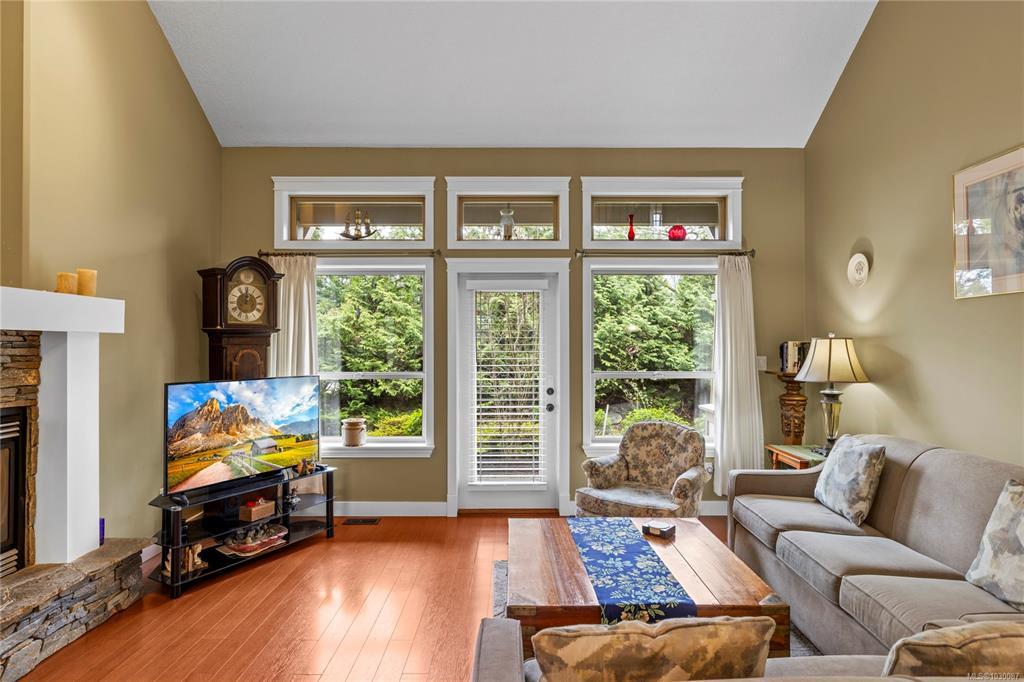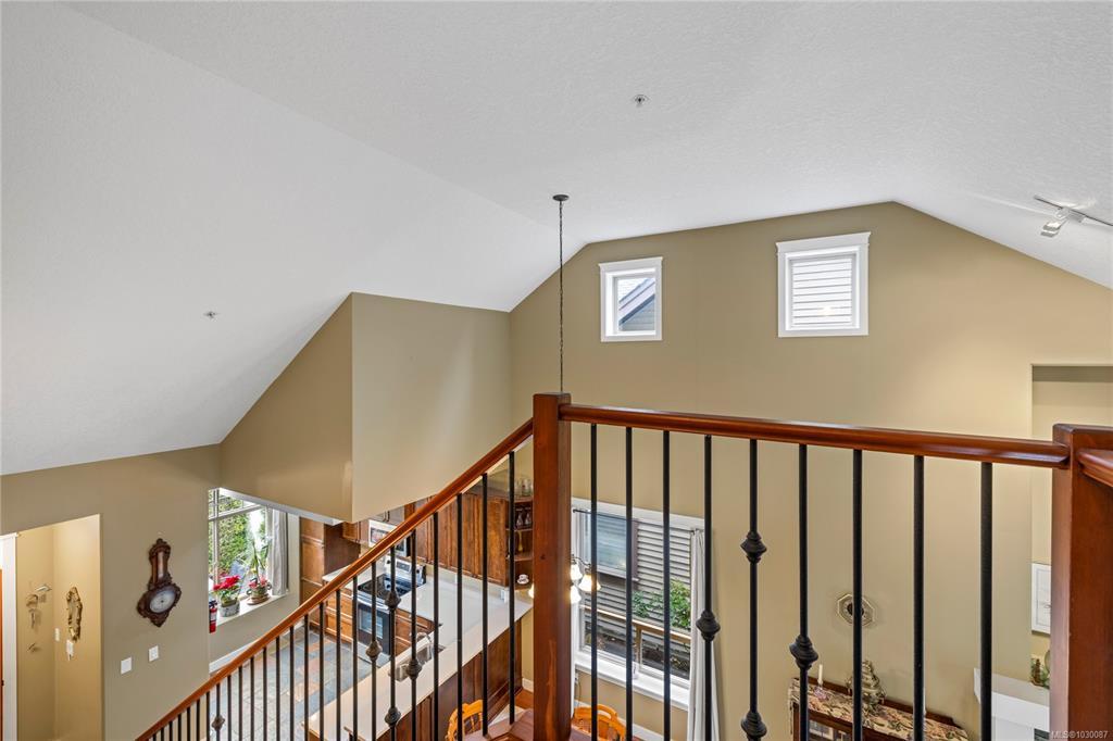 This stunning townhouse is situated in a small community of fifteen detached strata homes near Brannen Lake and North Nanaimo amenities. Enter into the main level with an open concept floor plan, 18’ vaulted ceilings and a gas fireplace. The kitchen features four appliances and an eating bar. Located on the main level for convenience, the primary bedroom offers a walk-in closet and four piece ensuite. The covered rear patio overlooks the private yard area and the front patio provides additional outdoor living space. Completing the main level are a two piece bathroom, laundry and double garage. The second level has a four piece bathroom and two spacious bedrooms, each with a walk-in closet. The complex has a clubhouse and allows dogs and cats with no size restriction. For more information see the 3D Tour, video, and floor plan. All data and measurements are approximate and must be verified if fundamental.
