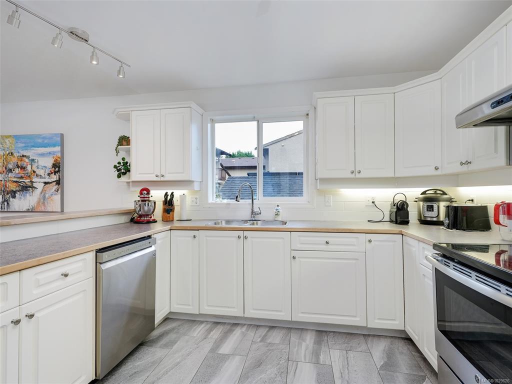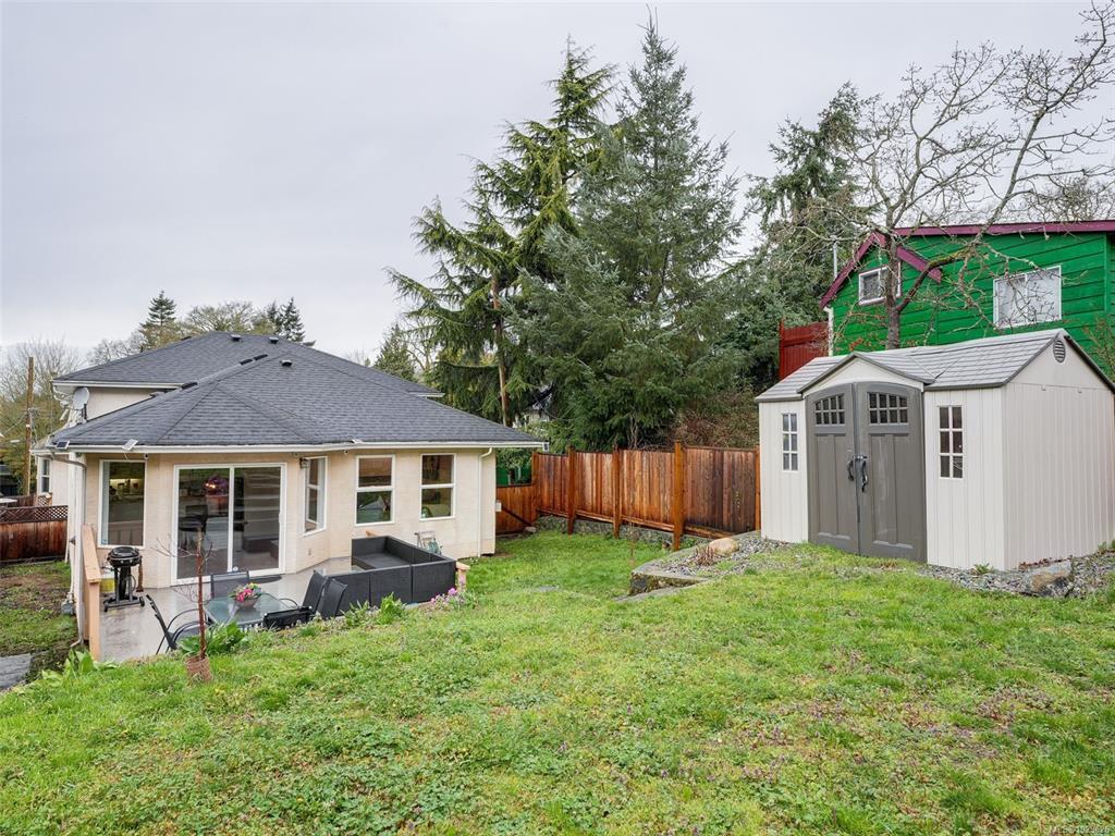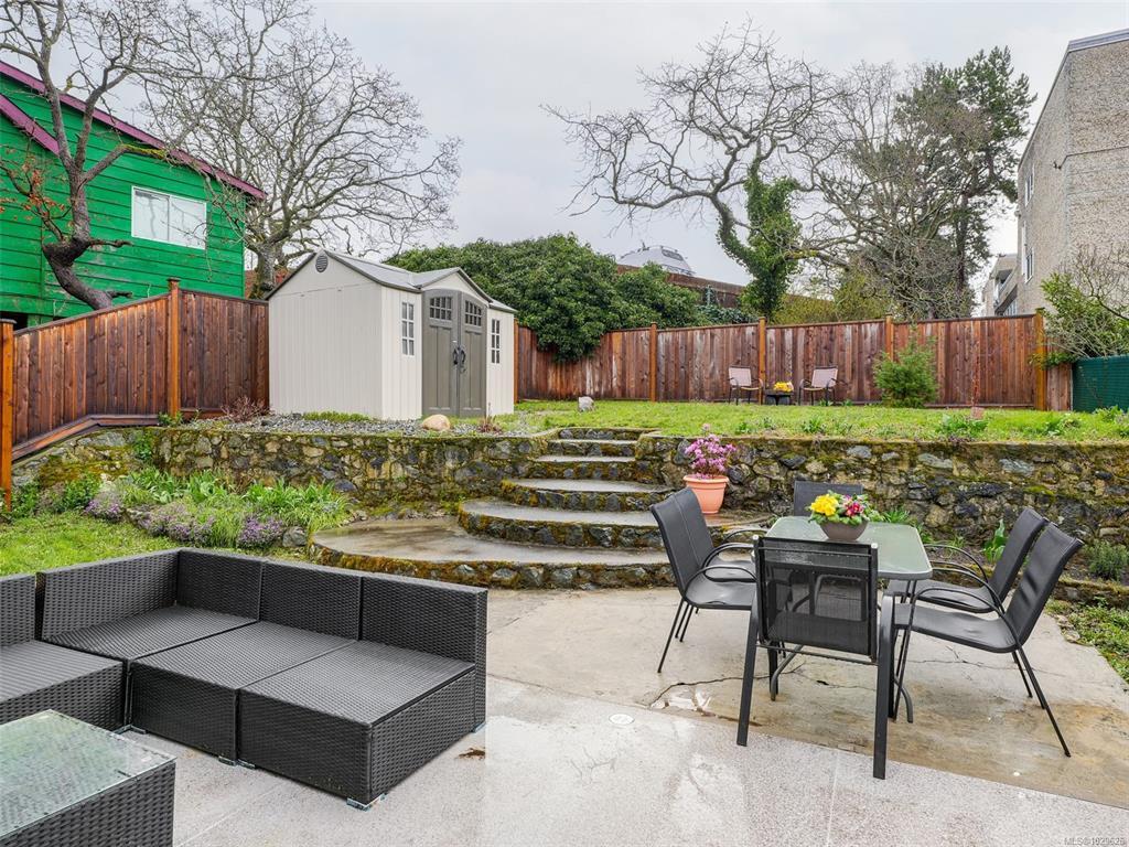 RARE DETACHED DUPLEX IN OAKLANDS! Feels like a single-family home with no shared walls—this back unit offers excellent privacy, a spacious yard, and sunny patio perfect for BBQs and entertaining. Bright main floor with open living/dining, large kitchen, laundry, and cozy gas fireplace that efficiently heats the space. Upper level features 3 generous bedrooms and 2 baths, ideal for families. The lower level offers a self-contained 2-bedroom in-law suite with its own kitchen—perfect for extended family or as a strong mortgage helper. Airbnb potential (buyer to verify City of Victoria bylaws). Huge crawl space provides exceptional storage. Updates include tile in both kitchens, appliances, tap fixtures, hot water tank, lighting, and a fully fenced yard. Prime Oaklands location steps to schools, parks, Cedar Hill Recreation Centre, Hillside Mall, and major transit routes. A fantastic opportunity!