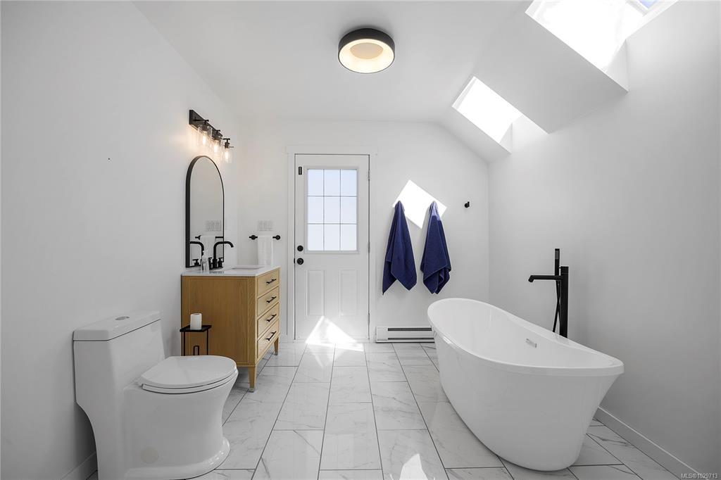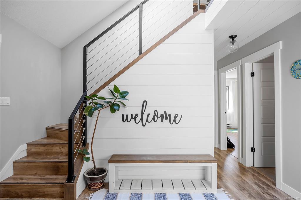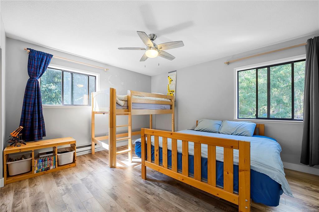 Charming 4 bedroom, 3 bath home on an acre of land in the serene Cedar By the Sea, perfect for families. Recently renovated, the interior boasts vaulted ceilings, modern flooring, and big windows letting in tons of natural light. The spacious kitchen w/ updated appliances and quartz countertops, flows into the living room with a wood fire, creating an inviting, and cozy living space. A bedrm and office (or 2 beds) and full bath complete the main floor. Upstairs are 2 bedrms, 2 baths. The primary bedrm features a walk-in closet, spa-like ensuite, and a large sunny deck. Downstairs, there's a huge rec room, and plenty of storage. A heat pump and newly installed solar panels that generate BC Hydro credit in the summer, add comfort and cost savings. Situated on a mature, fenced lot with fruit trees, a greenhouse, and kids play ground, this is the perfect family homestead. Within walking distance of the Cable Bay trail, beach, and public boat launch. Minutes away from the Duke Point ferry.