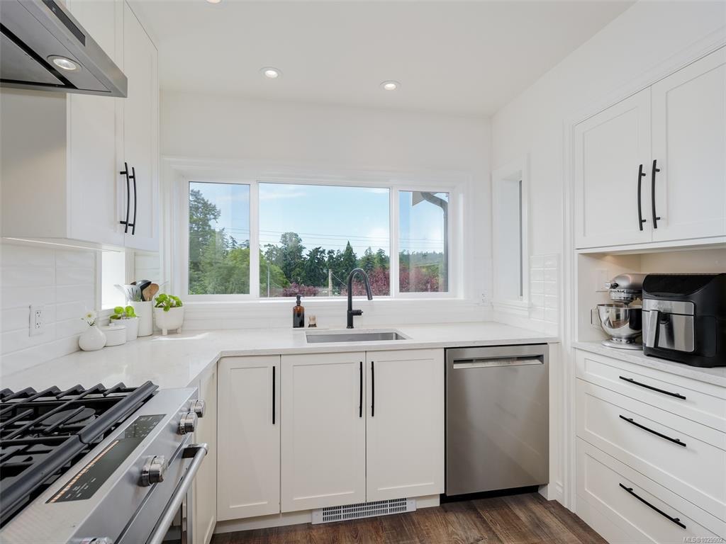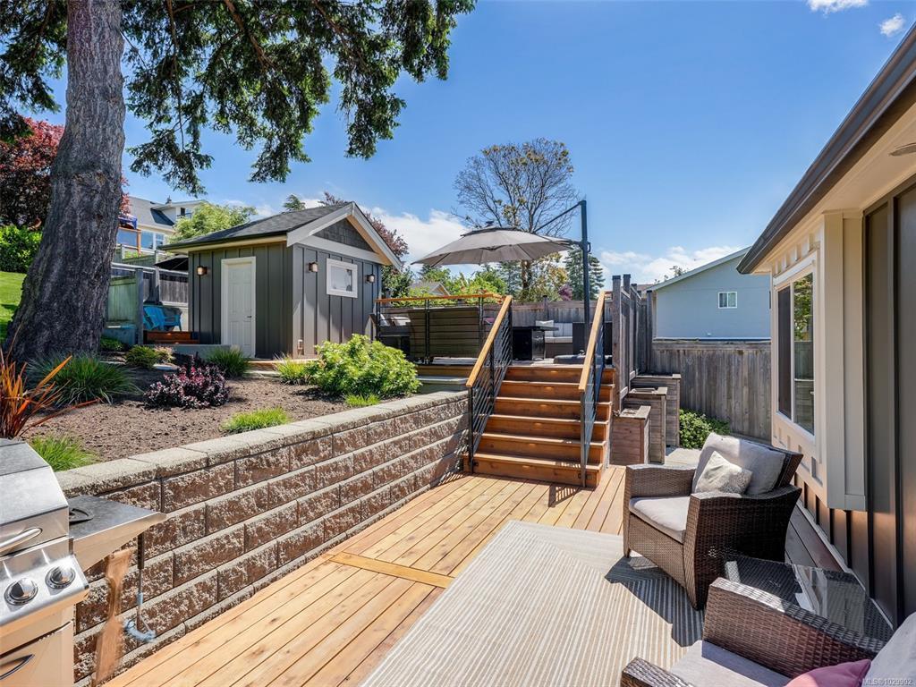 Stunning WATERVIEW home with the Gorge waterfront park directly across the street. Prepare to be impressed! Must see; Virtually every inch of this this lovely home and property has been professionally updated from the roof down to the perimeter drains. Bathed in natural light this home features a beautiful water view kitchen with quartz counters and stainless appliances, impressive use of built ins with custom millwork throughout, on demand hot water, and a modern Valor natural gas fireplace. 3 bedrooms in the main house including primary with 3 piece en-suite. BONUS: one bedroom SUITE with a separate entrance! Beautiful back yard retreat with multiple patios, entertaining areas and a 10x10 storage shed with power (future home office?). Truly a special location where you can launch your kayak across the street!