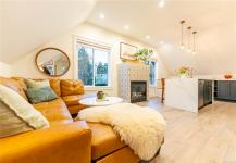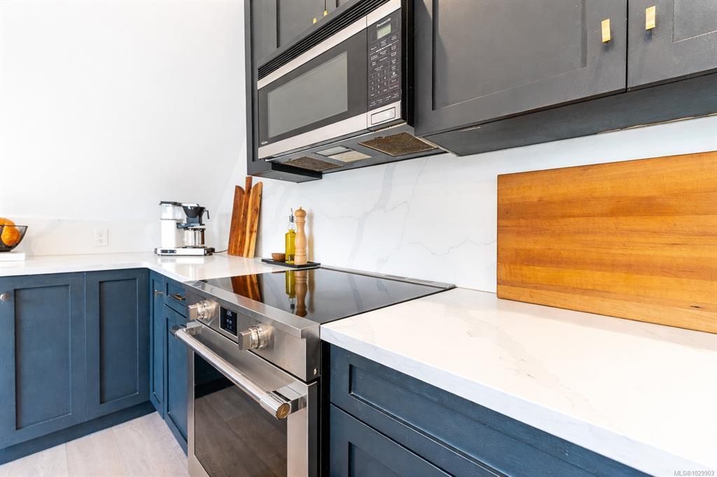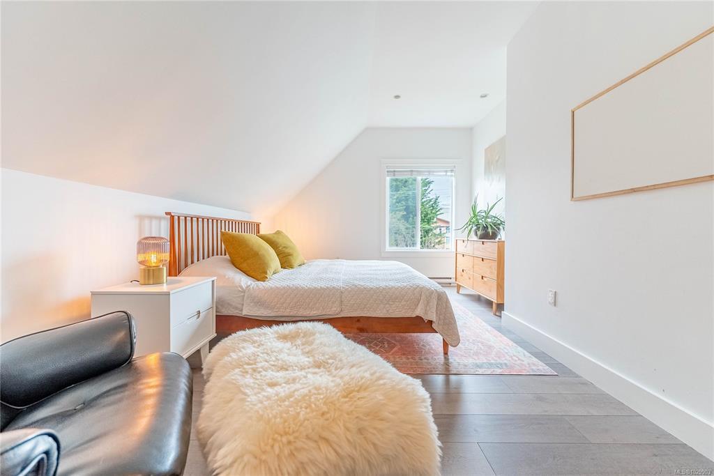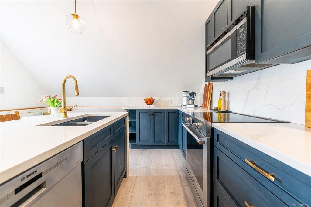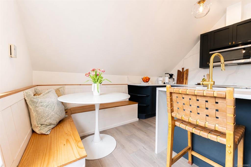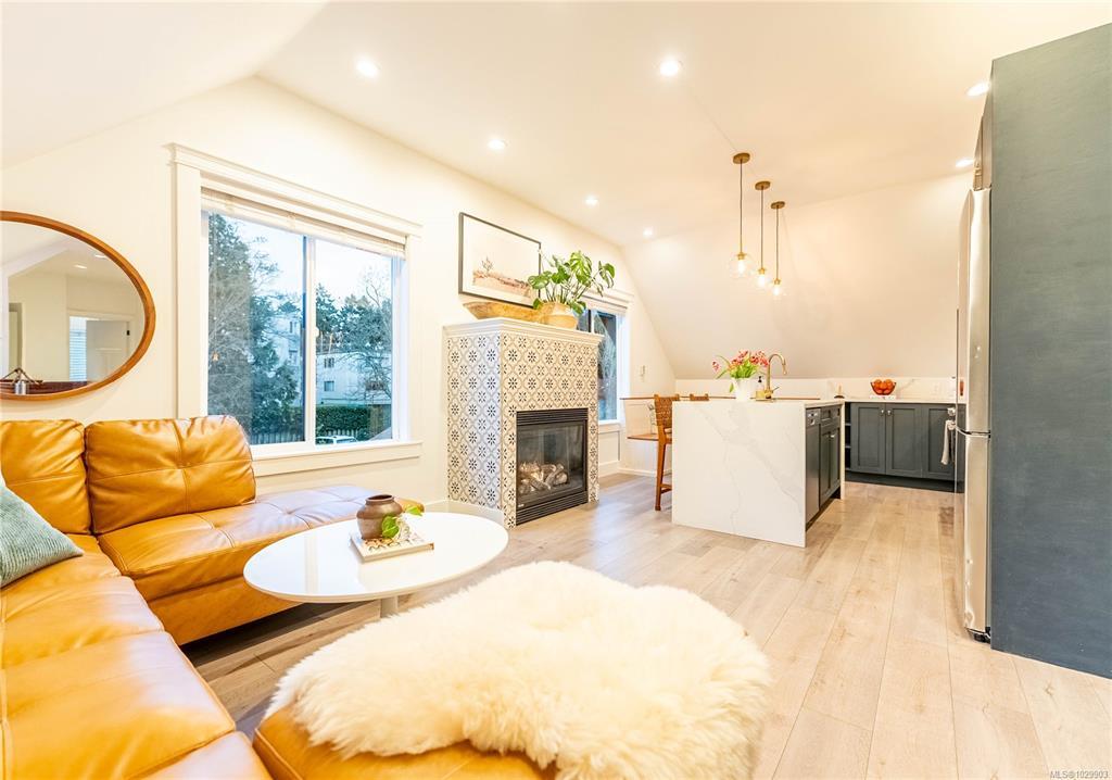 A rare top-floor character conversion in the heart of Cook Street Village. This renovated 2 bed, 2 bath home blends timeless charm with modern design, offering a bright and airy 981 sq.ft. interior plus an exceptional private outdoor space. Inside an updated open-concept living area featuring a stylish kitchen with quartz countertops, stainless steel appliances, and a generous eat-in island, perfect for cooking and entertaining. The living room is anchored by a custom-tiled gas fireplace, creating a warm and inviting atmosphere, while the adjacent dining area is ideal for everyday living. The Primary retreat offers a walk-through closet, spa-inspired ensuite, and flexible space. A second well-sized bedroom and full bathroom provide excellent versatility. Step outside to your private, fenced yard, an urban oasis with almost 500 sq.ft. of outdoor living space. Located just steps from Cook Street Village, Dallas Road, Beacon Hill Park, cafes, restaurants, and shops.