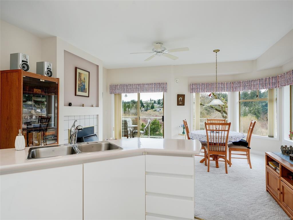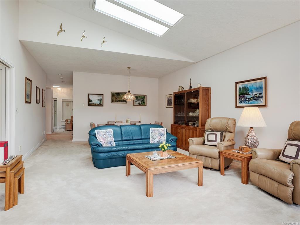 Introducing this expansive 1860 ft one level end unit in beautiful Foxborough Hills. Upon entry to this bright large sun filled townhome will will discover a rare offering on one level that is hard to find in any market. This Townhome offers a huge primary bedroom with lots of windows, an extra large walk in closet and 5 piece ensuite bath. The second bedroom offered is well an above average size. Moving through the unit you will discover an abundant sized Living and dining room looking directly out onto Rithet's nature sanctuary through the large picture windows. High vaulted ceilings, skylights and a cozy gas fireplace helps complete these rooms. The adjacent kitchen offers a functional design complimented with many windows, an eating area and large inline family room with another gas fireplace plus a large balcony to enjoy the privacy and exterior scenery of nature this home offers ! A large double car garage and crawl space helps complete this excellent opportunity . Don't delay!