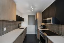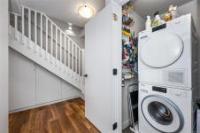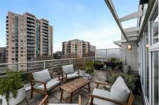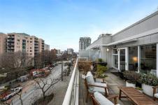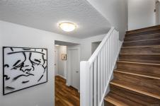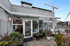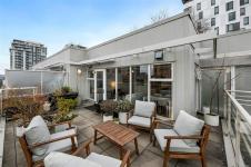 Urban, chic, and meticulously appointed, this two level penthouse condo blends modern style with thoughtful upgrades completed since 2021. The main level features an impressive kitchen with quartz countertops, inductive stove, concealed Asko d/w, BLUM hardware, and sleek finishes, along with a stylish two piece guest bath (check out the wallpaper). The open dining and living area flows seamlessly to a large south facing patio—ideal for entertaining, gardening, or unwinding in the sun. Downstairs, discover two well sized bedrooms, including a serene primary suite with a four piece ensuite boasting Italian porcelain stoneware heated floors and quartz counters. A smartly designed laundry and custom cabinetry zone offers storage that would make NASA proud. Enjoy a covered lower patio for all season BBQing, plus unbeatable proximity to downtown, trails, and year round activities. Pet friendly, 1 secure parking spot, rooftop deck and genuinely friendly neighbours complete the package.