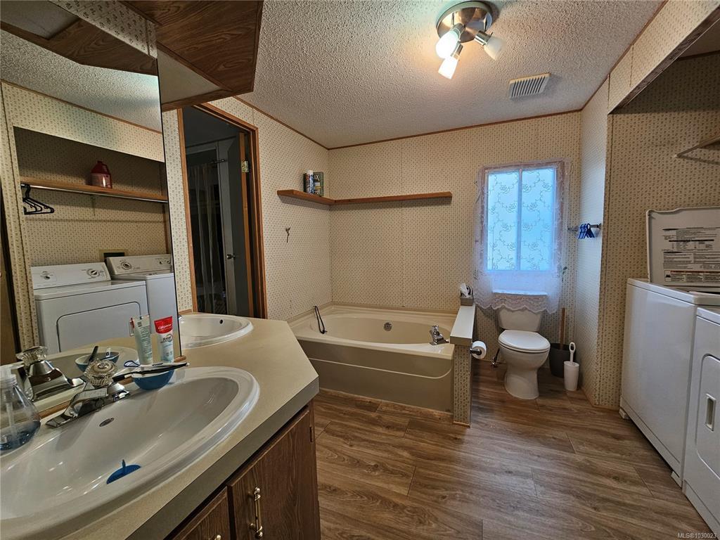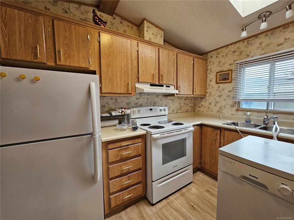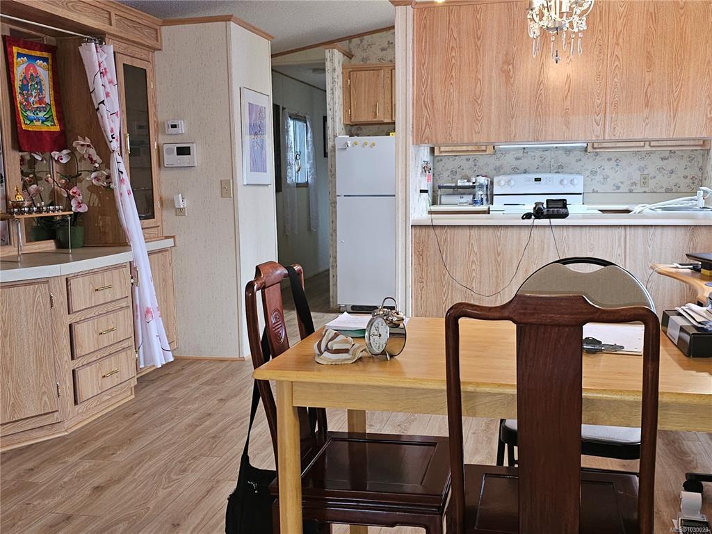 This well-maintained 1990 Dartmouth manufactured home is located in a peaceful, quiet park bordering Gorge Vale Golf Course. Enjoy added peace of mind with long-term stability, as the park owner has secured tenancy through 2050, with a minimum three-year notice period outlined in the lease agreement. The home shows beautifully and offers a bright, spacious living room with a charming bay window, a separate dining area complete with a built-in hutch, and two generously sized bedrooms. The primary bedroom features convenient cheater access to a stunning five-piece bathroom, including a soaker tub, separate shower, and double sinks, along with a washer and dryer. Outside, you’ll find a large covered deck that doubles as parking for up to three vehicles, plus a powered workshop—perfect for hobbyists or those who enjoy hands-on projects.