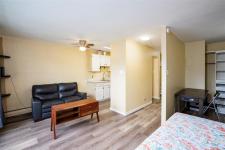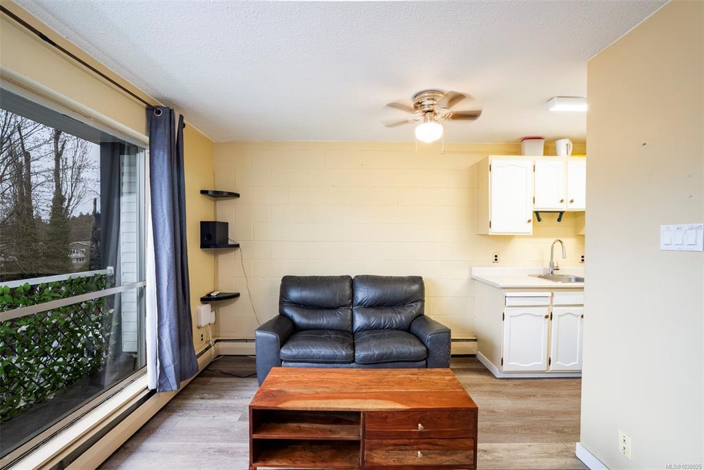 Welcome to this bright and efficiently laid out 412 sqft studio in a central Nanaimo location—ideal for first-time buyers or investors. The location is second to none, with the likes of both Buttertubs Marsh and Bowen Park literally just steps outside your door, and with easy access to restaurants, groceries, pubs, and Vancouver Island University. The smart layout features a defined sleeping area or office nook -perfect for a home office-, open living/dining space, and a functional kitchen. West-facing exposure brings in great natural light with views toward Mount Benson. Updates include laminate flooring, toilet, sinks, counter tops, fridge, stove, and a Murphy bed for added versatility.