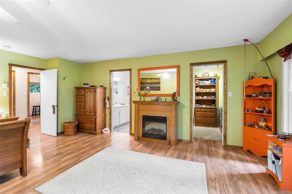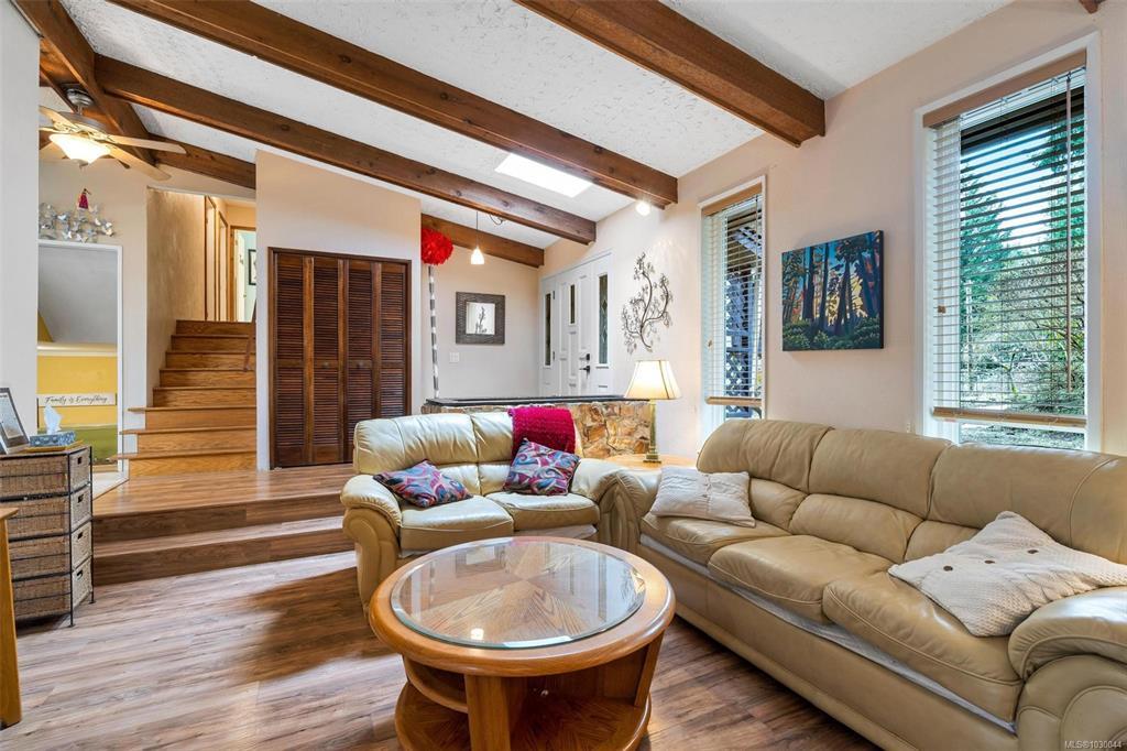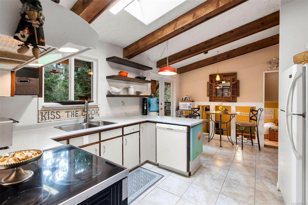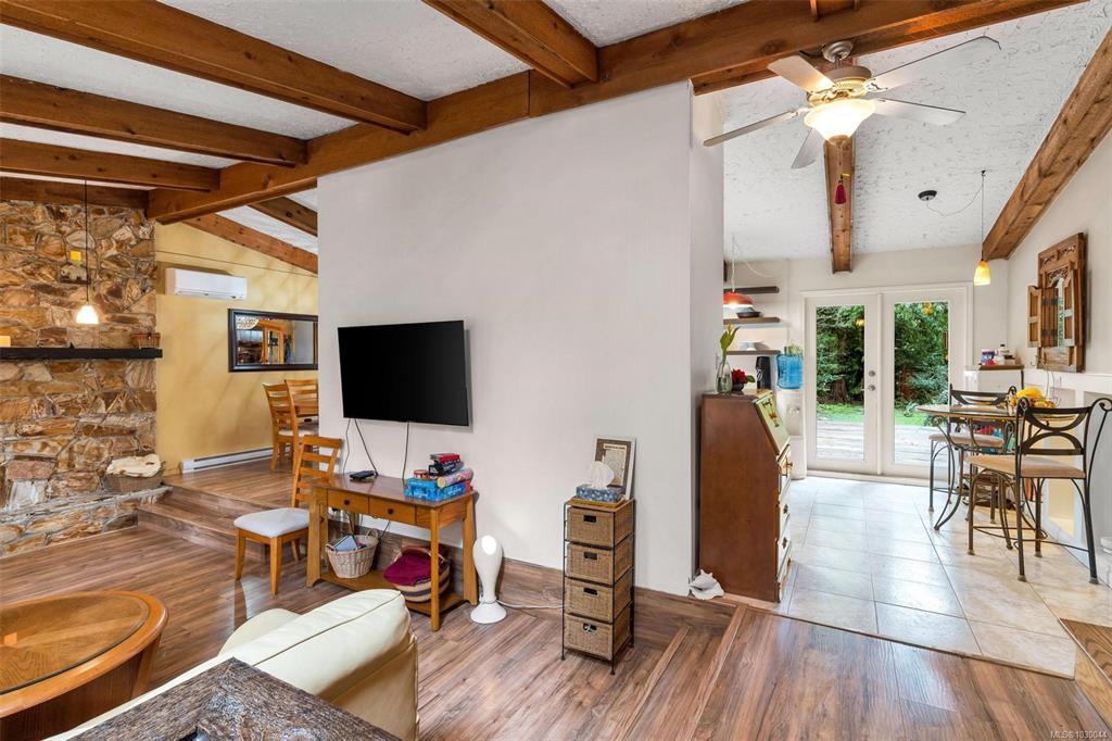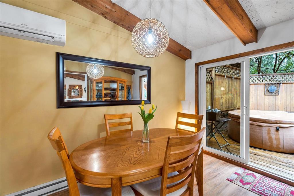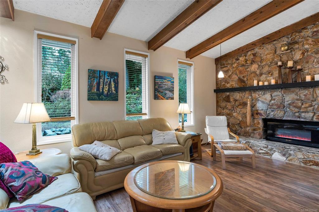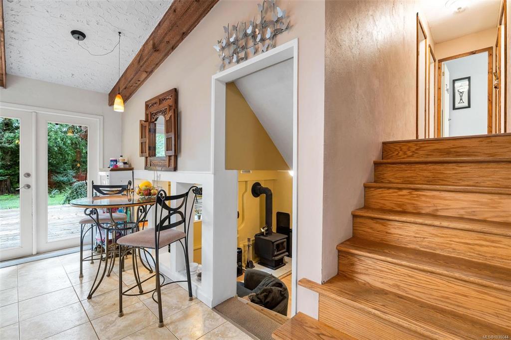 Charming 4 bed/3 bath family home in the Shawnigan Beach Estates on 1/3 of an acre. This West Coast inspired home features a large sunken living room, vaulted skylit ceiling and an electric fireplace. Both the kitchen/eating area and dining room open to a spacious deck. Sliding glass doors to the private back yard, pergola, hot tub and grill patio. Upstairs are 3 bedrooms, bathroom and spacious primary bedroom w/private balcony, huge walk-in closet and ensuite. Downstairs is the family room w/woodstove, bedroom with separate entrance/deck and 2 piece bathroom, laundry room w/storage. Flex space next to the garage could be an office/studio. A private setting with established gardens and mature fruit and nut trees, the side and back are greenbelt-protected. Relax around the fire pit to enjoy this wildlife wonderland! Plenty of parking including room for boat/RV. Amazing neighbourhood near excellent schools, friendly people, hiking trails, Shawnigan Hills Park and minutes from the lake.