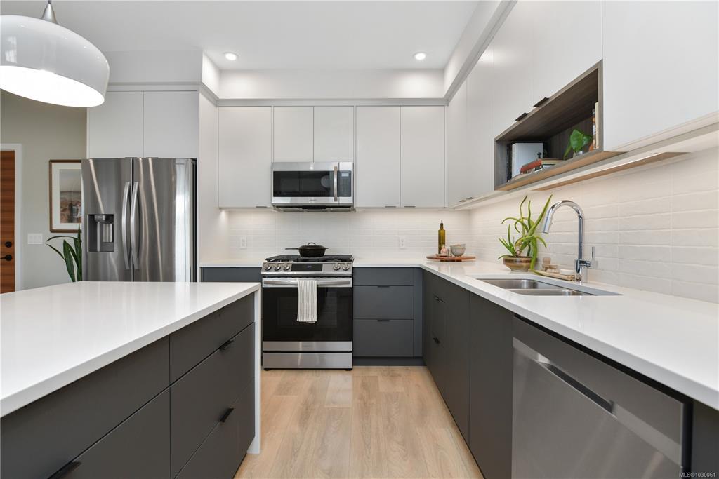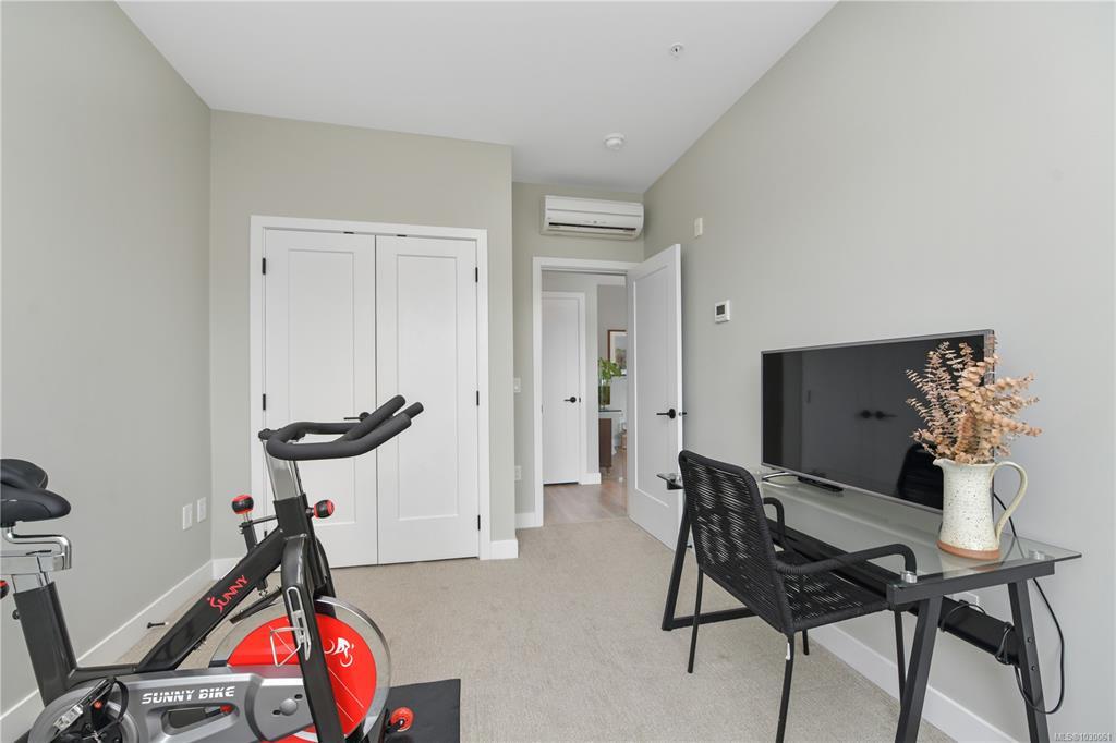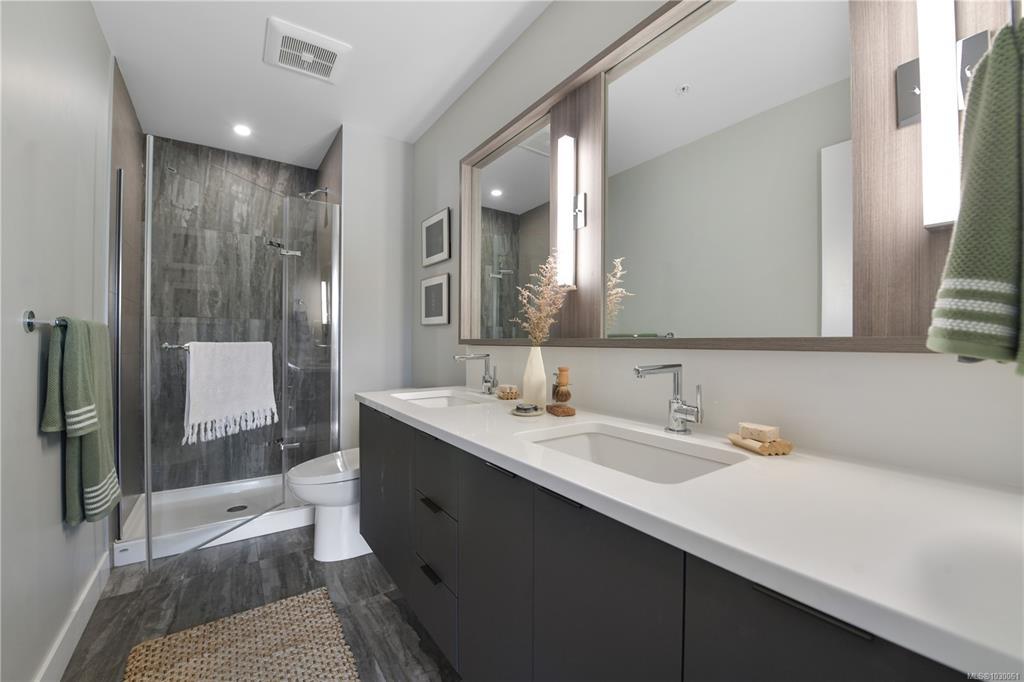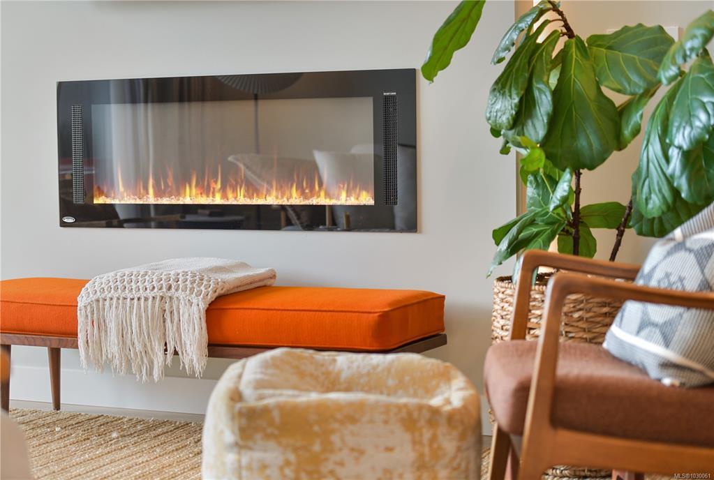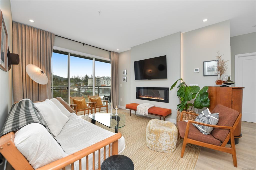OH Sat 2-4 Welcome to this bright & beautifully appointed 2-bedroom, 2-bathroom condo on the quiet side of the building in the vibrant Florence Lake neighbourhood of Langford. This modern home offers an open-concept layout filled w natural light and lovely views. Chef-inspired kitchen features quartz countertops, stylish 2-toned cabinetry & premium appliances including a gas range. A striking back-lit fireplace creates a warm focal point in the living area, while the large covered balcony offers excellent privacy with no direct units looking in. Enjoy year-round comfort with 3 ductless heat pumps, hot water on demand, laminate flooring, ceramic tile in the bathrooms, custom blinds & in-suite laundry. This well-managed strata allows 2 pets + offers secure underground parking, separate storage, bike storage & fitness center. Ideally located close to shopping, parks, trails, schools & everyday amenities.