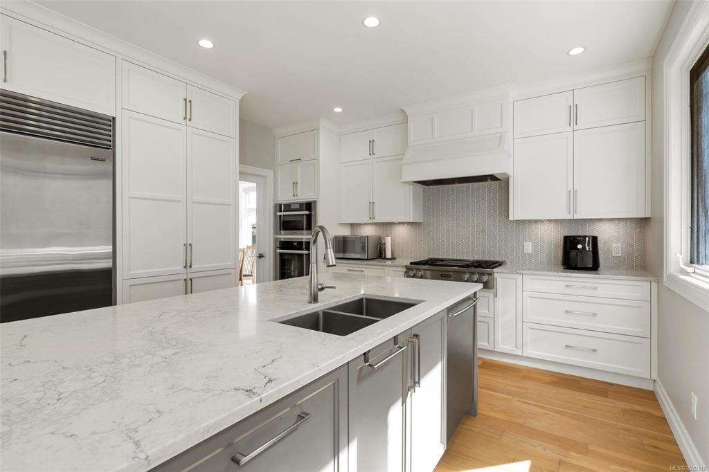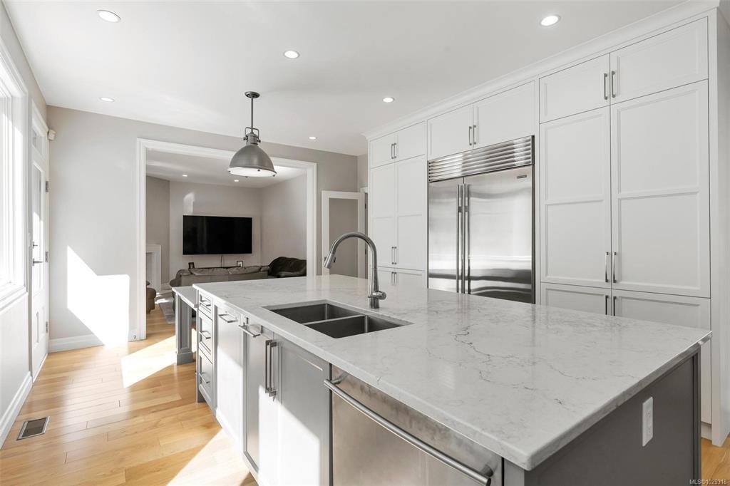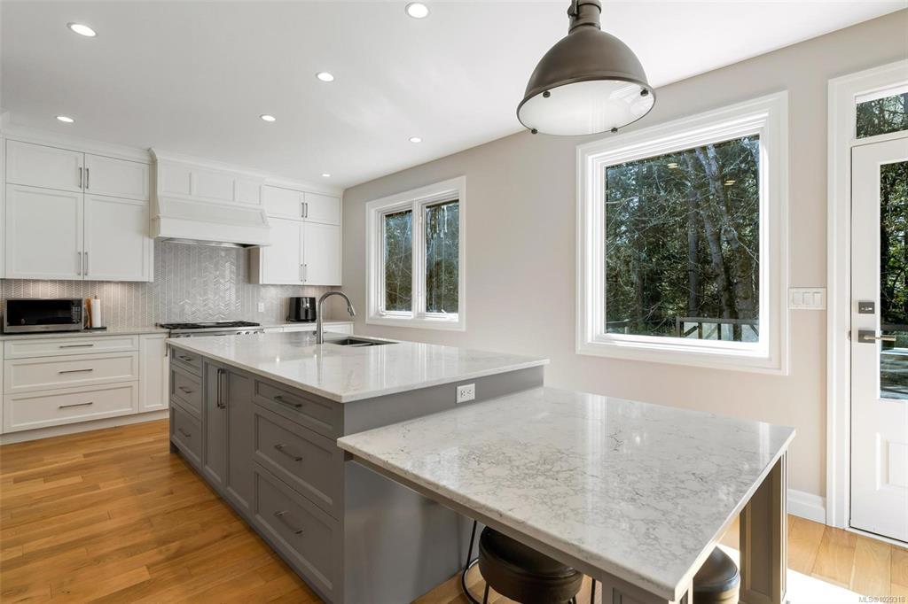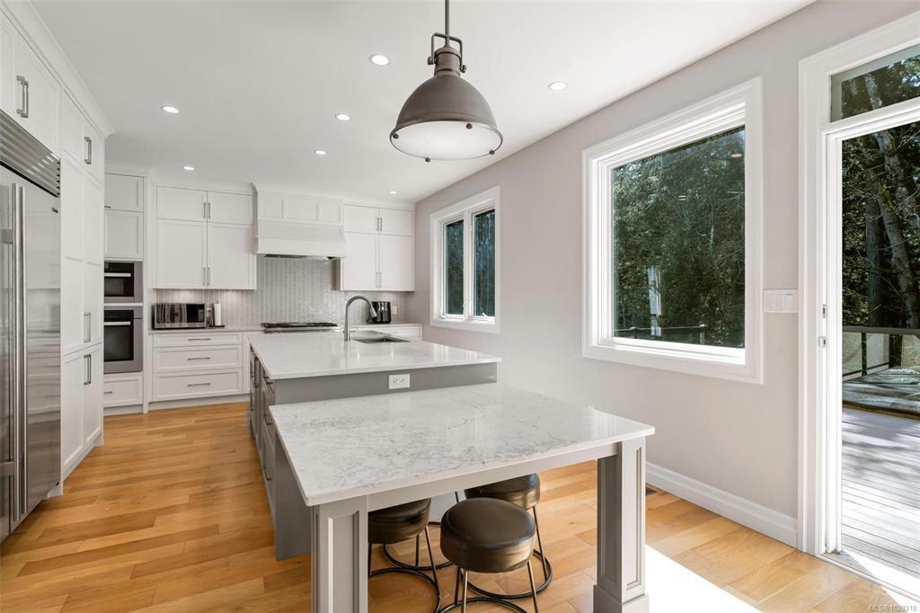Open House Sunday March 29th 1-3PM. Absolutely stunning family home on a quiet no-through street atop prestigious Cordova Bay Ridge. Offering over 4,300 sq.ft. of beautifully renovated living space, this residence showcases exceptional quality and modern design throughout. The main level features a showpiece kitchen with oversized island, Sub-Zero fridge, Miele appliances, quartz countertops, and custom millwork. Recent updates include hardwood flooring, trim, and paint throughout. Upstairs offers 3 spacious bedrooms, including a luxurious primary suite with walk-in closet and spa-inspired 5-piece ensuite. The lower level provides excellent flexibility with a fully self-contained suite and separate entry. Additional features include a commercial-grade heat pump with A/C, tile roof, and ample storage. Enjoy a private, landscaped yard backing onto forested parkland and an oversized garage. A truly exceptional Cordova Bay home.